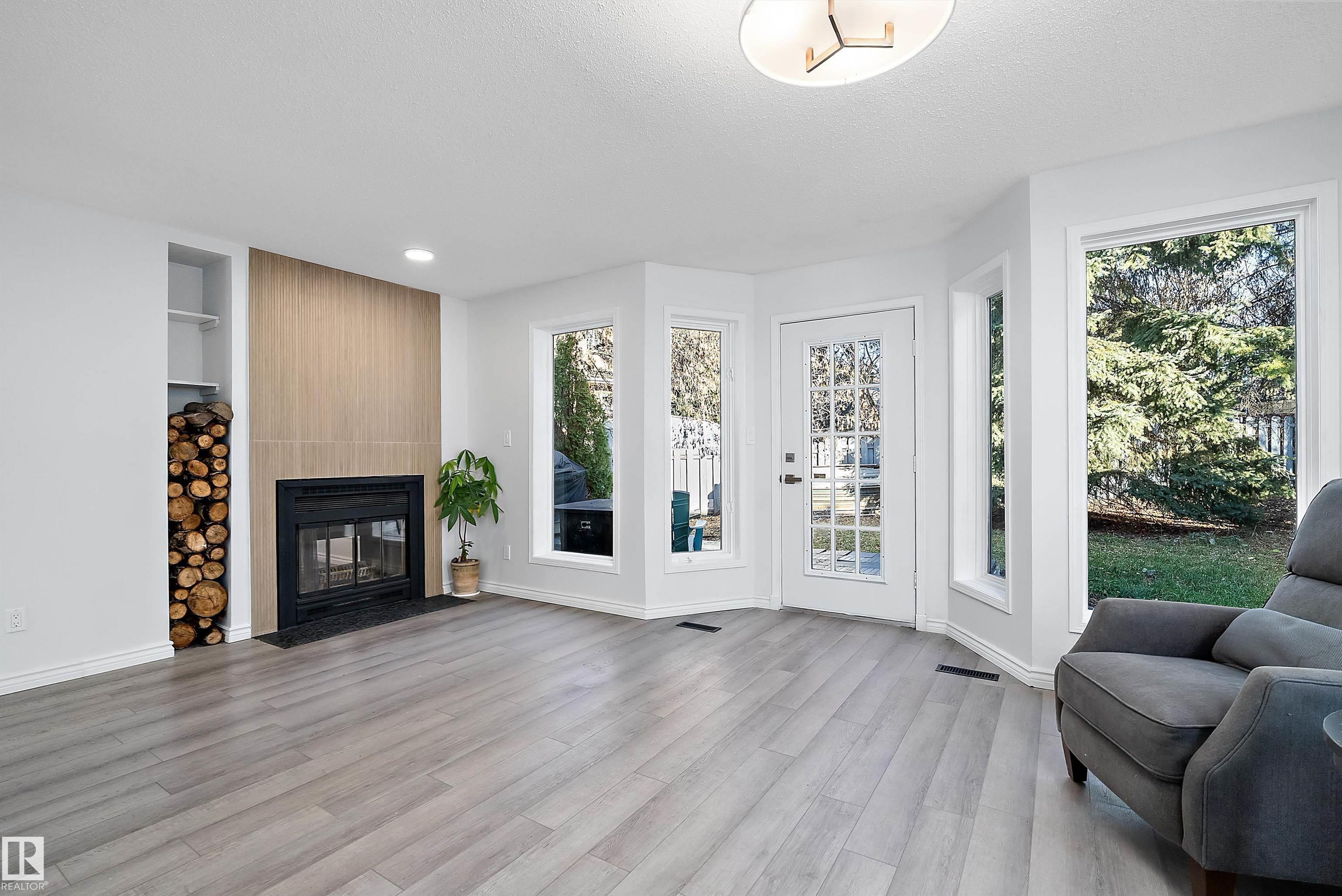 PRICED TO SELL! If cookie cutter isn't for you, Discover this exceptional value in Woodbridge Farms! Updated 2 storey home on a mature, treed pie lot located on a cul-de-sac offers over 2000 sq. ft. of stylish, unique living space, featuring 3 bedrooms plus den/office up and 2.5 baths. Recent renovations showcase newer flooring, trim, doors, fresh paint, a stunning custom kitchen with premium finishes, ample storage, and abundant natural light. The incredible primary suite is a true retreat with a luxurious ensuite shower featuring a custom tiled double walk-in shower, while two additional bedrooms and a bright den/4th bedroom provide flexibility for family or work-from-home living. Enjoy a private balcony off the second bedroom, a spacious living room, and a formal dining area anchored by a two-sided tile-surround fireplace—perfect for cozy winter evenings. Additional highlights include main floor laundry and mudroom, unspoiled basement & double attached insulated garage.