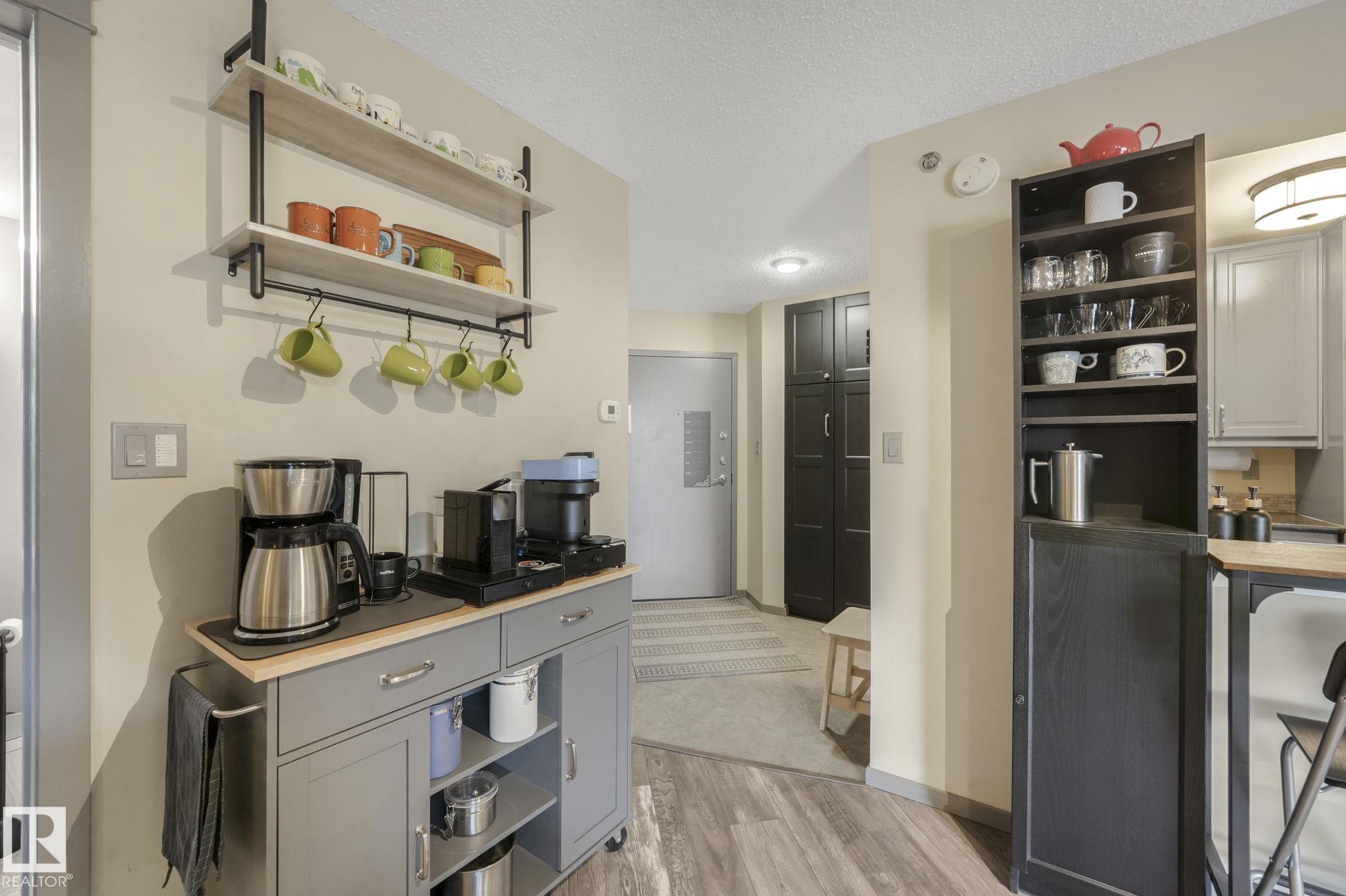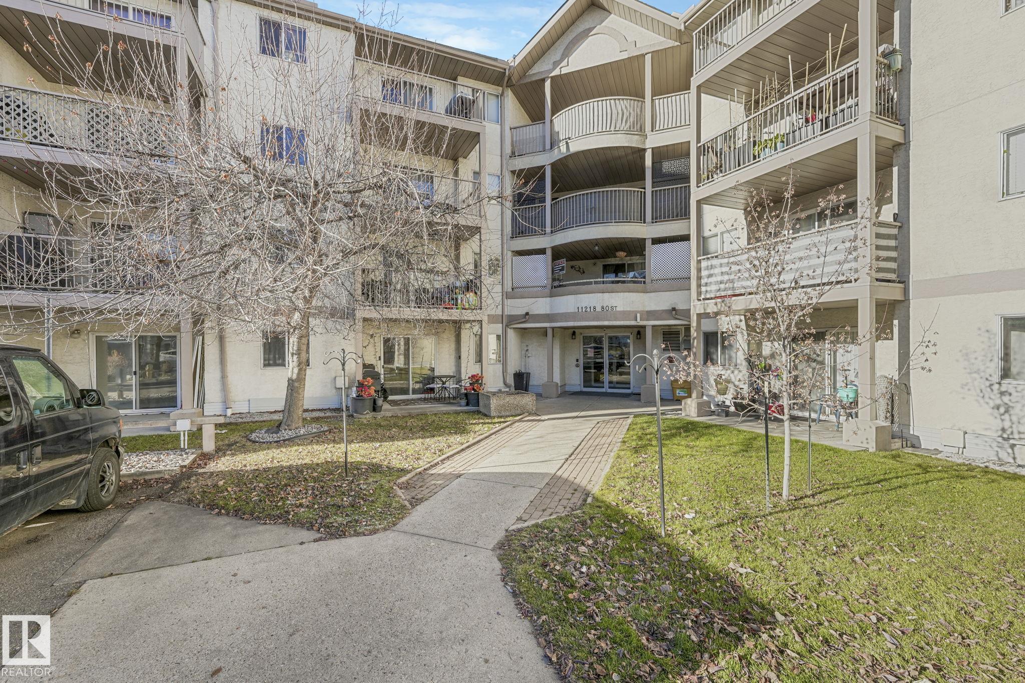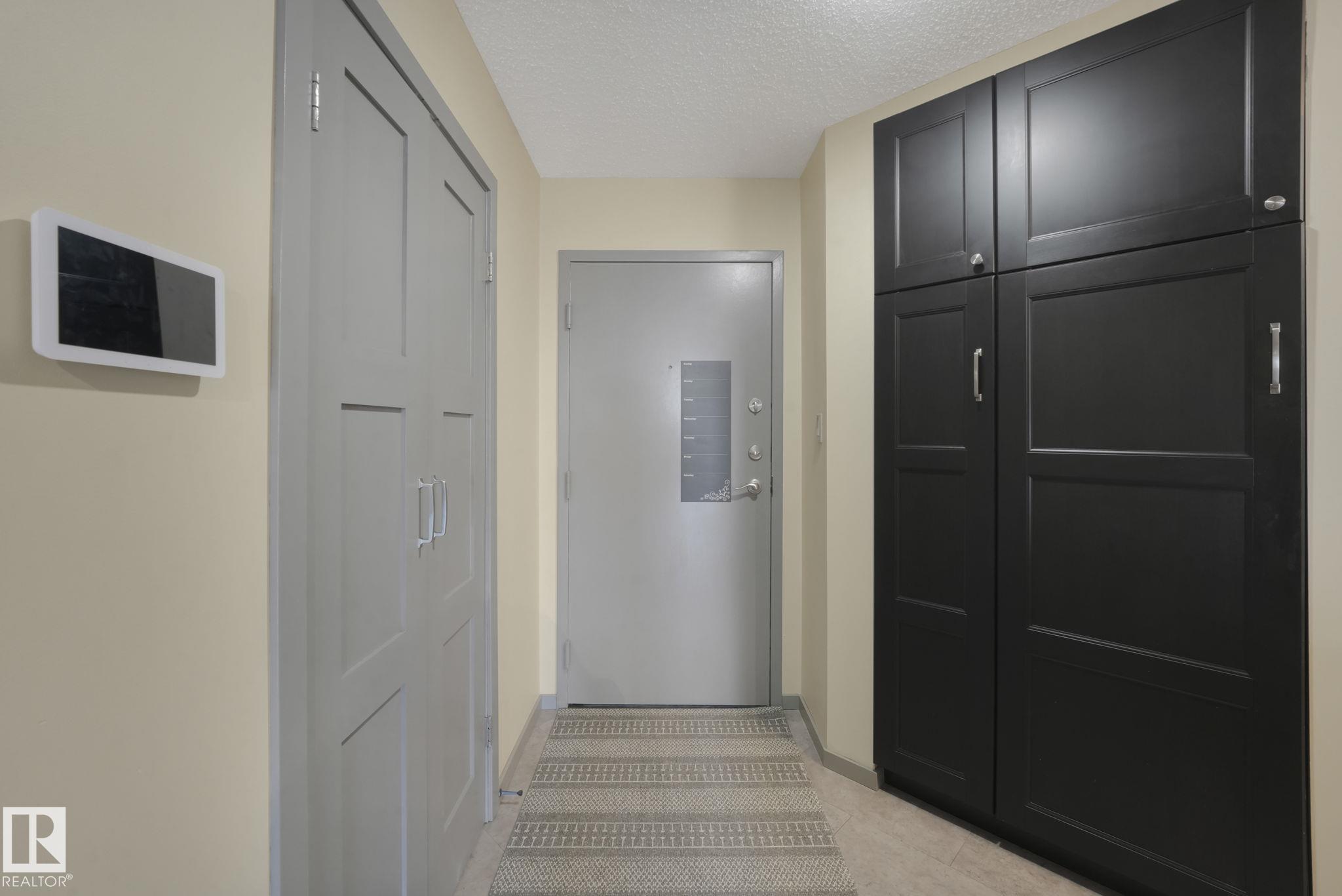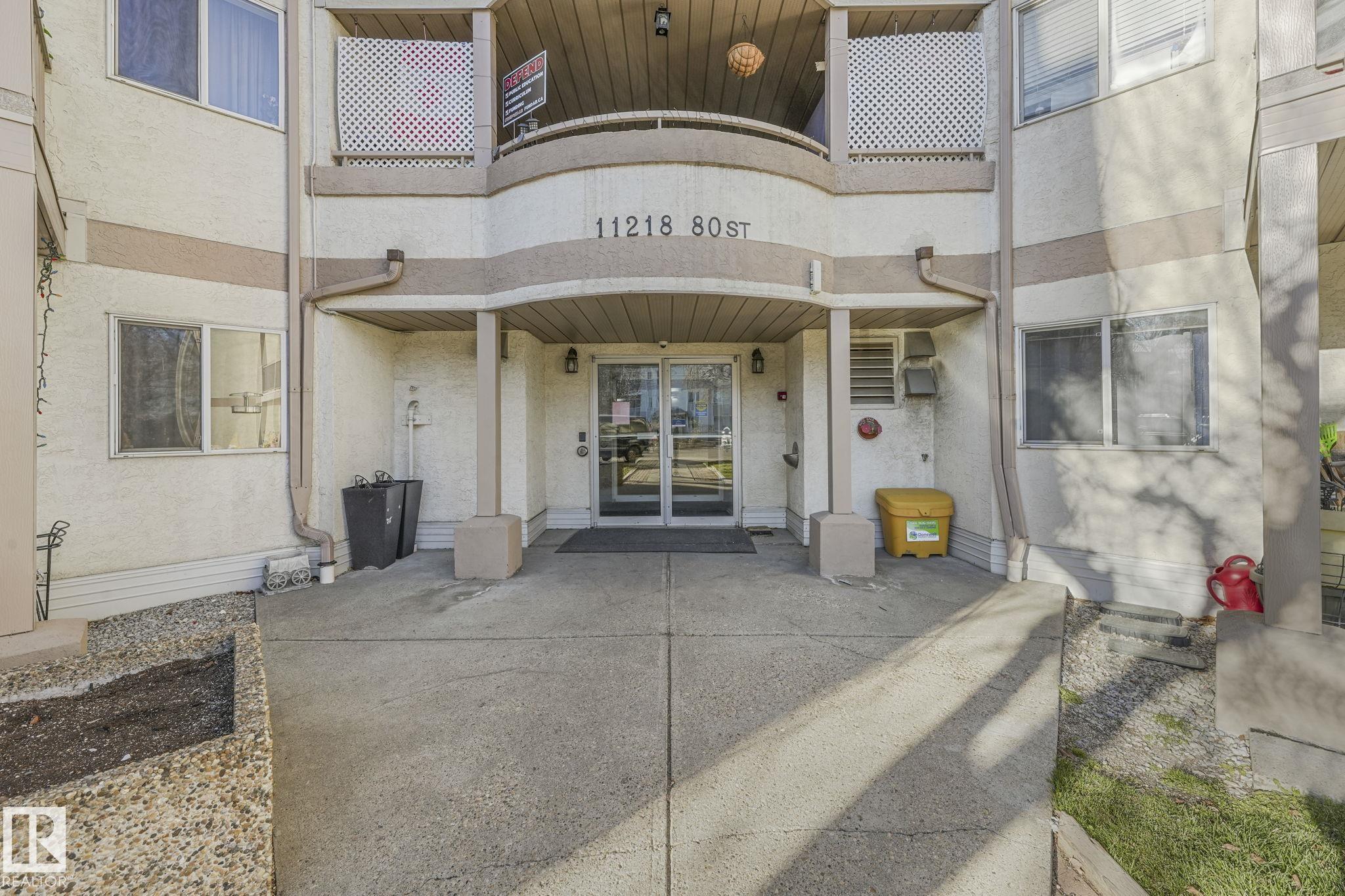 This beautifully upgraded 3rd-floor condo offers modern finishes and an unbeatable walkable location near the LRT, transit, Save-On-Foods, Commonwealth Stadium, Borden Park, Concordia University and the River Valley. The unit features updated flooring, fresh paint, modern lighting and a stylish kitchen with SS appliances. The open living and dining space leads to a huge private balcony, perfect for relaxing, entertaining or enjoying the treed surroundings. The spacious, king-sized primary bedroom offers excellent closet space and plenty of natural light, while the den makes an ideal office or flex room. The fully updated 4-piece bathroom showcases modern tilework, a newer vanity and a clean, contemporary design. Enjoy the convenience of in-suite laundry and impressive storage throughout. Located in a well-run building with many long-term residents, this move-in-ready condo is ideal for buyers or investors seeking a clean, modern home in a vibrant, amenity-rich neighbourhood.