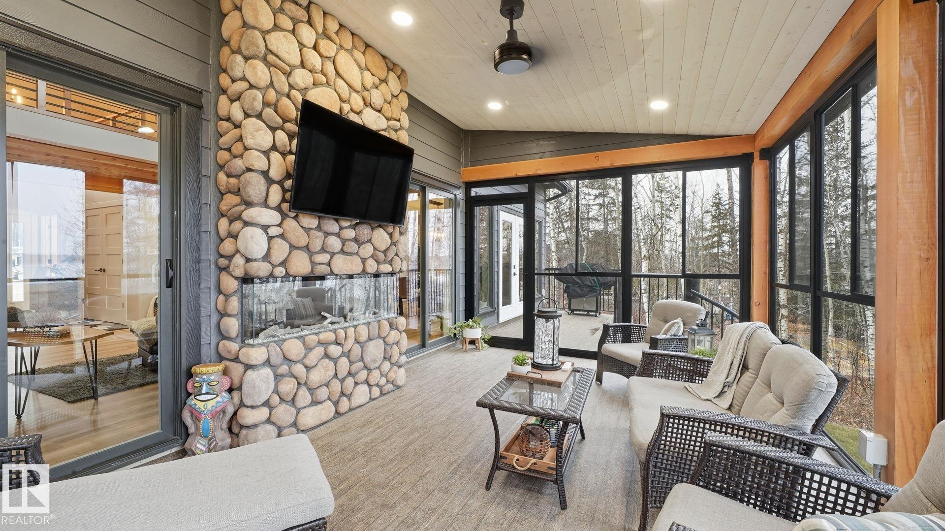 This exquisite Linwood Custom Home marries award-winning post-and-beam craftsmanship with soaring vaulted ceilings and luxurious open-concept design, delivering a timeless, energy-efficient waterfront masterpiece on this rare lakefront estate. Nestled on a ¼-acre lakefront lot with private access to nearly double that in protected shoreline reserve, this gently sloped, fully usable yard is framed by towering mature trees—offering unparalleled privacy and serene waterfront living. Built in 2023 with dramatic timber accents, a stunning two-sided river rock fireplace, enclosed three-season room, and a gourmet kitchen featuring crisp white shaker cabinetry, quartz counters, professional appliances, and a walk-in pantry with dedicated coffee bar. Luxurious main-floor primary suite, spacious guest rooms above, and a walkout lower level opening onto your covered patio and private walkway to the barrel sauna. A like-new lake estate, move-in ready, with the remainder of the Progressive New Home Warranty.