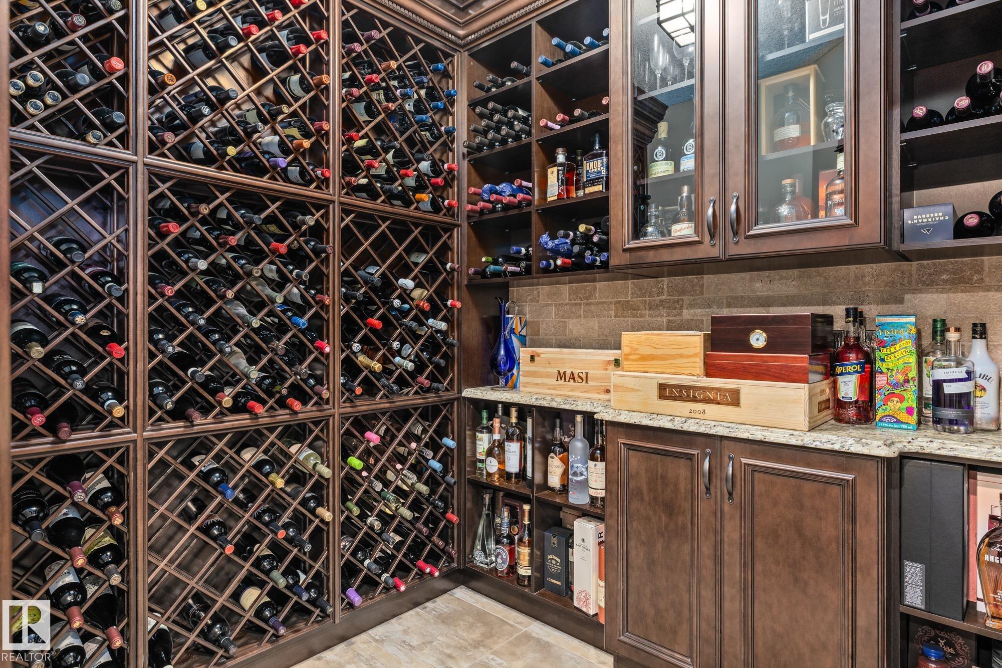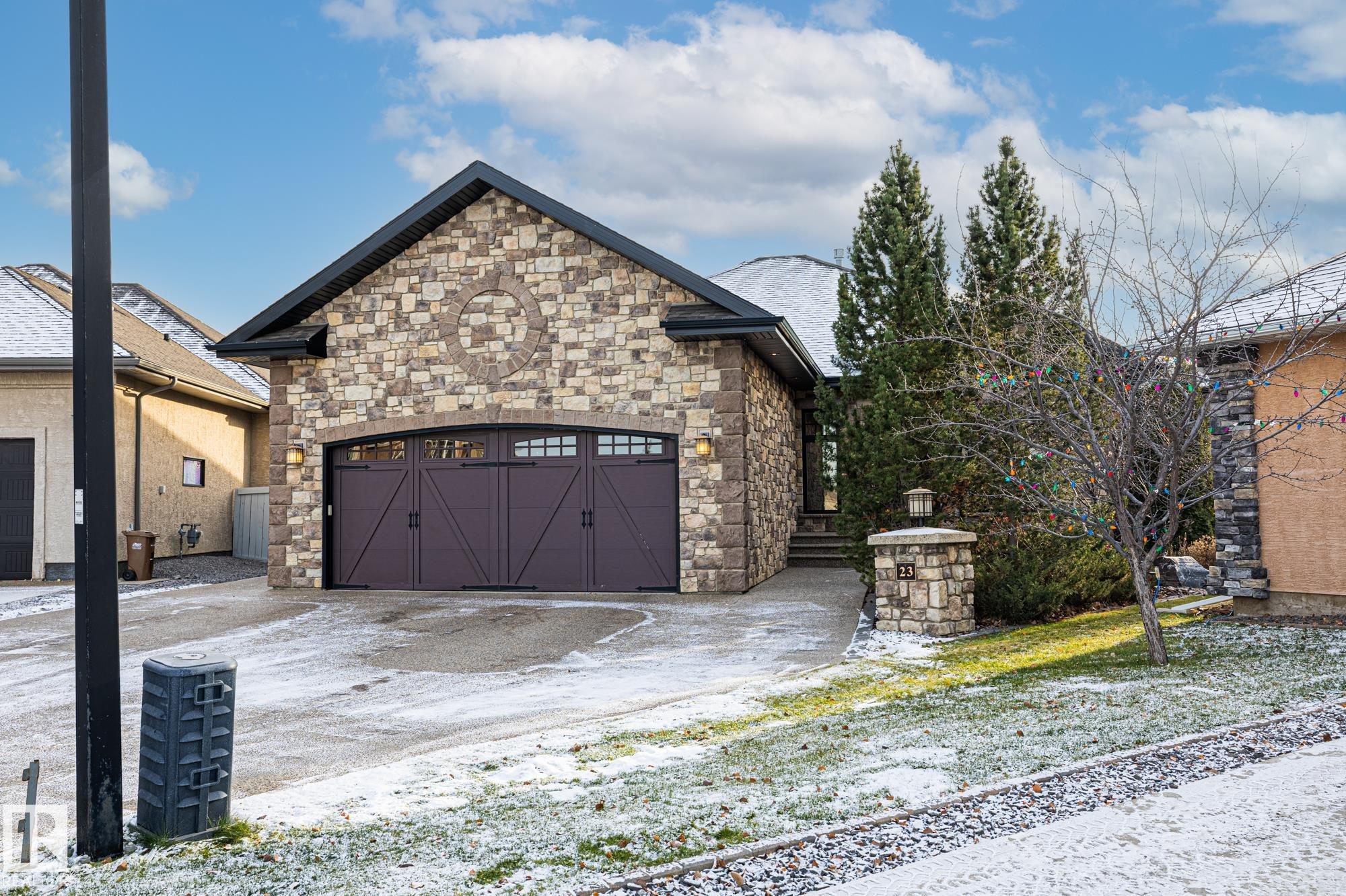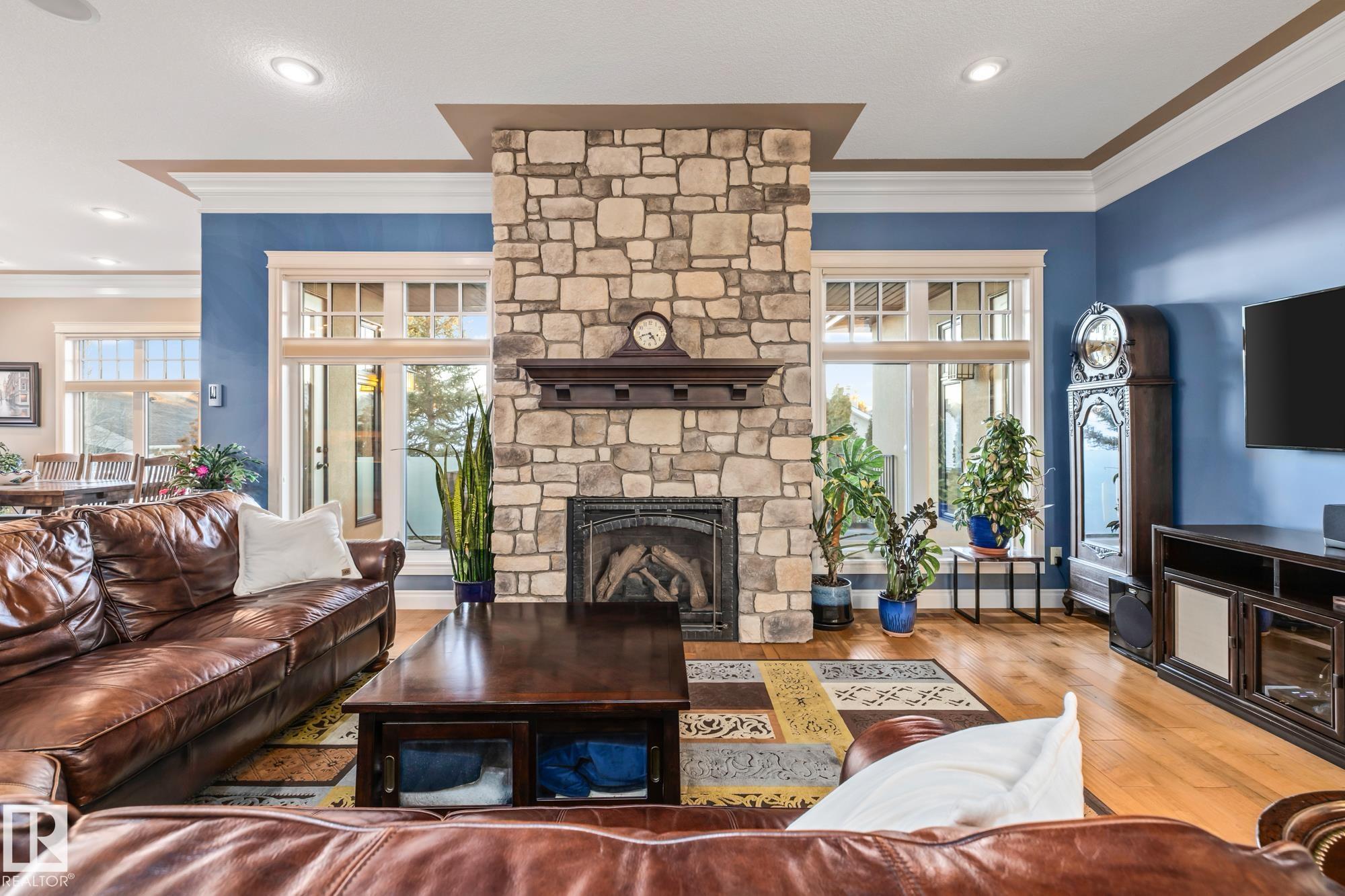 Experience unmatched luxury in this executive custom-built walkout bungalow in Kingswood. With over 4,440 sq ft of living space, this home offers 10 ft ceilings, travertine tile, scraped hardwood, coffered detailing, and a full stone fireplace that anchors the main living area. The chef’s kitchen features JennAir appliances, granite counters, a huge island, custom cabinetry, and a walk-through pantry that leads to an oversized mudroom with custom lockers. The private primary suite includes a large walk-in closet and a spa-inspired ensuite with heated floors, dual sinks, jetted tub, and a walk-in double steam shower. The walkout basement is built for entertaining with heated floors, a wet bar, four large bedrooms, two full baths, a spacious laundry room, and a temperature-controlled walk-in wine cellar. Outside, enjoy a fully landscaped yard with privacy trees, stone patio, composite deck, and irrigation system. A heated oversized garage with a lift completes this exceptional Kingswood home.
