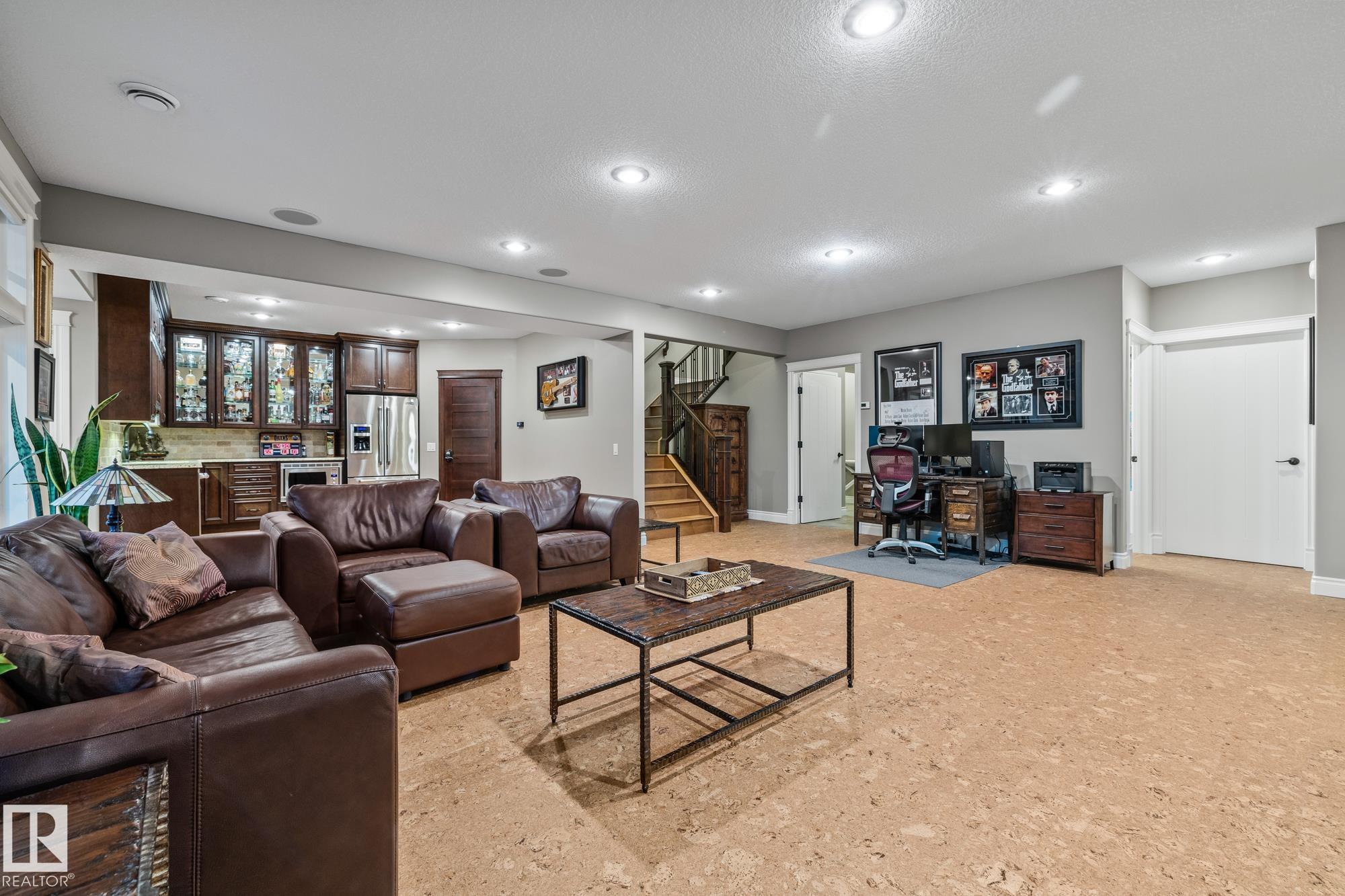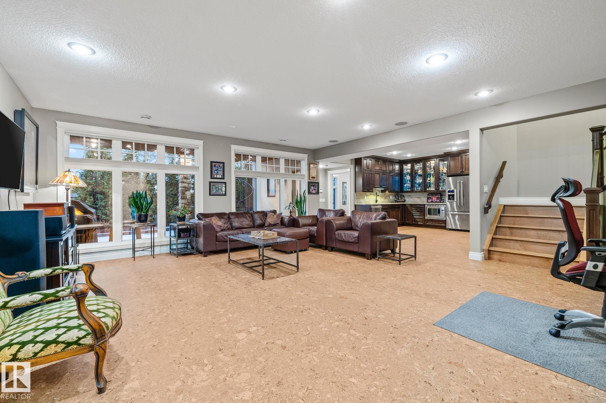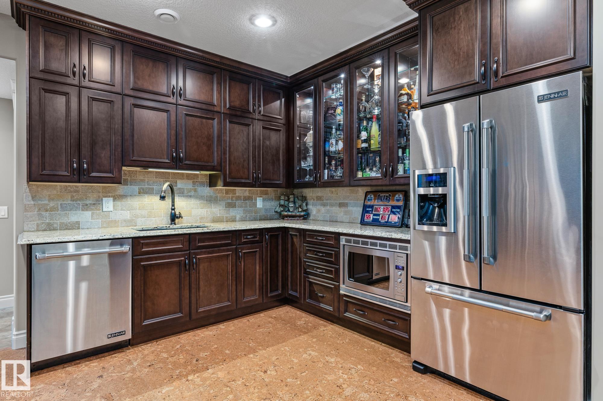 Experience unmatched luxury in this executive custom-built walkout bungalow in Kingswood. With over 4,440 sq ft of living space, this home offers 10 ft ceilings, travertine tile, scraped hardwood, coffered detailing, and a full stone fireplace that anchors the main living area. The chef’s kitchen features JennAir appliances, granite counters, a huge island, custom cabinetry, and a walk-through pantry that leads to an oversized mudroom with custom lockers. The private primary suite includes a large walk-in closet and a spa-inspired ensuite with heated floors, dual sinks, jetted tub, and a walk-in double steam shower. The walkout basement is built for entertaining with heated floors, a wet bar, four large bedrooms, two full baths, a spacious laundry room, and a temperature-controlled walk-in wine cellar. Outside, enjoy a fully landscaped yard with privacy trees, stone patio, composite deck, and irrigation system. A heated oversized garage with a lift completes this exceptional Kingswood home.