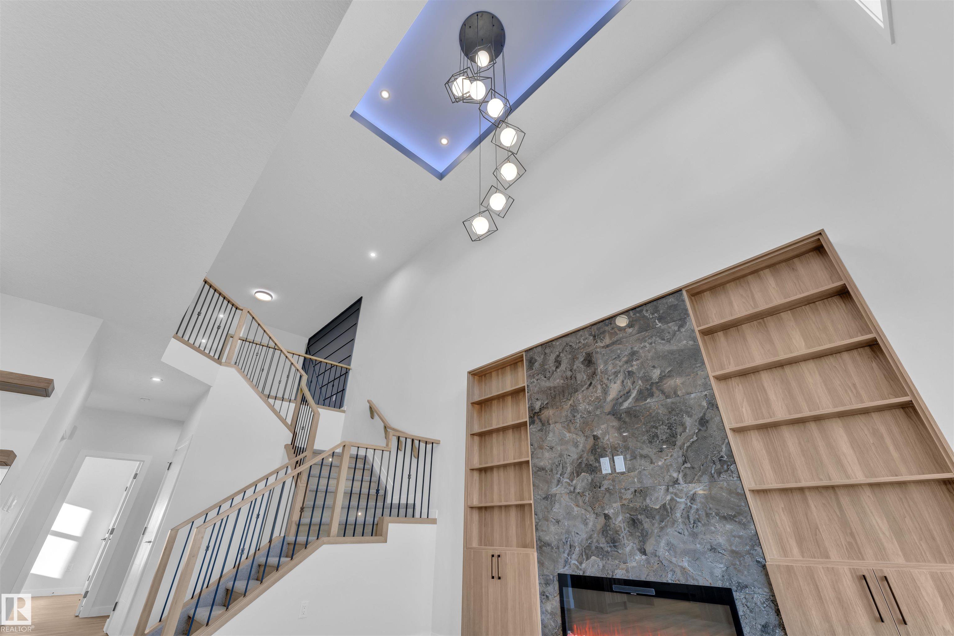 Beautiful Detached Home with Double Car Garage and Tons of Upgrades! Step inside to a bright, open-concept main floor that flows seamlessly throughout. The stunning open-to-above living area features a striking custom feature wall with an elegant electric fireplace. The main floor also includes a convenient bedroom and full bathroom, perfect for guests . The gorgeous built-in kitchen is truly a showstopper, complete with a centre island and a separate spice kitchen for added convenience. The dining nook offers direct access to the backyard, and the mudroom is upgraded with custom MDF shelving. An oak staircase leads you to a spacious bonus room on the upper level. Upstairs, you'll find 4 generous bedrooms and 2 beautifully finished bathrooms. The primary suite is expansive, featuring a large walk-in closet and a luxurious 5-piece custom ensuite. Laundry is conveniently located on the second floor.Additional features include a separate side entrance to the basement.