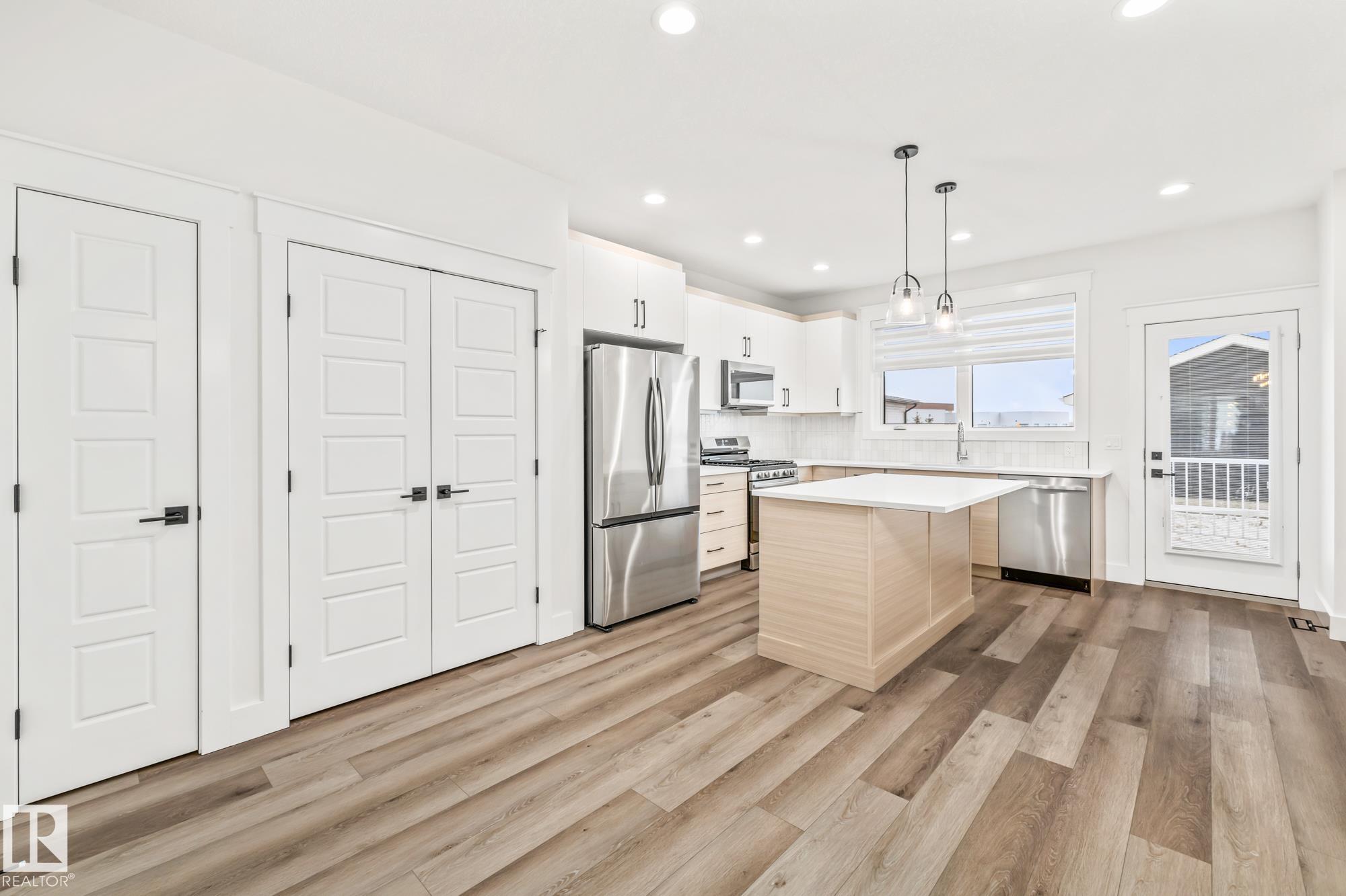 Located just minutes from St. Albert, this stunning 4-bedroom, 2.5-bath home offers over 1,600 sq ft of modern living space in the desirable community of Morinville. Built by Alves Construction, this home features an open-concept layout perfect for entertaining and everyday living. The main floor offers a bright, spacious living area with an electric fireplace and a stylish, functional kitchen designed for convenience and comfort. Upstairs, the primary bedroom provides a private retreat complete with a beautifully finished ensuite and walk-in closet. Two additional junior bedrooms and a full 4-piece bathroom complete the upper level. The basement includes a partially finished bedroom and remains a blank canvas—ready for your personal touch. Outside, you’ll love the heated and insulated detached double garage, plus back-lane access for added convenience. Additional features include central air conditioning, Window Coverings plus 6 appliances which includes a gas stove