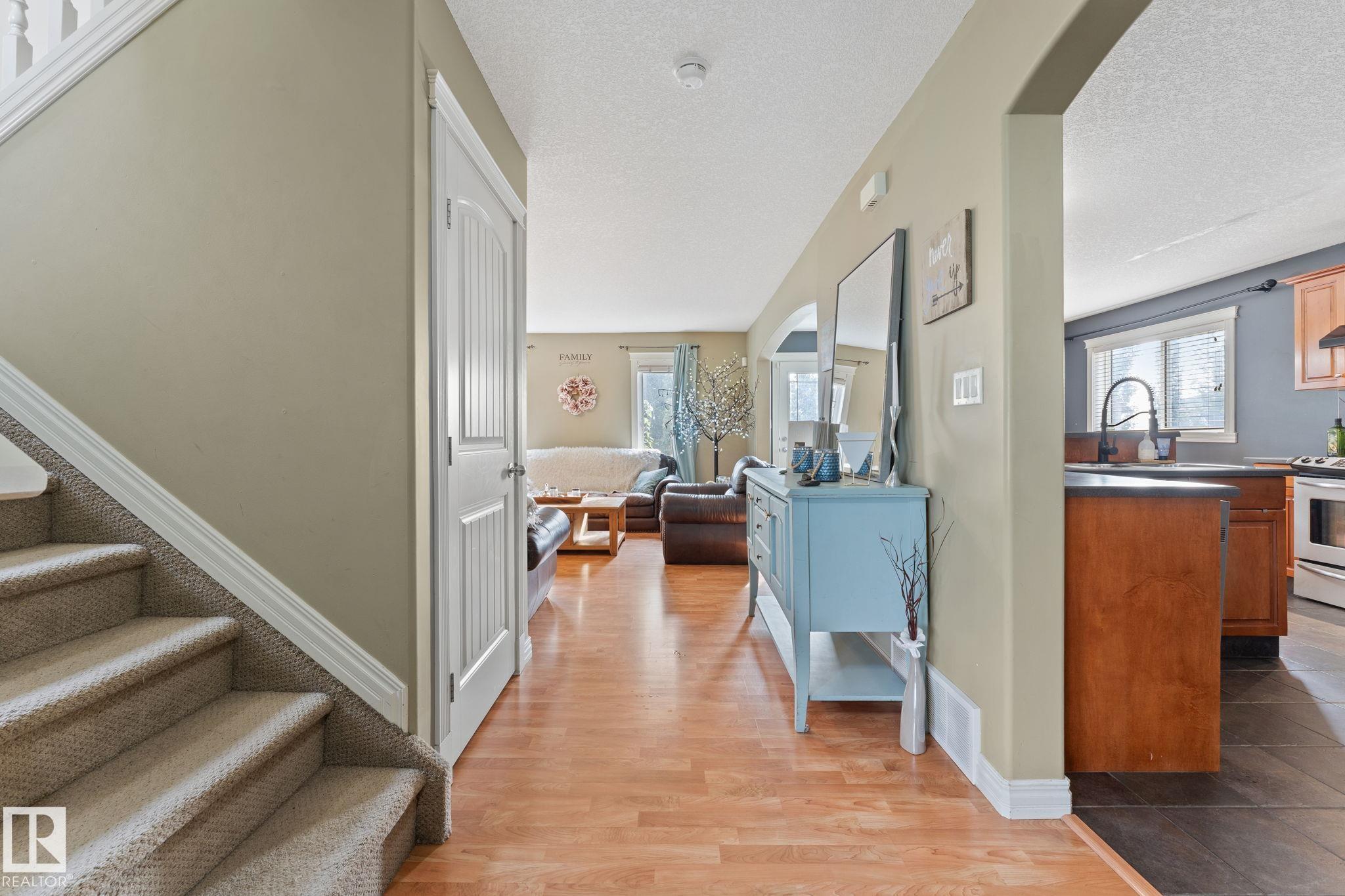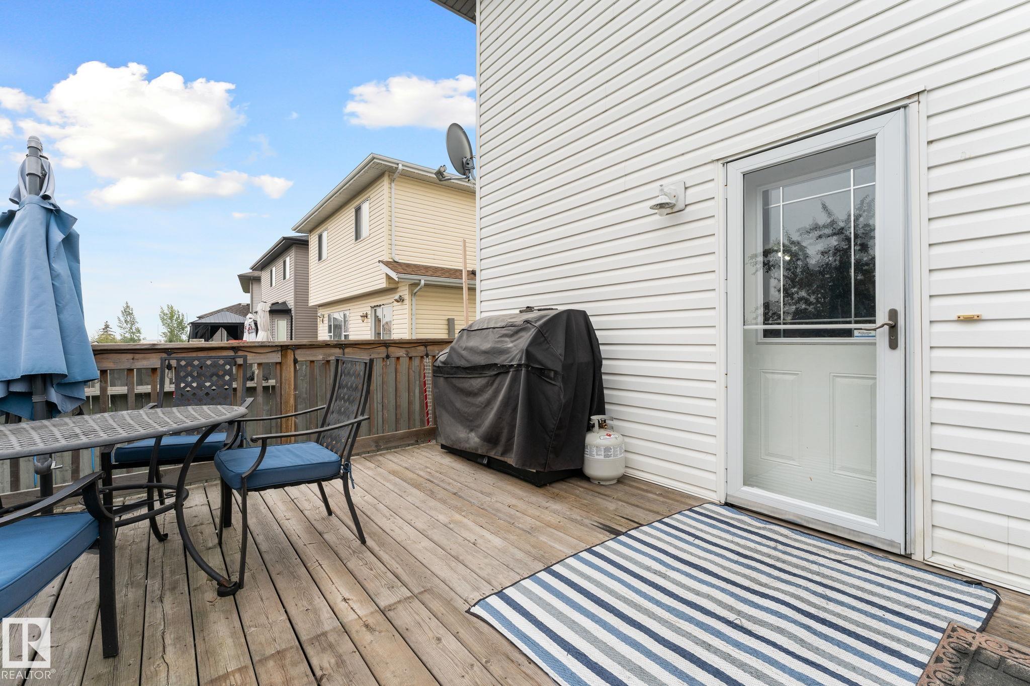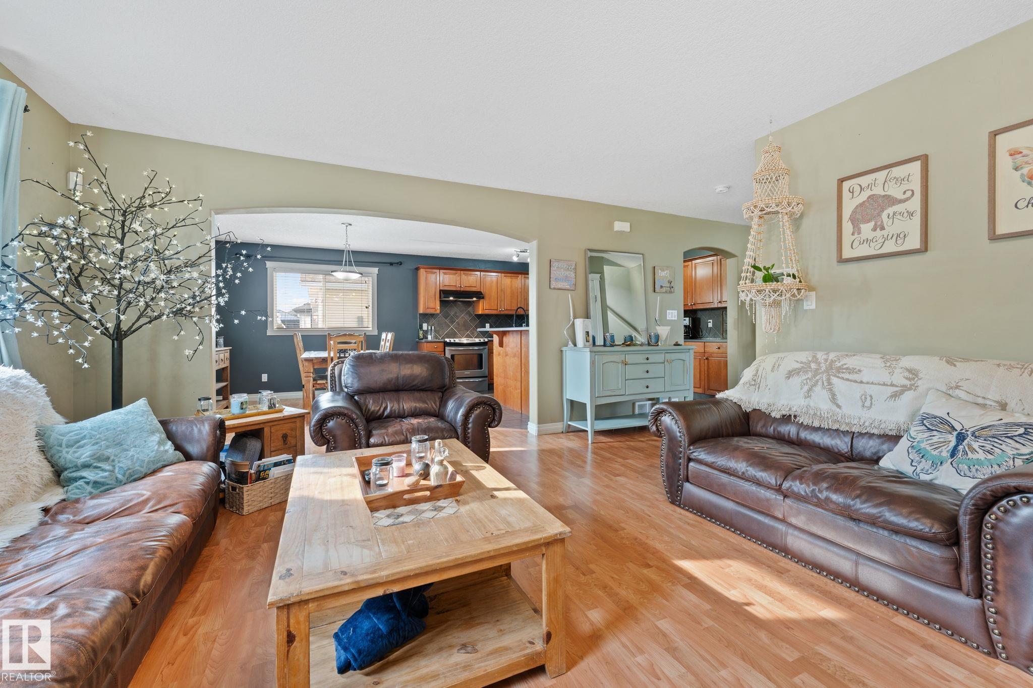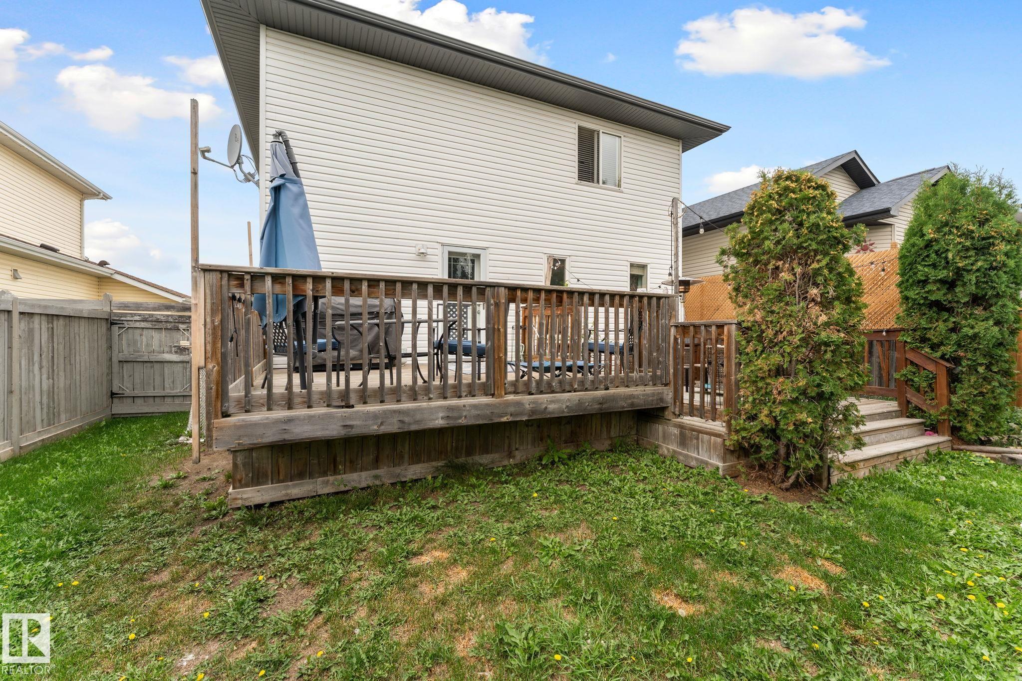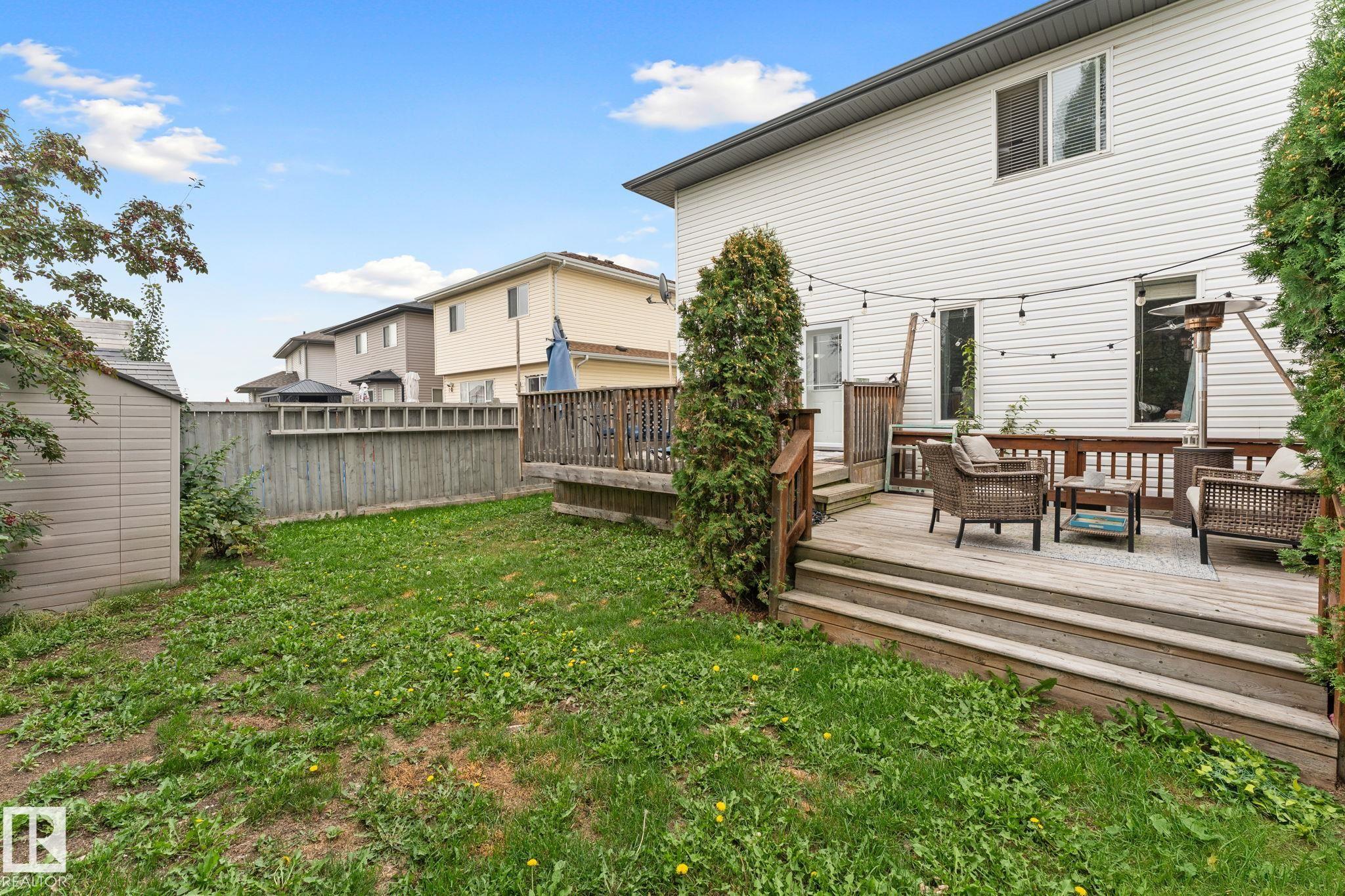 Discover comfort, style, and space in this beautifully finished 1,800 sq ft, fully air-conditioned 2-storey designed to impress. A vaulted foyer opens to a welcoming living room with a stunning tile-surround gas fireplace. The kitchen boasts stainless steel appliances, maple cabinets, a corner pantry, and a breakfast bar, flowing into a bright dining area with garden door to a two-tiered deck and landscaped, fully fenced yard. A 2-pc bath/laundry combo completes the main floor. Upstairs, find two large bedrooms, a 4-pc bath, and a serene primary retreat with a walk-in closet and a spa-like 5-pc ensuite with a jetted tub. The fully finished basement shines with natural light, offering a cozy family room with gas fireplace, 4th bedroom, 3-pc bath, and storage. The true standout is the oversized heated double garage—perfect for vehicles, tools, storage, or even a man cave. A rare find that blends practicality with comfort, this home is move-in ready!