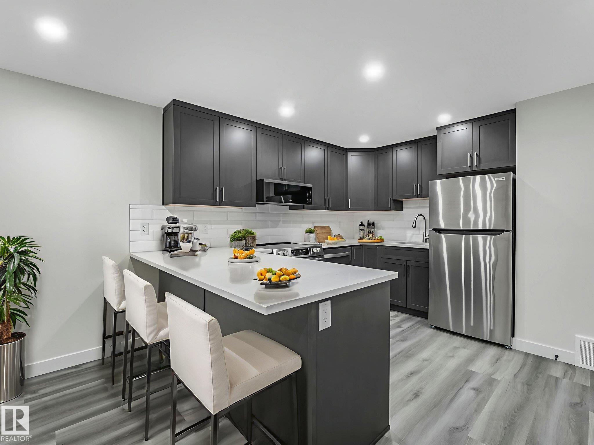 Welcome to this brand-new, never-lived-in home offering thoughtful design and modern finishes throughout. Situated on a prime corner lot, this home offers enhanced privacy, abundant natural light, and a sense of openness—perfect for relaxing, entertaining, or creating your backyard retreat. The upper level features three bedrooms, a flex room, a 4-piece main bath, and top-floor laundry. The primary bedroom includes a walk-in closet and a 4-piece ensuite with dual sinks and a stand-up shower. The main floor showcases modern colors, an island with quartz countertops, stainless steel appliances, and a cozy living room with an electric fireplace. A half bath and a versatile den complete this level. The legal basement suite offers excellent income potential and features a high-end kitchen with peninsula island and eat-in bar, stainless steel appliances, a spacious living room, a finished bathroom with quartz countertops, and separate laundry. Completing the property is a concrete pad ready for a future double.