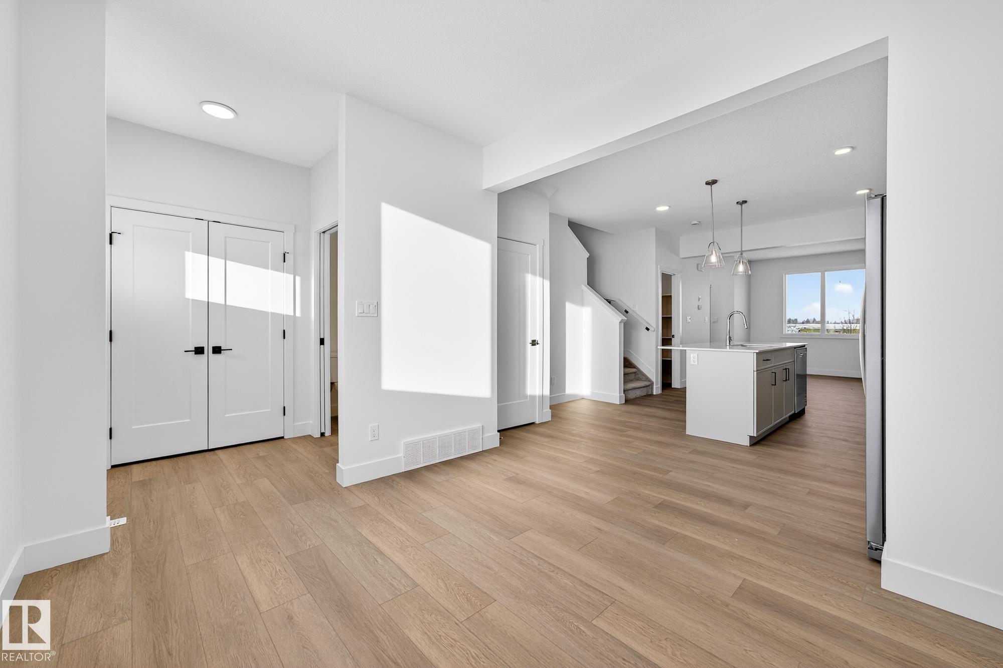 Located just minutes from St. Albert, this beautifully crafted 3 bedroom, 2.5 bathroom home offers 1,600 square feet of modern living space in the desirable community of Morinville. Built by Attesa Homes, the open-concept layout is designed for both entertaining and everyday comfort. The main floor features a bright, spacious living area highlighted by an electric fireplace, along with a stylish kitchen that includes a walk-in pantry for added functionality. A separate entrance to the unfinished basement provides excellent potential for future development. Upstairs, the primary bedroom serves as a private retreat with a well-appointed ensuite. A double detached garage completes this impressive home.