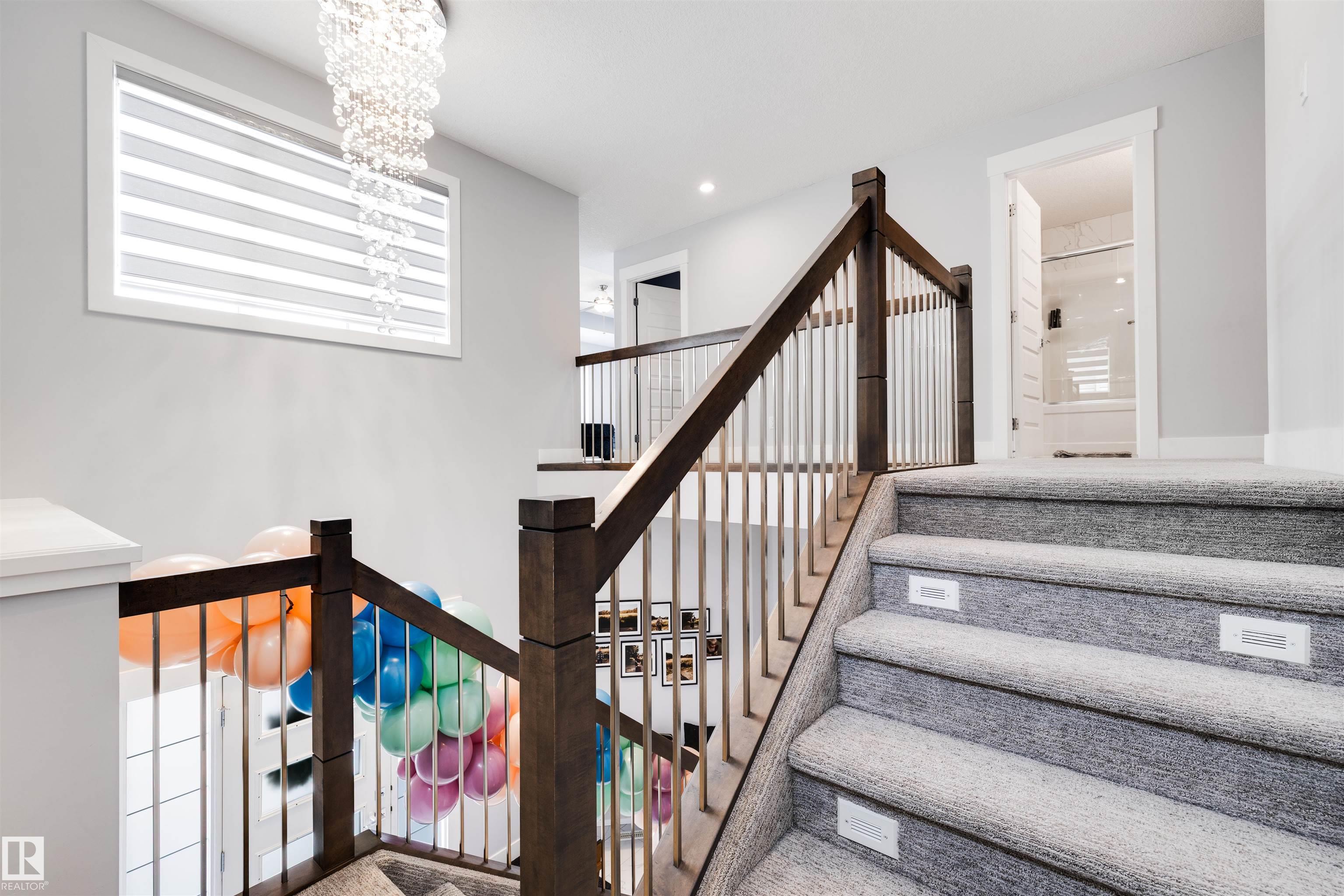 Gorgeous HERRINGBONE flooring throughout, setting warm and welcoming tones as you walk in. This home is offering over 4,000 sqft of serious comfort, function, and luxury. The main floor features 17 ft ceilings as you enter with an open concept kitchen, perfect for entertaining. Working from home? No problem, there's a DEN on the main. FIVE bedrooms, 3 upstairs, 2 in the basement. Think about the retreat to the luxurious primary suite with a spa-like bathroom, complete with a jetted tub, tiled shower, and large walk-in closet after a hard days work. FULLY FINISHED basement includes a WET BAR, generous rec room, cozy fireplace—ideal for guests or a growing family. A SEPERATE SIDE ENTRANCE could be convenient for a future suite in the basement customized by you, and the HEATED TRIPLE car attached garage offers both space and comfort year-round. Stay cool with central AIR CONDITIONING. From top to bottom, this home is full of upgrades and personality—truly an awesome place to call home.