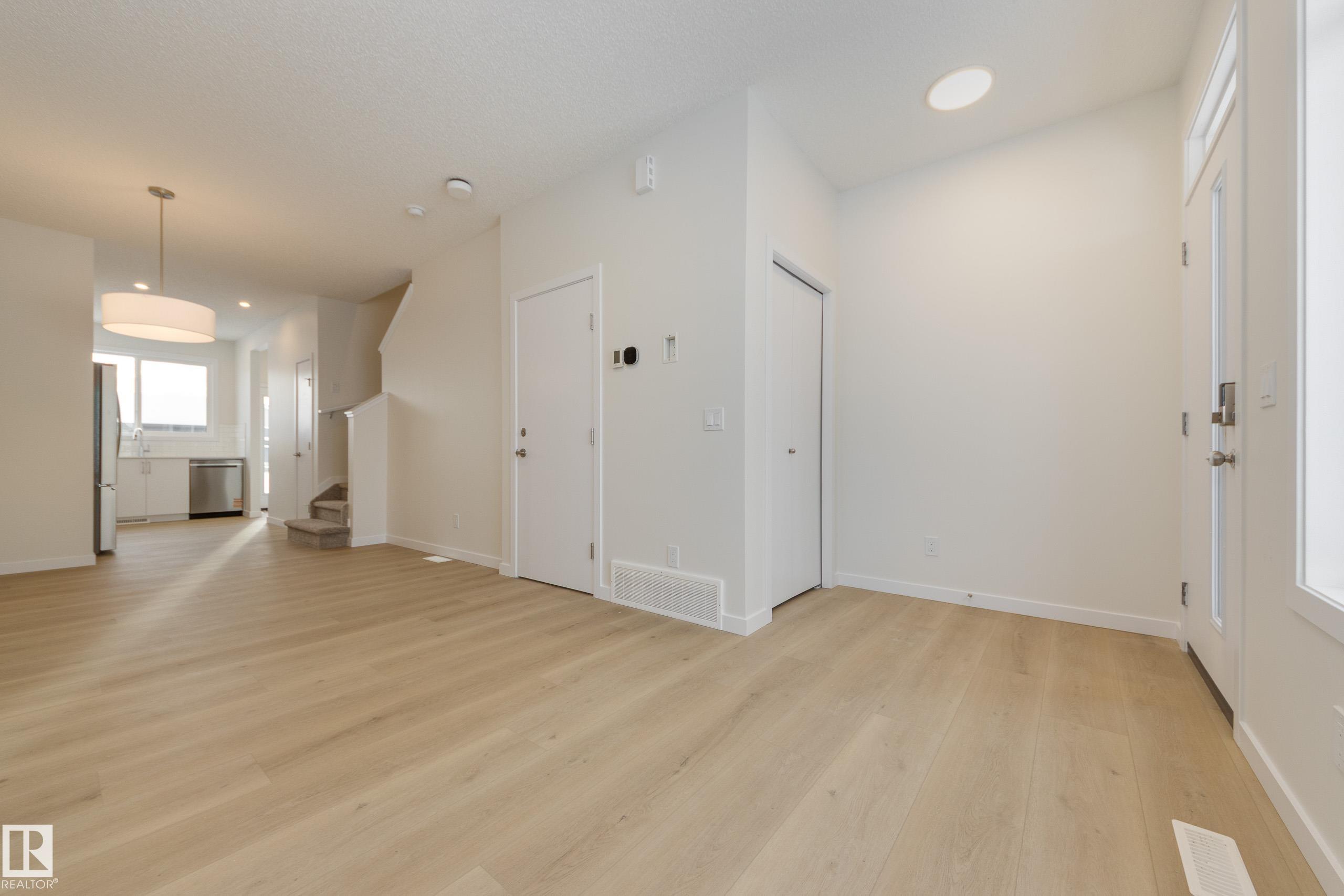 Jayman BUILT’s Cedar half duplex offers smart design with a detached garage and fully finished basement. Built with Core Performance features, this home includes SOLAR panels, triple pane windows, HRV, high-efficiency furnace, tankless hot water, and Smart Home technology. The main floor has a bright, open layout with a welcoming great room, dining area, and a functional kitchen with plenty of space for gatherings. A half bath is also located here. Upstairs, two spacious bedrooms share a full bathroom, and the laundry closet with stacked pair adds convenience. The finished basement extends your living space with a large rec room, an additional bedroom, and another full bath. Front landscaping and kitchen appliances are included, creating a move-in ready home with thoughtful details and energy-saving features.