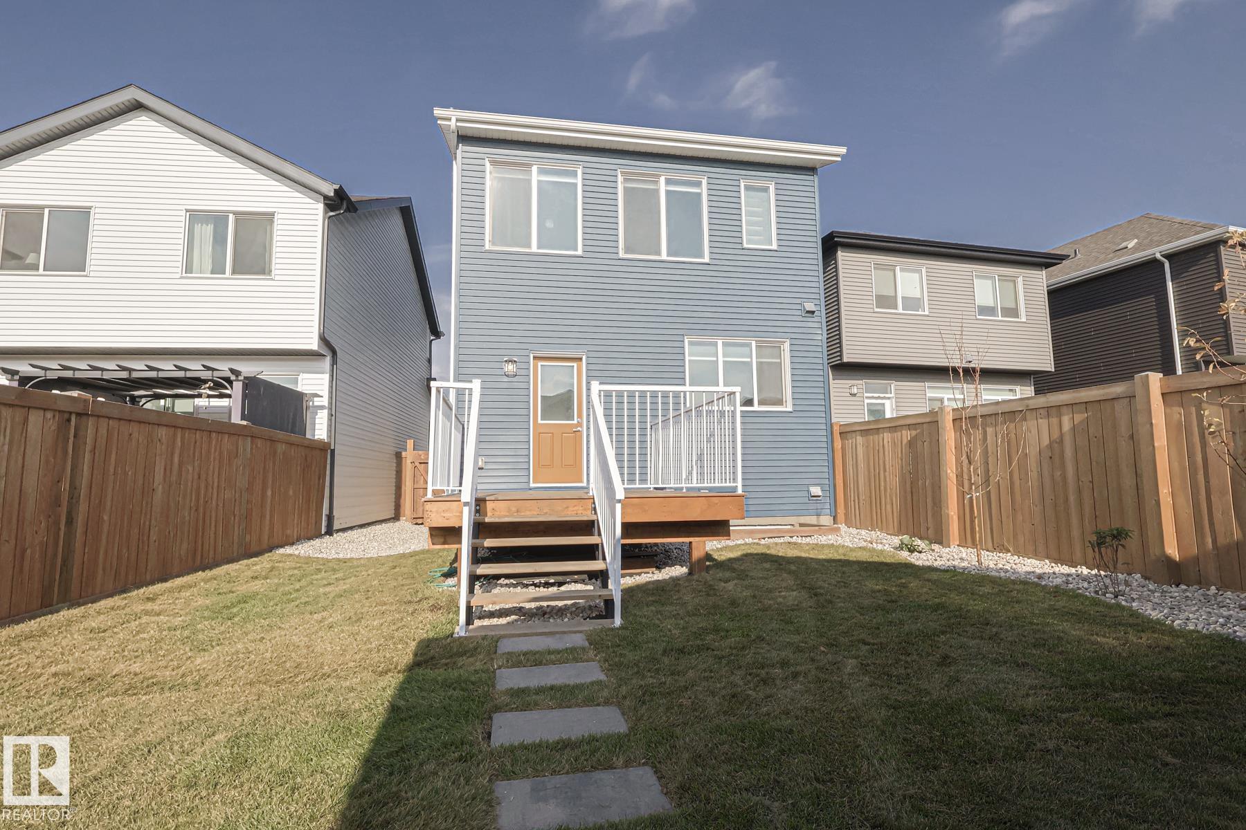 Welcome to this beautiful home in like new condition, offering space, style, and functionality throughout. High ceilings and a sunken living room with an electric fireplace create a warm and inviting main living area. The kitchen features granite countertops, a gas stove, and modern finishes. Luxury vinyl plank flooring runs throughout with carpet only on the stairs. Upstairs, the spacious primary suite includes his and hers sinks and a large walk-in closet, along with two additional bedrooms (one with a walk-in), a 4-piece bath, and convenient upper-level laundry. The fully finished basement adds excellent living space with a rec room, bedroom, and 4-piece bathroom, highlighted by a feature mural. Outside, enjoy the front veranda, 10x10 deck, brand new landscaping with rocks, grass, shrubs, and trees, plus a double detached garage finished to drywall and paint. North-facing and truly move-in ready.
