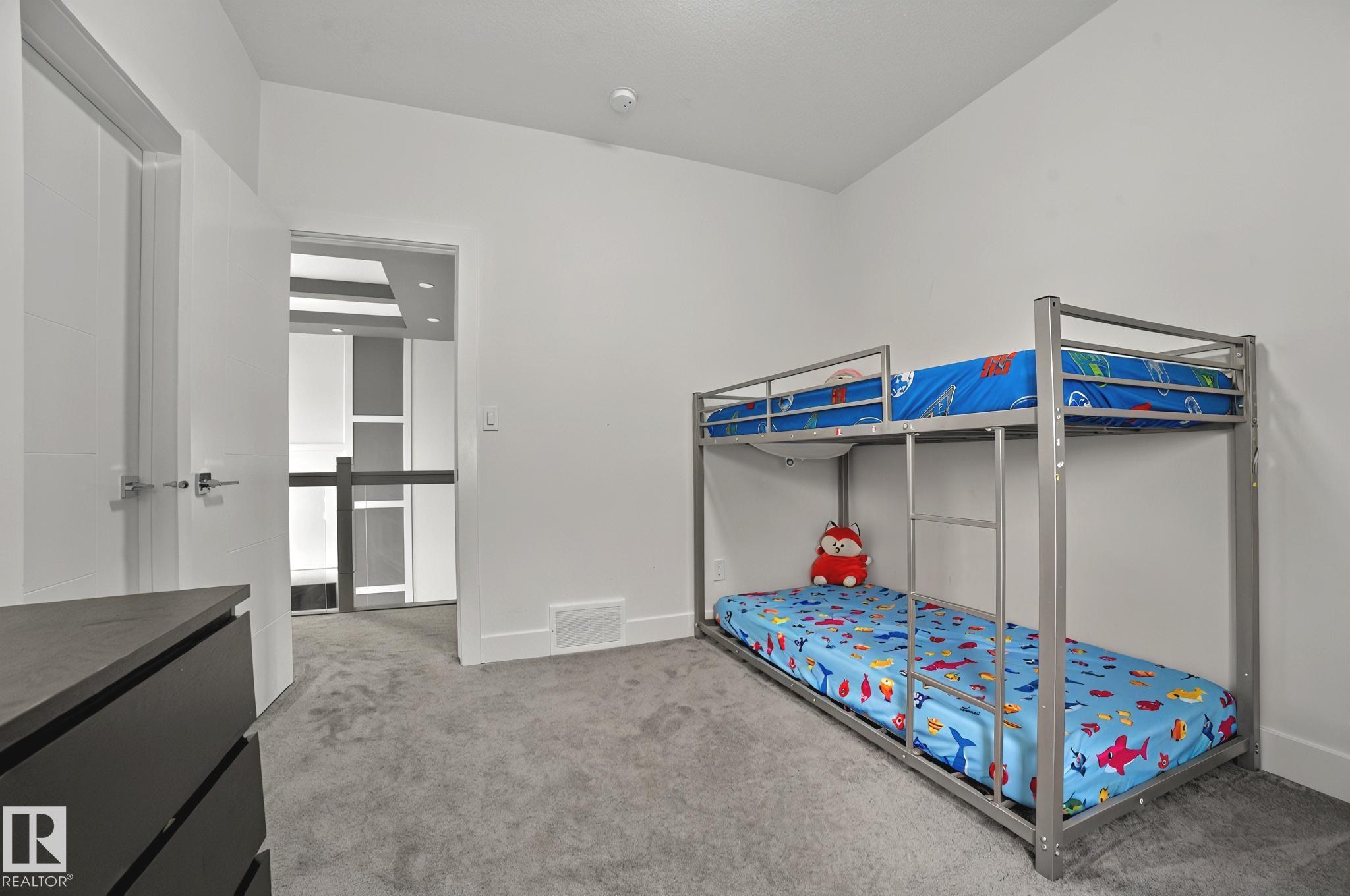 Located in Fraser community, this stunning 2-storey home spans 2,532 sq ft and offers modern style with functional design. Upstairs features a spacious bonus room, laundry, a luxurious primary suite with walk-in closet and ensuite, a second ensuite bedroom, plus two more bedrooms sharing a Jack & Jill bath. The main level includes a guest room with full bath, a cozy fireplace in the open-to-above living area, and a bright dining space. You'll love the contemporary kitchen with quartz counters and glossy cabinets, plus a fully outfitted SPICE Kitchen. Additional highlights include a SEPARATE ENTRANCE unfinished basement ready for development, maple and glass railings, upgraded lighting and plumbing, tile floors, and sleek finishes throughout. Close to schools, shopping, and parks—this custom home has it all!