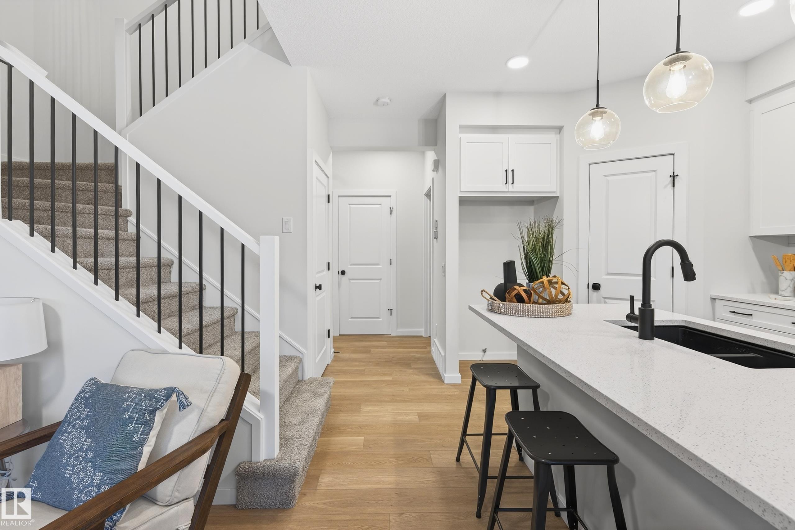 Introducing the “WHITEMORE” by Master Home Builder, HOMES BY AVI. Love the 1690 sqft of upscale design, situated on a pie shaped lot in the heart of Rosenthal. Highly sought after floor plan features 3 bedrooms, 2.5 bath, upper-level loft style family room & full size upper-level laundry room. SEPARATE SIDE ENTRANCE for future basement development (possible future legal basement suite). Home showcases 9’ ceiling height on main floor & basement, electric fireplace w/mantle, iron railing spindles, matte black hardware package, luxury vinyl plank flooring & walk-thru pantry/mudroom (with cabinetry & shelving) to double garage. Kitchen boasts pot & pan drawers, centre island, quartz countertops throughout & robust builder appliance allowance. Welcoming foyer with convenient front powder room. Private ensuite is complimented by large WIC & luxurious 5 pc ensuite with Jack & Jill sinks, soaker tub & shower. 2 add’l jr rooms & 4 pc bath. EXTRAORINARY HOME built by EXTRAORDINARY BUILDER! MUST SEE HOME!!