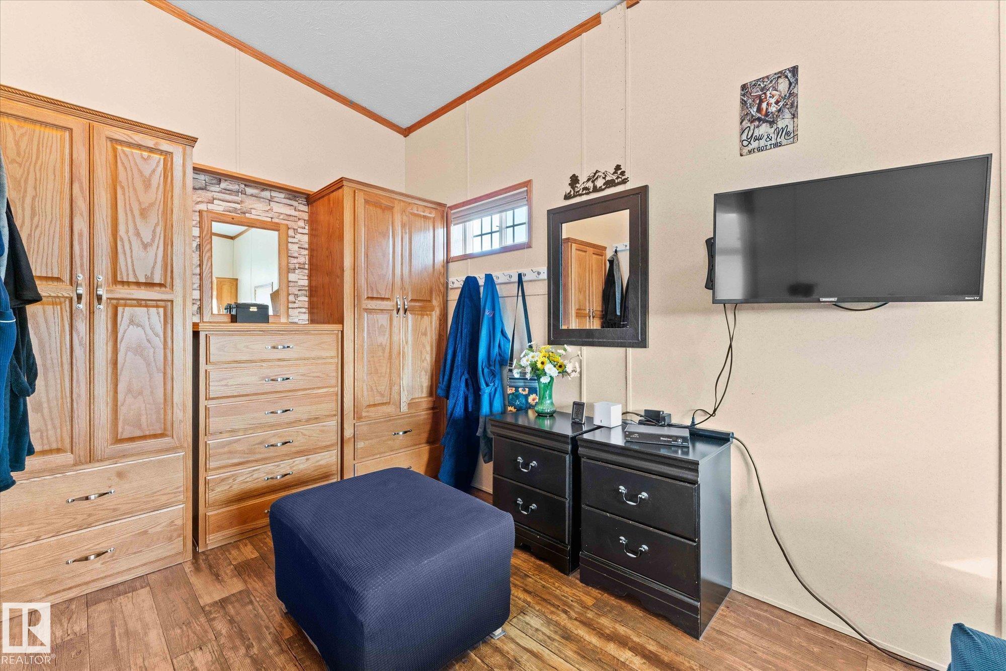 Are you ready for the vacation lifestyle, in one of a handful of 4-SEASON park models at the stunning Trestle Creek Golf Resort? This sunny unit, located in Phase 5 – Magnolia Hills, is turn-key & ready for its new owner! Outside, the beautifully landscaped & paved 45 x 100 ft lot features a fantastic 10’x14’ storage shed for all your toys, side porch & firepit area. Step inside to find a spacious mudroom with plenty of storage. As you venture further into the home, you will find a 4-piece bath & the large primary bedroom - previously 2 bedrooms, which can be divided to suit your needs. The kitchen, with plenty of storage features a black appliance package including a gas range. The highlights of the main living space include soaring windows, high ceilings, a built-in buffet, cozy fireplace & a west facing sliding glass patio door. The year-round amenities and events at Trestle Creek are endless, from the Water Park, to the Walking Trails, to the Restaurant & Pro Shop – you’ll love resort living!