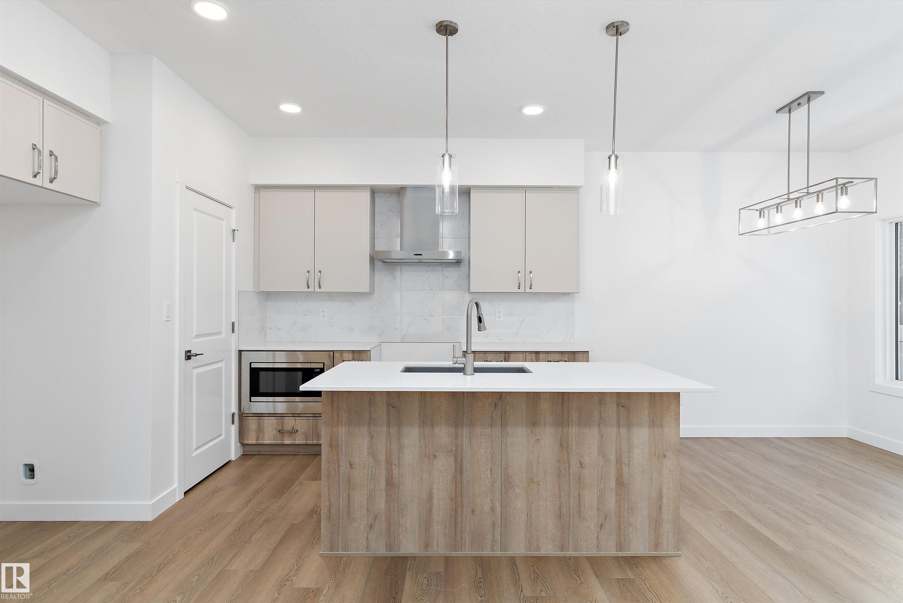 Experience the Ascend 22 by Sterling Homes, a masterfully designed open-concept home featuring 9 ft. ceilings on both the main floor and basement. The heart of the home is a bright kitchen boasting quartz countertops, a flush-ledge island, soft-close Thermofoil cabinetry, and a large corner pantry. Adjacent, the spacious great room features an electric fireplace and oversized windows that overlook the backyard. Luxury Vinyl Plank flooring flows throughout the main level, which also includes a convenient side entrance and a double attached garage with a floor drain. Upstairs, a central bonus room separates the secondary bedrooms from the primary suite. This owner’s retreat offers a walk-in closet and a 4-piece ensuite with double sinks and a glass shower. Complete with the Sterling Signature Specification, brushed nickel fixtures, and a basement rough-in, this home perfectly blends style and utility.
