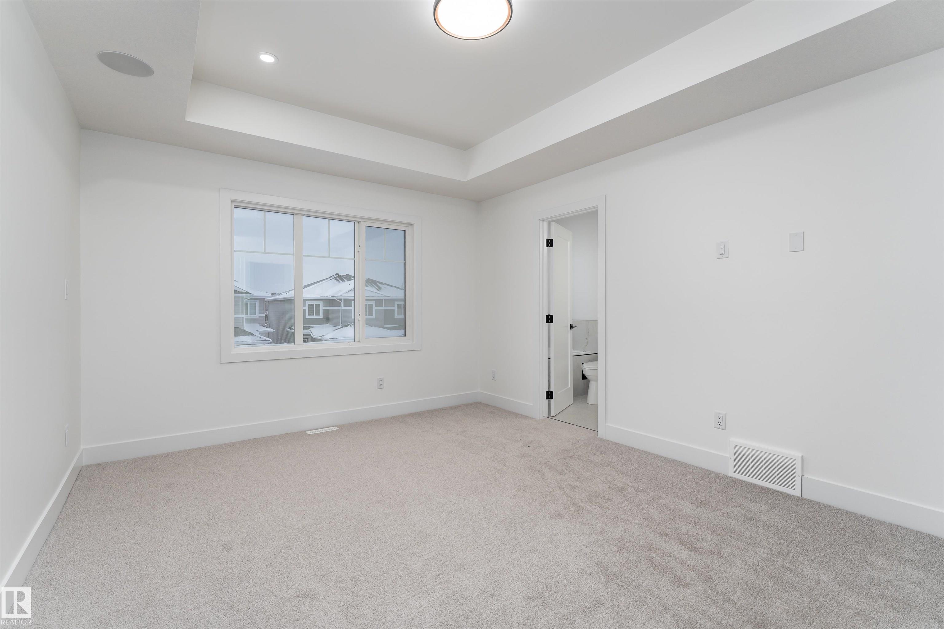 Refined, contemporary, and move in ready, 3109 Magpie Way is a striking half duplex in the thriving community of Starling. Offering 1,760 sq ft of well designed living space, this 3 bedroom, 2.5 bath home features an open concept layout with 9 ft ceilings and large windows that flood the home with natural light. The stylish white kitchen with warm wood accents serves as the heart of the home, complete with a large island and effortless flow into the living area highlighted by a beautiful mantel fireplace. A main floor den provides the perfect space for a home office or flex room, while a private side entrance offers added versatility and future suite potential. Upstairs, the spacious primary bedroom includes a 5 piece ensuite with double sinks and a generous walk in closet, accompanied by shopping, schools, nearby parks, walking trails, and Glendale Gold & Country Club, this modern and thoughtfully designed home offers an exceptional west Edmonton lifestyle.