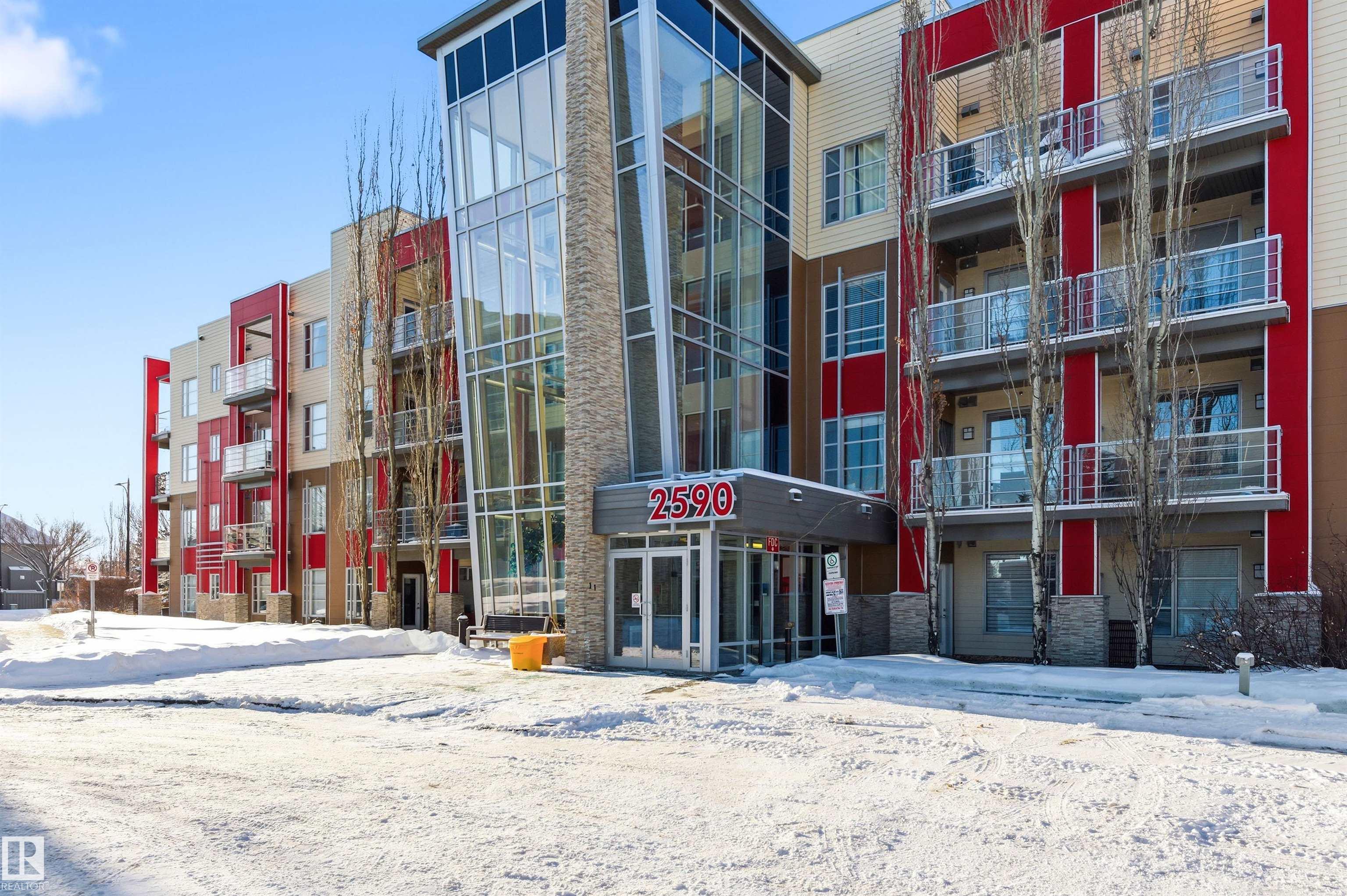 Welcome to life at The Ion in Ambleside, one of Southwest Edmonton’s most loved buildings. With scenic trails and parks right outside your door, plus the shops, restaurants, and everyday conveniences of Currents of Windermere are just minutes away. This bright and welcoming 2nd-floor unit features 9-foot ceilings, updated engineered hardwood floors, and a beautiful layout that feels both spacious and inviting. The refreshed kitchen shines with white quartz countertops, and the beautifully updated bathroom has a modern tile surround for a cohesive, elevated look. Enjoy peaceful treed views from your east-facing patio - private, quiet, and perfect for morning coffee. The bedroom has a walk-in closet, the laundry room offers extra storage, and a built-in desk creates the ideal work-from-home space. Perfect as a first home, a stylish downsize or a smart investment. Previously rented for $1550 per month, this is an incredible opportunity in a building that continues to be a favourite!