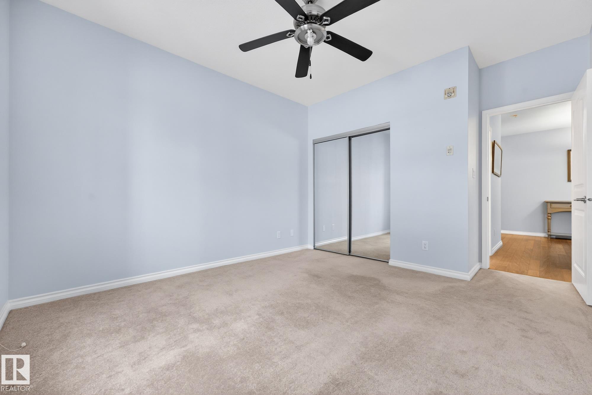 Say hello to this bright, south-facing 2 bed/2 bath open concept condo in Haddow, where comfort meets everyday living. A welcoming foyer leads to in-suite laundry and storage for effortless organization. The dining area flows into a U-shaped kitchen with stainless steel appliances, raised eating bar, pantry, and ample storage, perfect for quiet mornings and entertaining. The living room features a corner gas fireplace for cozy evenings next to a private covered balcony complete with a BBQ gas hook-up. Bedrooms are thoughtfully located on either side of the living room for additional privacy. The primary suite has walkthrough dual-sided mirrored closets with built-in organizers and a 3-piece ensuite. Heated underground parking with 2 titled stalls and 1 storage cage make coming home easy. Amenities to enjoy include the exercise room, social room, theatre, car wash, and guest suite rentals. Close to trails, services, shopping, Whitemud Drive, and Anthony Henday Drive. A place to truly feel at home.
