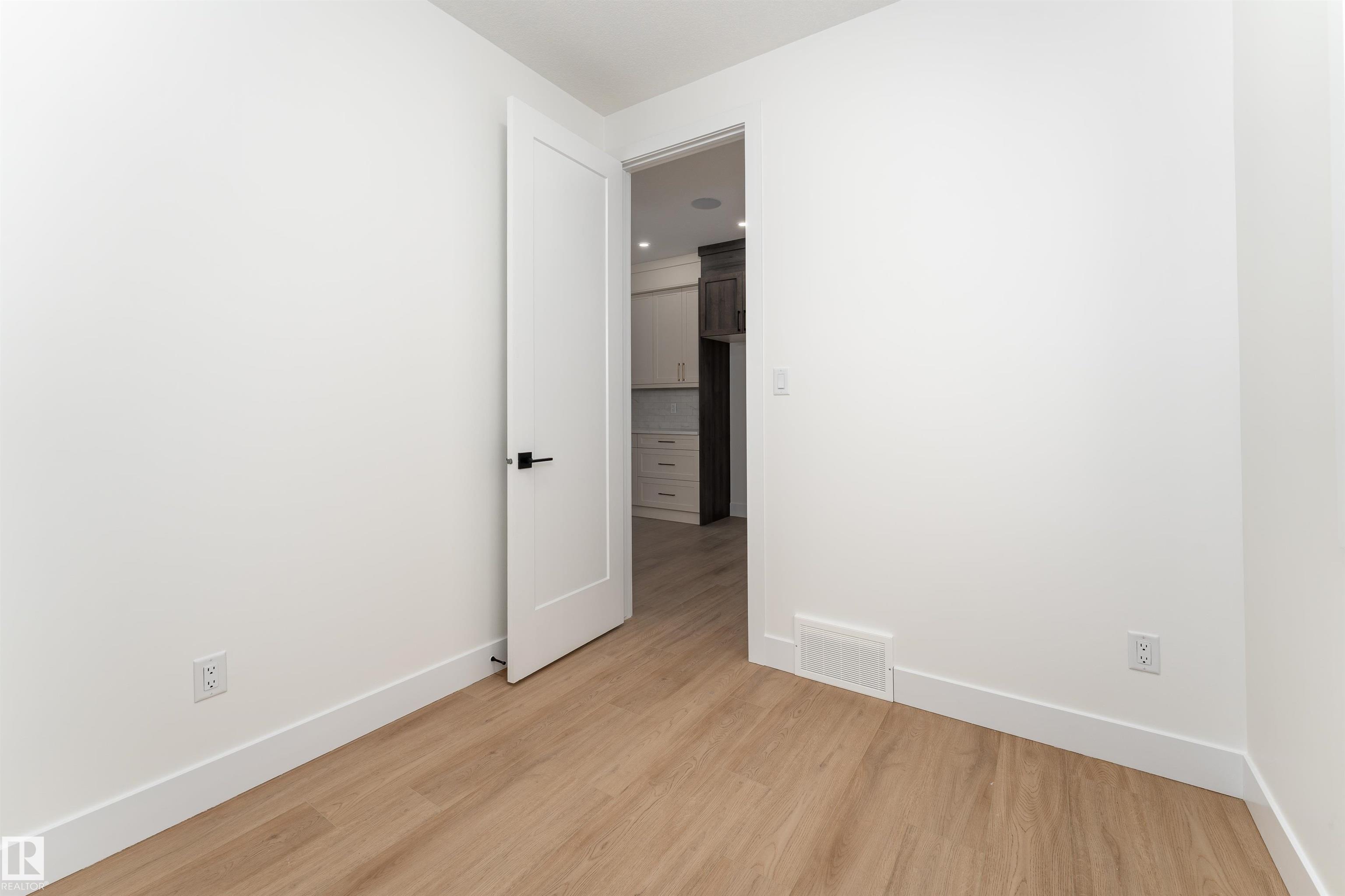 CORNER LOT in the desirable community of Starling. This move-in-ready half duplex offers 1,700 sq ft of living space with 3 bedrooms and 2.5 bathrooms. The open main floor features 9 ft ceilings and large windows that fill the home with natural light. The kitchen is designed for both function and style, with warm wood accents, a large island, and seamless flow into the living room, highlighted by a welcoming mantel fireplace. A main floor den provides flexibility for a home office or extra living space, while the separate side entrance adds convenience and future potential. Upstairs, the primary suite includes a spacious walk-in closet and a 5-piece ensuite with dual sinks. Located close to schools, shopping, parks, walking trails, and Glendale Golf & Country Club, this home offers an excellent west Edmonton lifestyle.