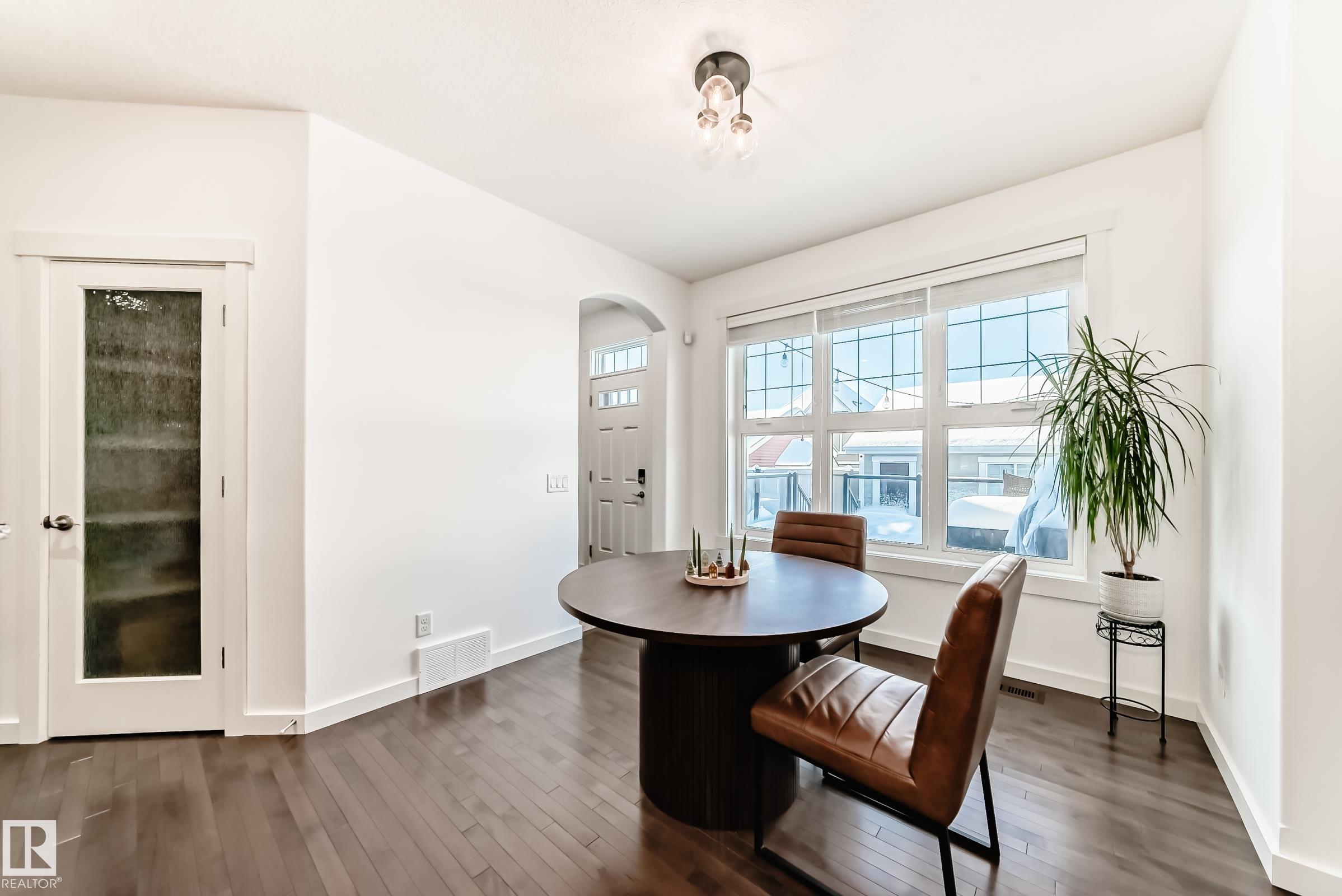 BEAUTIFUL & IMMACULATE! Custom-built by Homes by Avi nestled nicely in the award winning community of Grieshbach. This upgraded home shines with hardwood floors, fresh paint throughout, NEW Lighting & NEW modern kitchen backsplash. Kitchen offers premium appliances by Miele, GE Profile, Marvel & Whirlpool. Well appointed floor plan offering a large den, formal dining, main floor laundry & a spacious great room with warming gas fireplace Upstairs: 3 generous bedrooms including a sprawling primary with luxurious ensuite & walk-in. The finished basement features a rec room, 2nd fireplace & 4th bedroom. The oversized 24x24 insulated garage is spotless, wired for EVs & zoned for a suite. A massive composite deck with glass railings adds style & ease. Enjoy summer in the sun-filled backyard with cobble stone paths, per perennials. Additional features include A/C, Hardie board siding, water softener and condition make this home a true GEM!