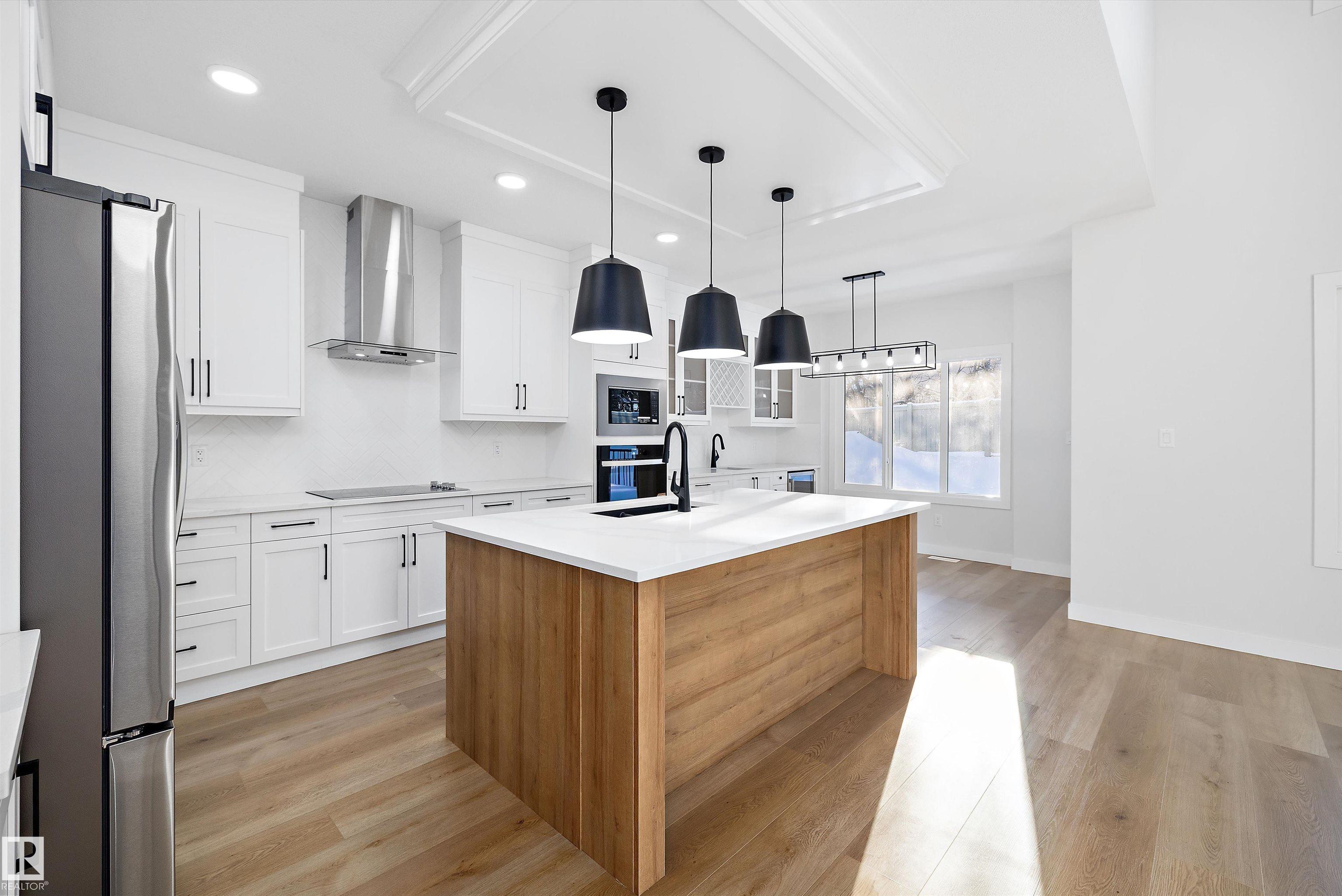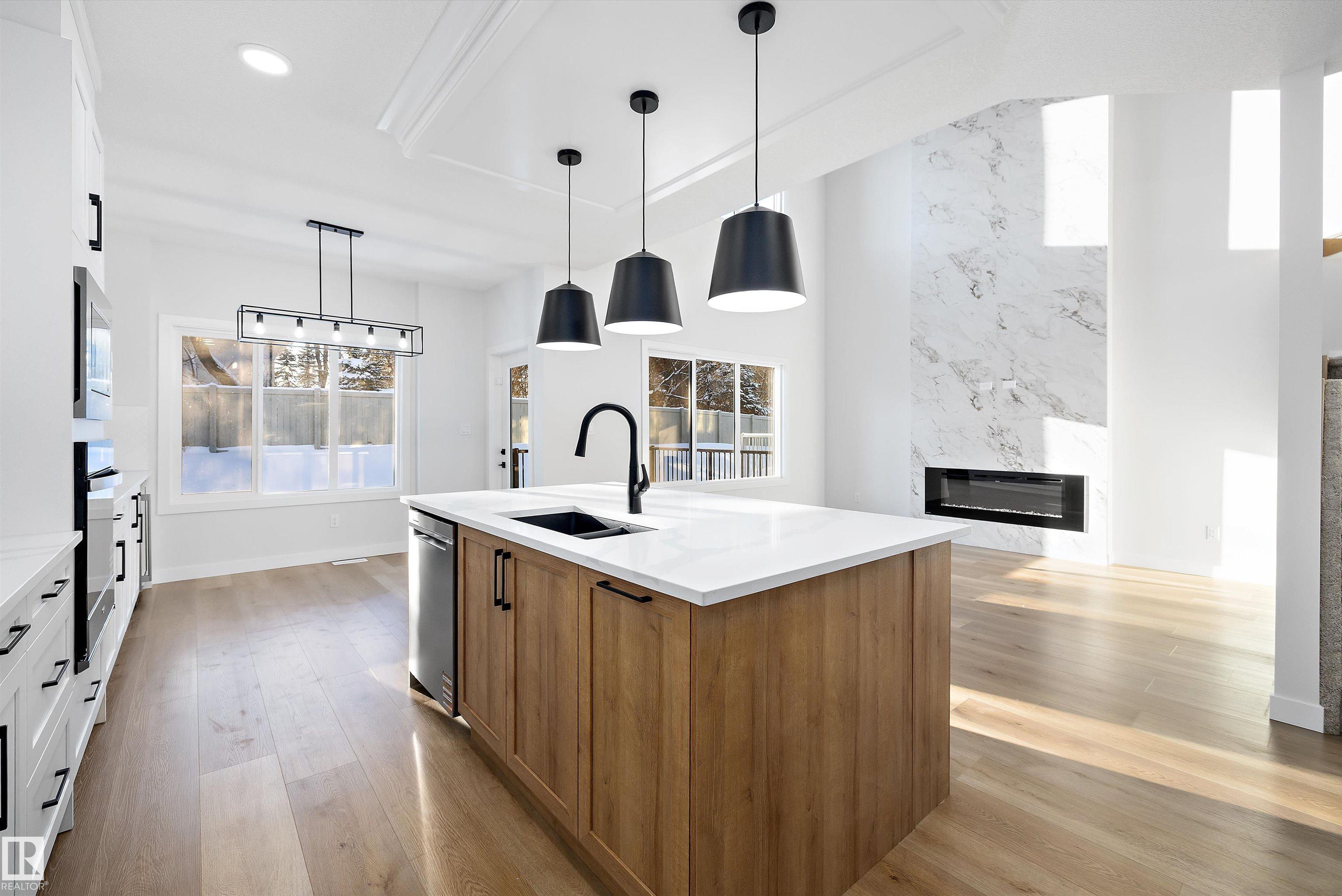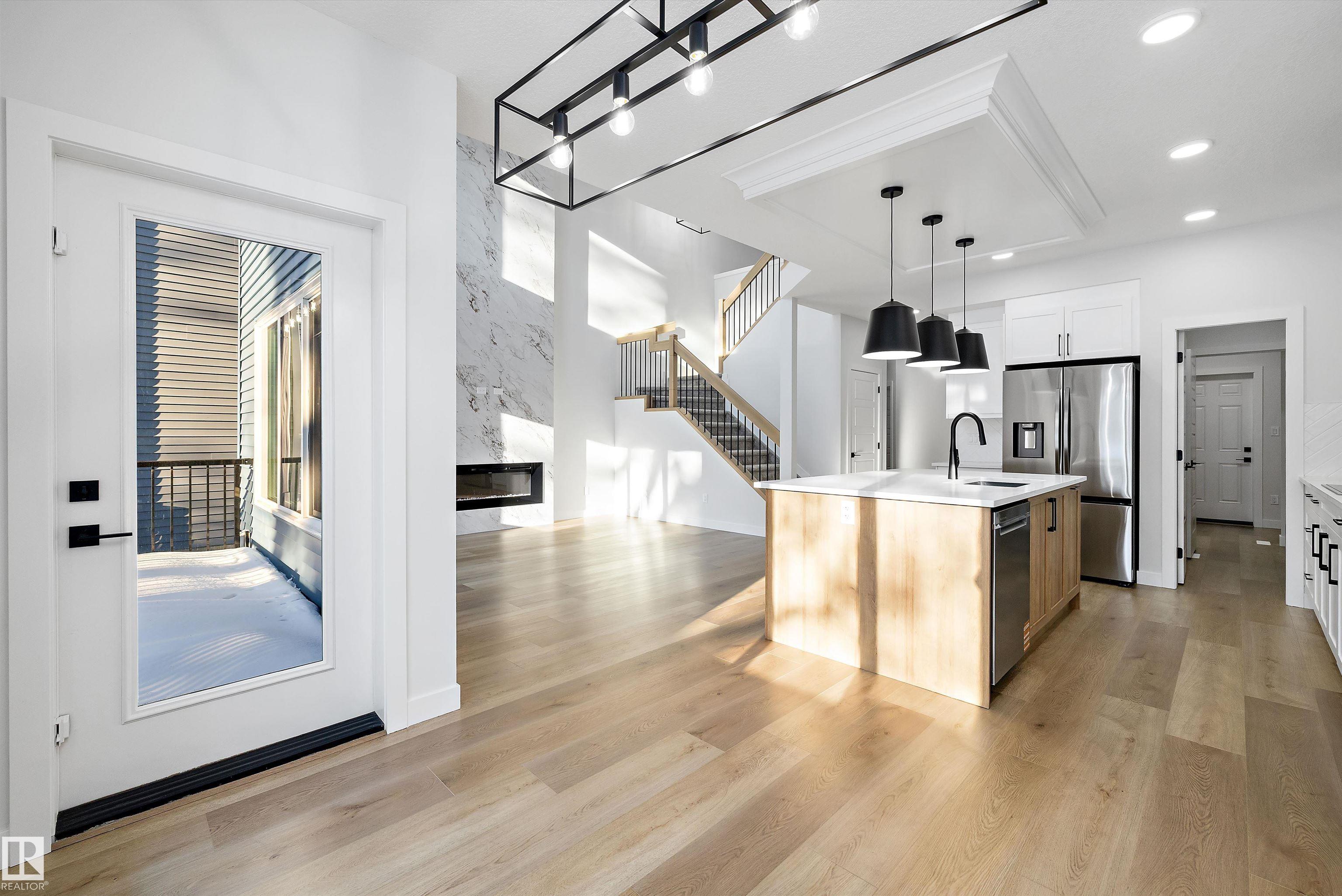Welcome to this brand new 2112 SQFT 2 Storey Chelsea model home by award winning Blackstone Homes in Kinglet Gardens. Upon entering you will be welcomed by nice foyer leading to a much needed den/bedroom, perfect for work from home days/guest, mudroom with built ins with walk through pantry leading to beautiful kitchen with huge island. Dining room with bar, perfect for entertaining, large windows overlooking the south backyard w/deck. Great room offers 18' open to below ceiling with linear fireplace with tile finish & coffered ceiling. The 2nd floor offers 3 big size bedrooms, 2.5 baths, bonus room & laundry room. Large master bedroom with beautiful spa like ensuite offering double sinks, shower & freestanding tub, huge WIC. Other features - Separate entrance, 9' main/basement ceiling, upgraded shower with 10mm frameless door, MDF shelving, feature walls, upgraded plumbing/flooring/electrical, upgraded quartz, all appliances, New Home Warranty. Close to Anthony Henday & Yellowhead, shopping, park.