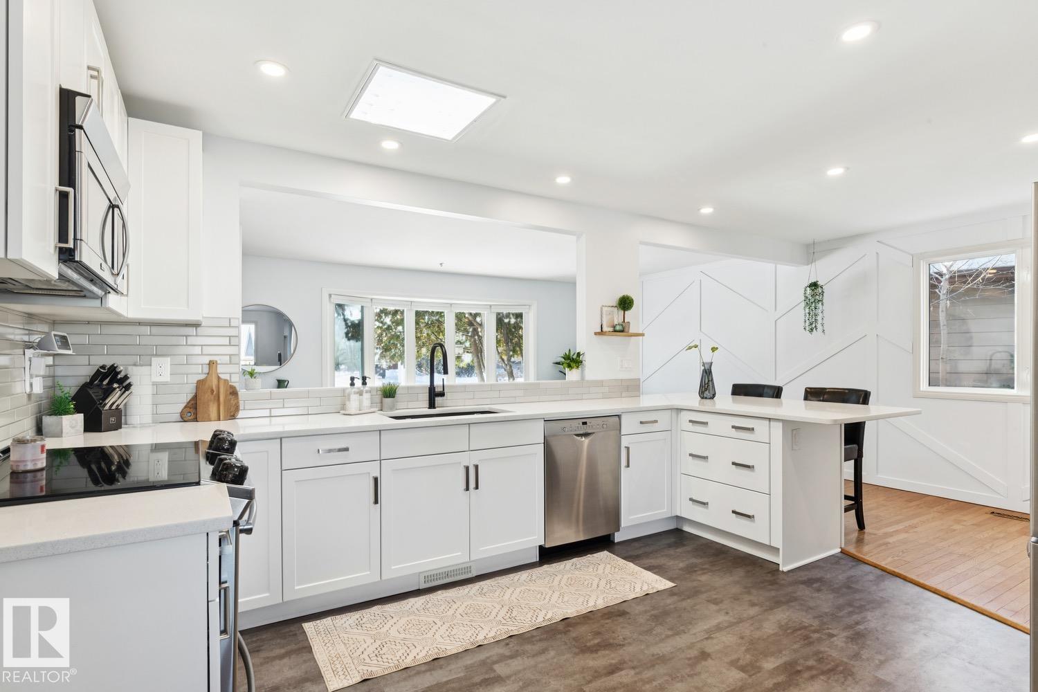 Tucked away in desirable Hillview, this thoughtfully updated bungalow is one of a kind. The south-facing bay window anchors the open-concept living space, highlighted by a custom feat. wall & an abundance of natural light. The spacious kitchen offers quartz countertops, SS appliances, a Solatube skylight & vinyl tile flooring. Freshly painted, the main floor showcases hardwood flooring, triple-pane windows & the family room boasts a new electric fireplace. A newer roof, and major mechanical upgrades incl. a newer furnace & A/C (2024). Offering 3+2 bdrms and 3 full baths, the home feat. a fully finished basement with large windows, laminate flooring, spacious family room, full laundry room, cold room, separate entrance and a dedicated home office built in 2022. The fully fenced yard boasts new sod (2024) and a Rain Bird in-ground sprinkler system. The oversized double heated garage with new door spring has a structural beam & ample additional driveway parking. The rear alley was newly paved. Welcome home!