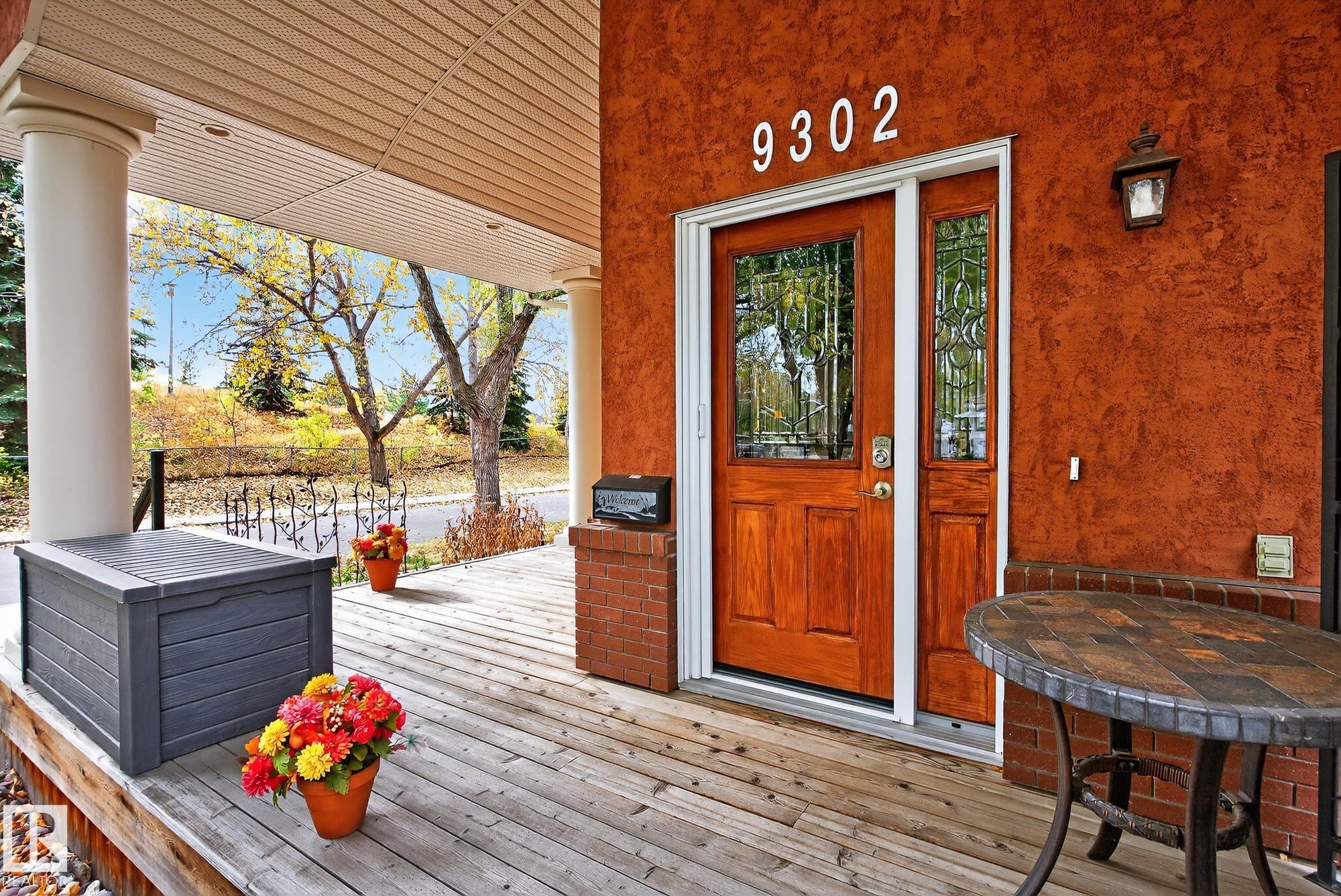 Exceptional 2,533 sq ft two-storey Habitat Studio™ home on a corner lot facing Bonnie Doon Park, built in 2010 with outstanding energy efficiency. Designed with triple-pane low-E windows, 12” double-offset insulated walls, 30” attic insulation, passive solar design, and a 10 kW solar system (2022) generating income. The home features cherry hardwood floors, solid maple doors, quartz countertops, cherry cabinetry, and an open-concept main floor filled with natural light. Enjoy in-floor heating, a steam shower, 3-season room with gas fireplace, and covered front and rear porches. The upper level offers a vaulted primary suite with ensuite and walk-in closet. The fully developed basement includes a second kitchen and bedroom. A triple car garage with self-contained garage suite offers park views, balcony, in-floor heat, and excellent rental or guest potential. Beautifully landscaped with a rainwater irrigation system and thoughtful design throughout.