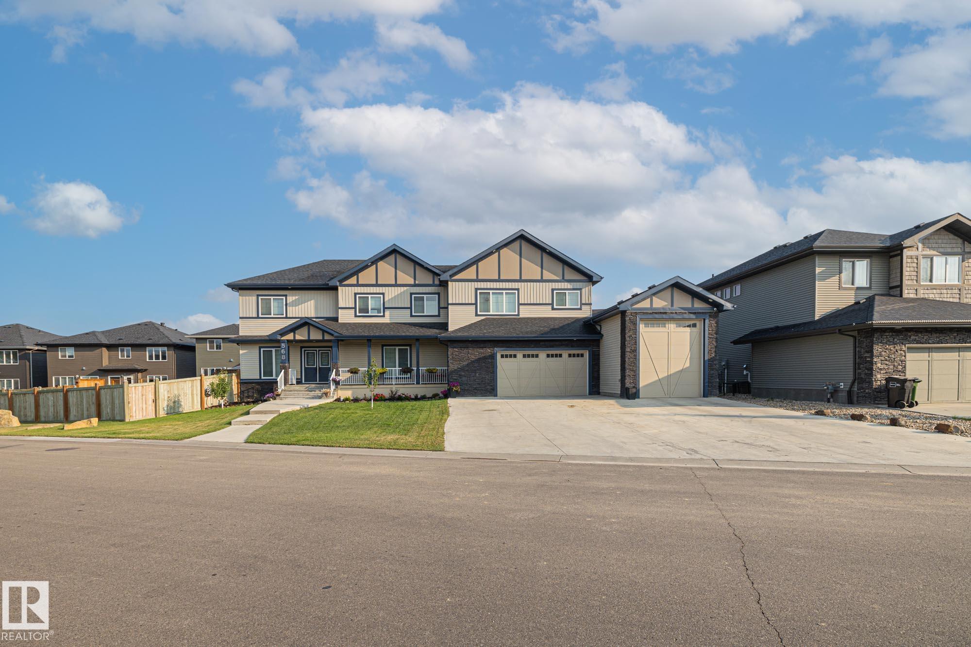 Live your BIG DREAMS in this BIG HOUSE! Room for the whole family & then some. Grand front double doors open to bright & sunny living room, den/bedroom off to the right. Deck #1 just past the living room. On the other side is your formal dining room, full 3pc bathroom, chefs kitchen & deck #2. On the 2nd floor find your private primary bedroom with spa like 5pc ensuite. Soaker tub for 2 & large walk-in closet. Down the hall is laundry room, 3large bedrooms, 4pc bathroom and family TV room completes this level. Hunter Douglas blinds throughout. Oversized TRIPLE tandem garage is any motor enthusiast dream; commercial grade heaters, 13' ceilings room for car lift. TWO 12' garage doors. Park the RV, boat, bikes, all the toys. 9' ceilings in basement ready for future development with separate entrance. Almost .30 of an acre lot. You will never find this again in the city. Walking trails through the valley right out front your door. Easy access to Anthony Henday, HWY 16, & shopping amenities. Look no further!
