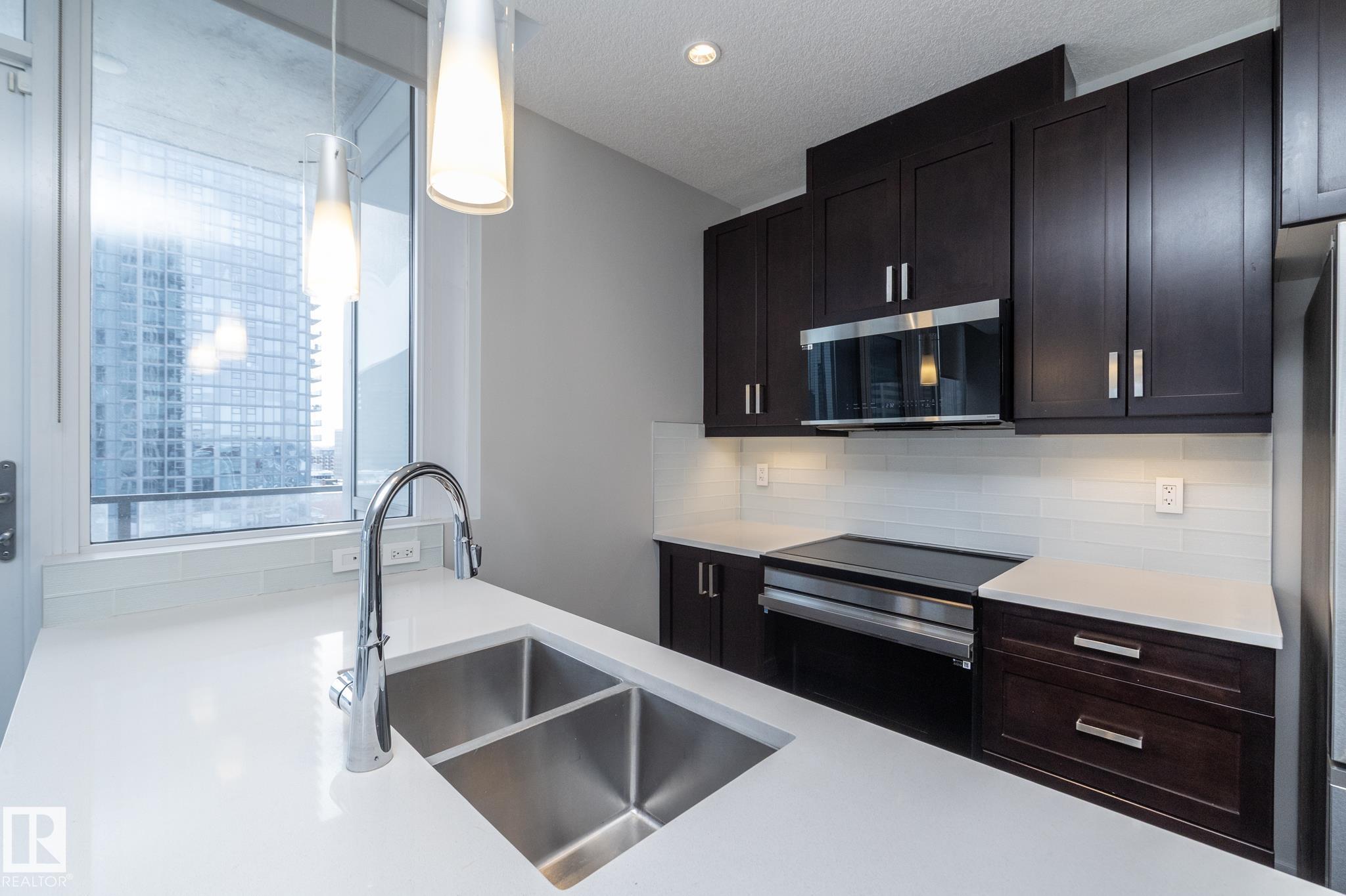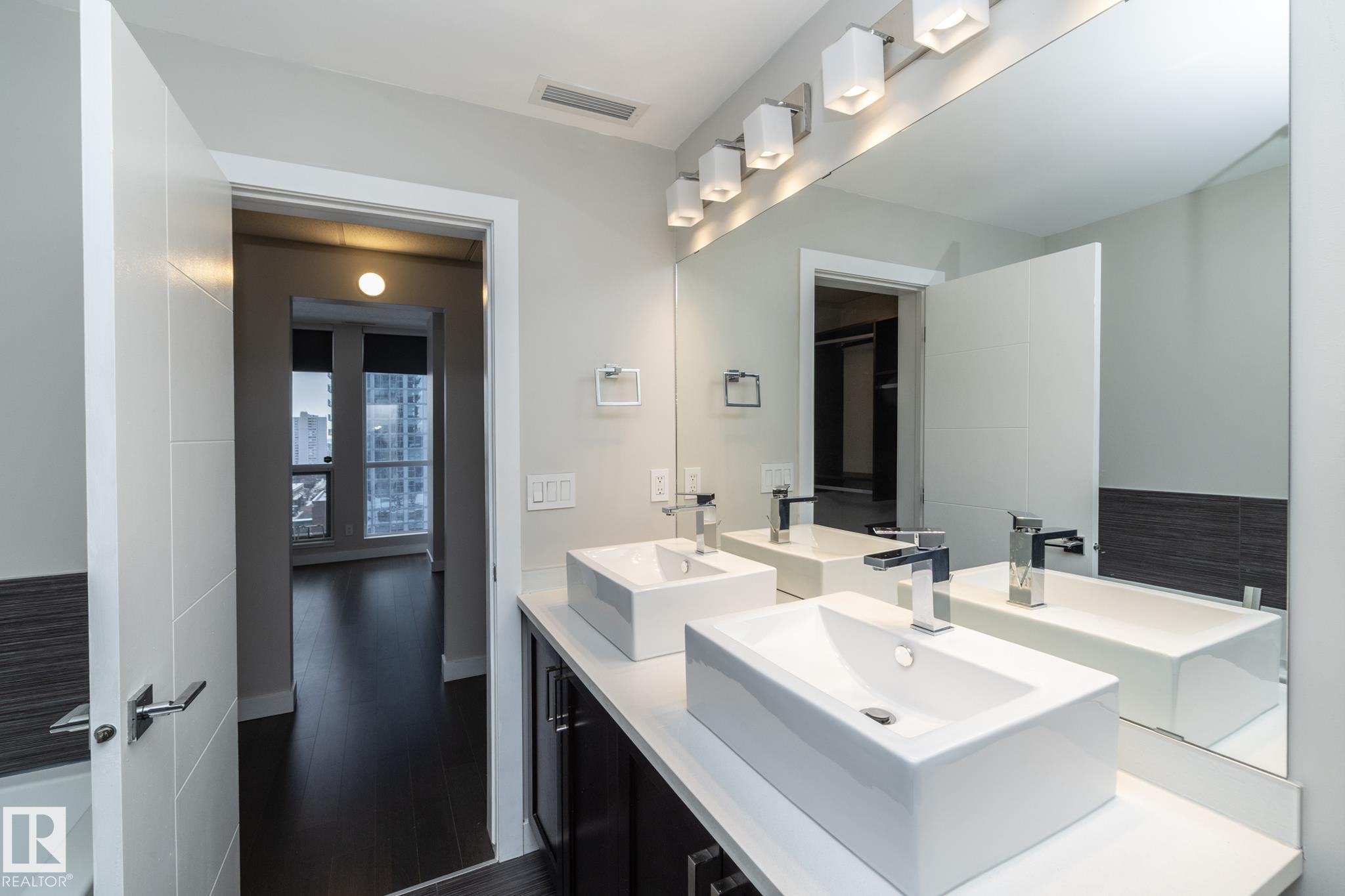 Corner unit | A/C | Concrete building | Underground parking + storage | And more! Welcome to Ultima Tower, offering refined downtown living in this 2 bedroom, 2 bathroom southeast corner suite with unobstructed views of the downtown skyline and river valley showcased through floor-to-ceiling windows in every room. The thoughtfully designed layout features hardwood flooring throughout (no carpet), stainless steel appliances, in-suite laundry, and a private balcony—perfect for enjoying the city atmosphere. The open, functional living space is ideal for both everyday living and entertaining. Residents enjoy premium amenities including a fitness centre, concierge service, party room, and a rooftop lounge with hot tubs and cabanas. Located directly across from Rogers Place and within walking distance to restaurants, shops, and downtown attractions. Immediate possession available.