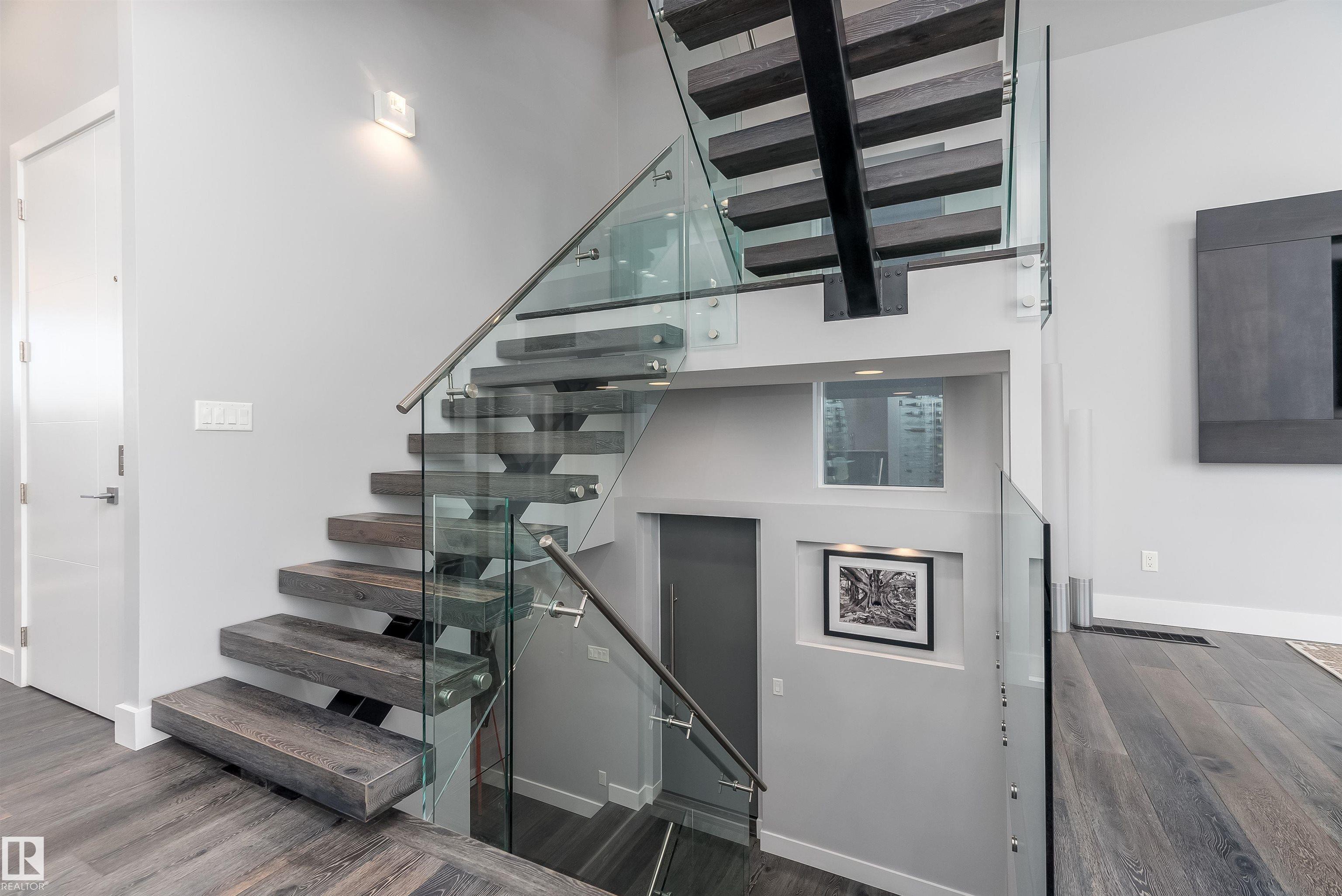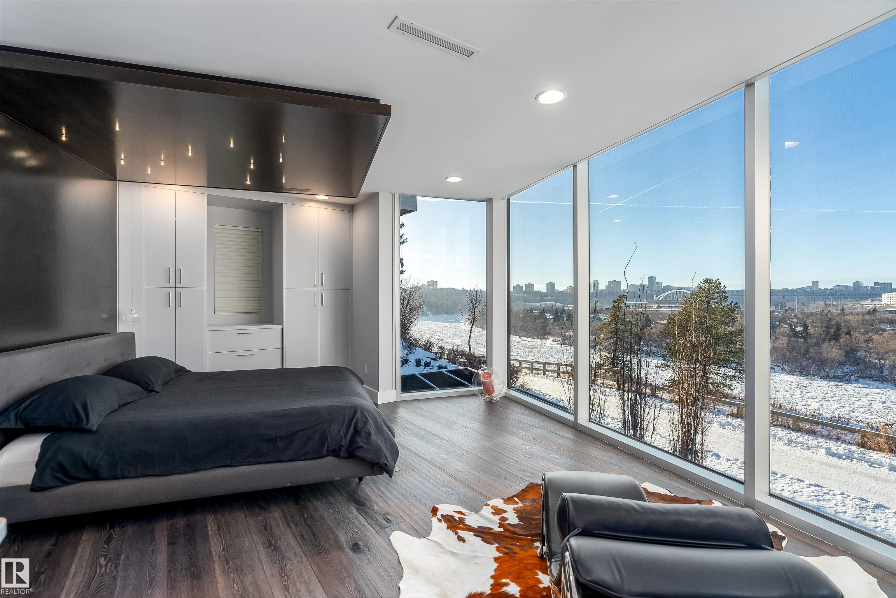Reduced $670,000 from $3,270,000 to $2,599,000 to sell! Panoramic views onto the river & overlooking downtown, 1 of 9 homes in this exclusive location! 3,470 sqft, 4 beds, 6 baths, elevator, commercial wall of windows! The kitchen features top-tier Redl cabinets, painted glass backsplash, JennAir Professional appliances, quartz, windows that open to main floor patio, and a bar beside the dining area. Swarovski lights lead up the Artistic Stairs with 13mm glass & stainless rails. 3 beds and laundry on 2nd level. A primary with wall of windows looking onto downtown, wet bar, and California Closets walk-in. An en-suite with spa steam shower, massive shower head ($25K), body sprays, surround sound, and stone resin stand alone tub. The penthouse bar has 2 rooftop patios, gas lines, hot & cold taps, frameless postless glass, and is spec’d for hot tub! A double attached garage with 20’ wide door, 4th bed & soundproof living room in basement. Over $250K of audio & home automation! Some pictures virtually staged.