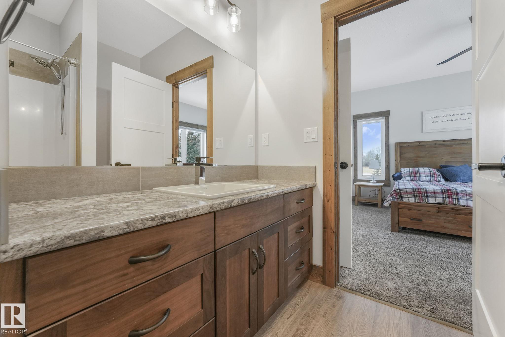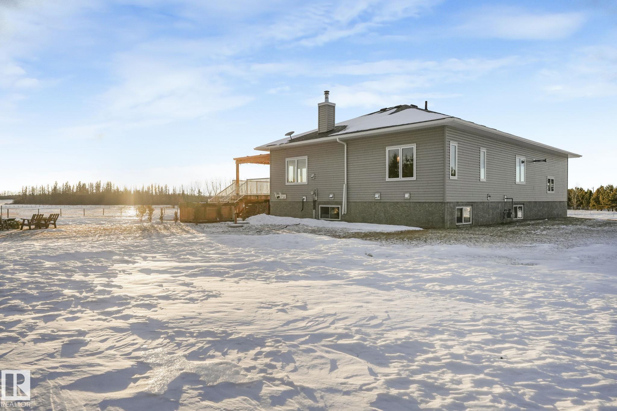 Beautiful BUNGALOW CUSTOM BUILT IN 2022 with 5 bedrooms on 3.98 acres OUT OF SUBDIVISION 25 MINUTES to LEDUC!!! This extremely well built home offers an open concept floor plan with LOADS OF DRAWERS and CABINETS in the kitchen... HUGE SOUTH FACING WINDOWS for plenty of NATURAL LIGHT... WOODBURNING STOVE in the FAMILY ROOM... 2 SPACIOUS BEDROOMS on main with ENSUITE and WALK-IN CLOSET off PRIMARY BEDROOM... MAIN FLOOR LAUNDRY... 3 BEDROOMS in BASEMENT... 9' CEILINGS... 3 FULL BATHROOMS... HEATED 26' x 25' GARAGE... HOT WATER ON DEMAND... DRILLED WELL... CONCRETE PAD for HOT TUB... and so much more!!! Enjoy the BEAUTIFUL SOUTH FACING VIEW FROM THE LARGE DECK OVERLOOKING FARM LAND with PLENTY OF PRIVACY. Landscaped and partially fenced 30 minutes to the INTERNATIONAL AIRPORT and 45 minutes to Edmonton this gem is a rare find!!