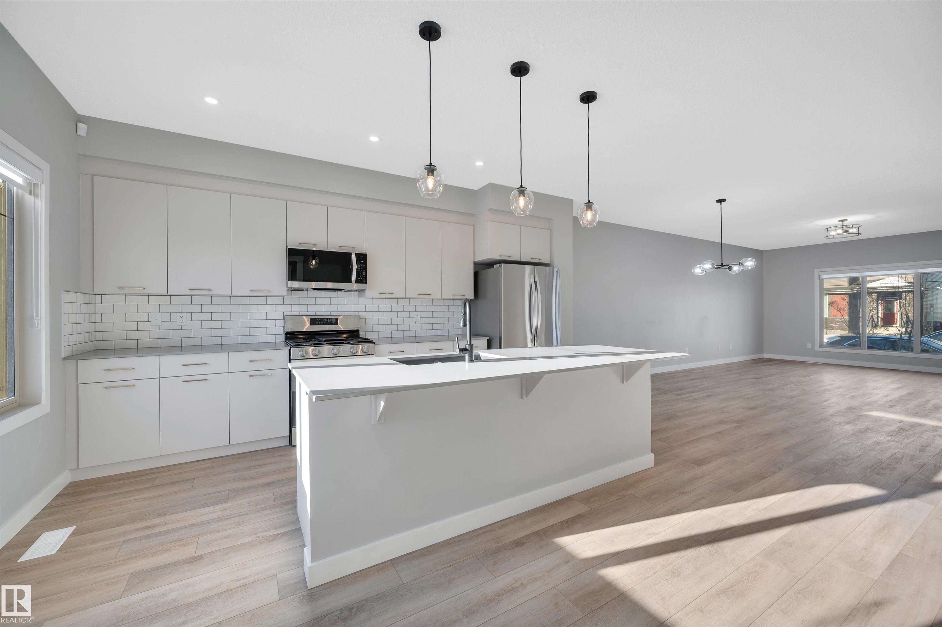 2023 built home in Griesbach offering 1,840.97 sq ft above grade with a practical layout and a legal 1-bed basement suite featuring second kitchen and separate laundry. A total of 4 bedrooms and 3.5 bathrooms, making this an ideal option for buyers seeking rental income or space for extended family. The main and upper levels feature luxury vinyl plank flooring throughout (no carpet) and quartz countertops. The upper floor includes a large bonus room, providing flexible living space, along with a primary bedroom with walk-in closet and ensuite and additional well-sized bedrooms. The basement suite is fully permitted and thoughtfully integrated into the home. Outside, enjoy a deck, fully landscaped and fenced yard, and a double detached garage. Located in the established and highly sought-after community of Griesbach, close to parks, schools, walking trails, and amenities. A well-rounded, modern home with long-term flexibility and value.