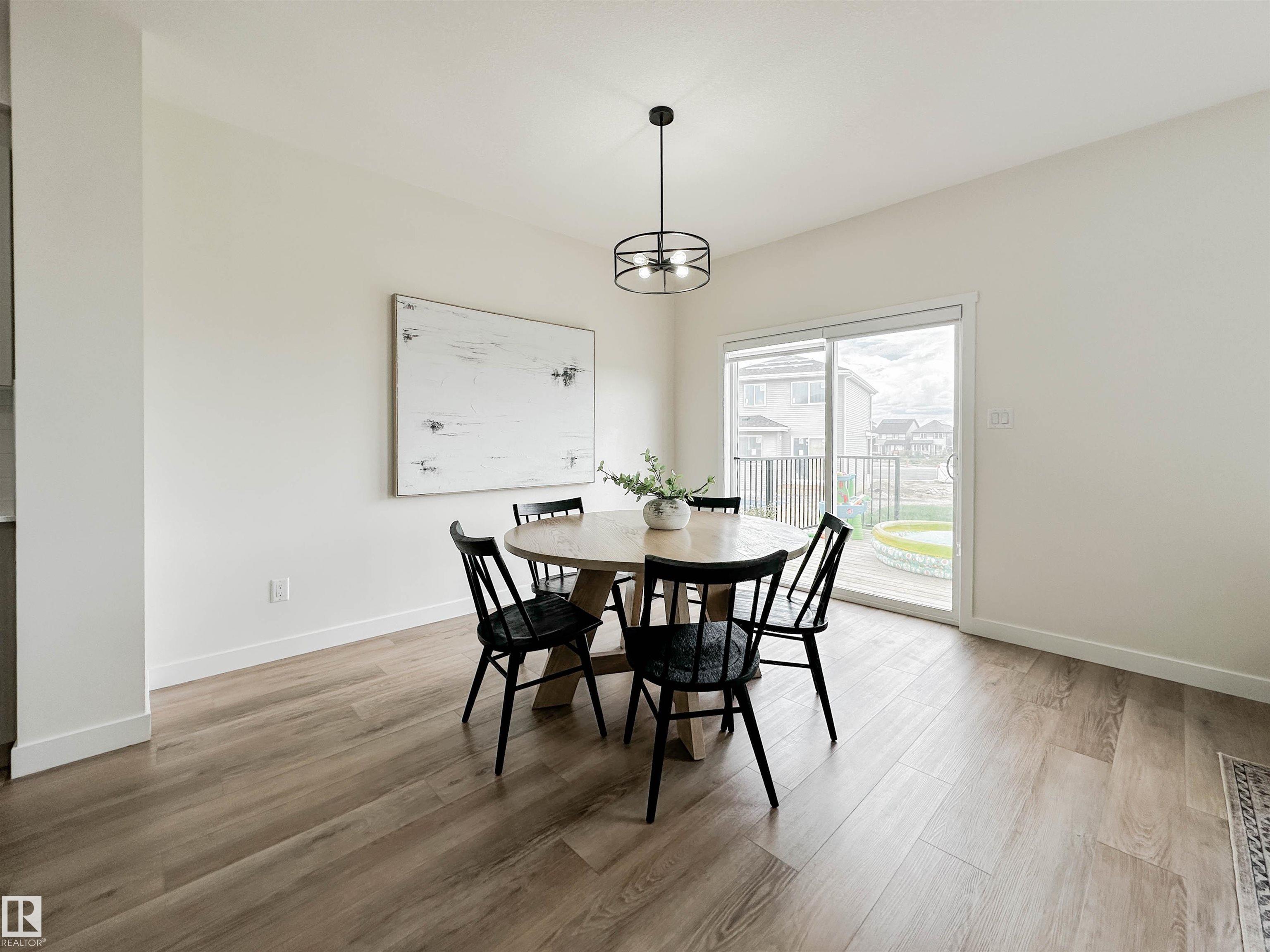 Welcome to this beautifully crafted family home, perfectly located on a quiet street in the heart of Trumpeter at Big Lake. Offering nearly 2,200 sqft. of thoughtfully designed living space, this home blends style with everyday functionality. The main floor features a spacious foyer, versatile flex room, & bright open-concept kitchen with quartz countertops & walk-through pantry leading to a mudroom with built-in cubbies, large closet, & garage access. The great room is highlighted by a cozy electric fireplace, while oversized windows flood the space with natural light. A convenient 2-pc bath completes the main level. Upstairs offers 3 bedrooms, including a primary suite with a walk-in closet & 3-pc ensuite, plus a bonus room, 4-pc bath, & laundry. The finished basement includes a large recreation area with potential for an additional bedroom & bathroom, along with ample storage. Ideally located close to all amenities with quick access to the Henday & Yellowhead Trail, perfect for modern family living.