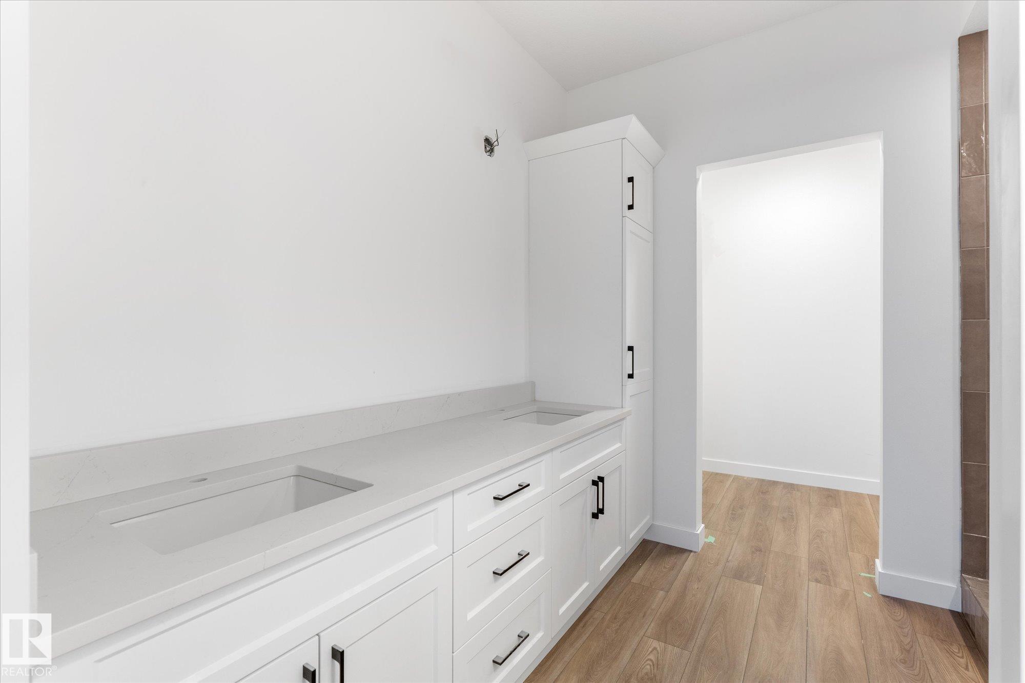 Brand new executive bungalow by Southbend Developments in Deer Park, Spruce Grove. This open-concept home features wide LVP flooring, recessed lighting, and a stunning electric fireplace with custom cabinetry and floating shelves. The kitchen is elegantly finished with full-height white cabinetry, white quartz countertops, a substantial island with concealed under-island storage, wall oven, and a massive walk-through pantry designed for seamless organization. Primary suite includes deck access, walk-in closet, and 4-piece ensuite with his and hers sinks and large walk-in tiled shower. Second bedroom/den, additional 4-piece bath, and mudroom with laundry off the triple attached garage. Separate side entrance to basement provides excellent future development or suite potential. Deck access from dining and primary. Close to parks, schools, and amenities.