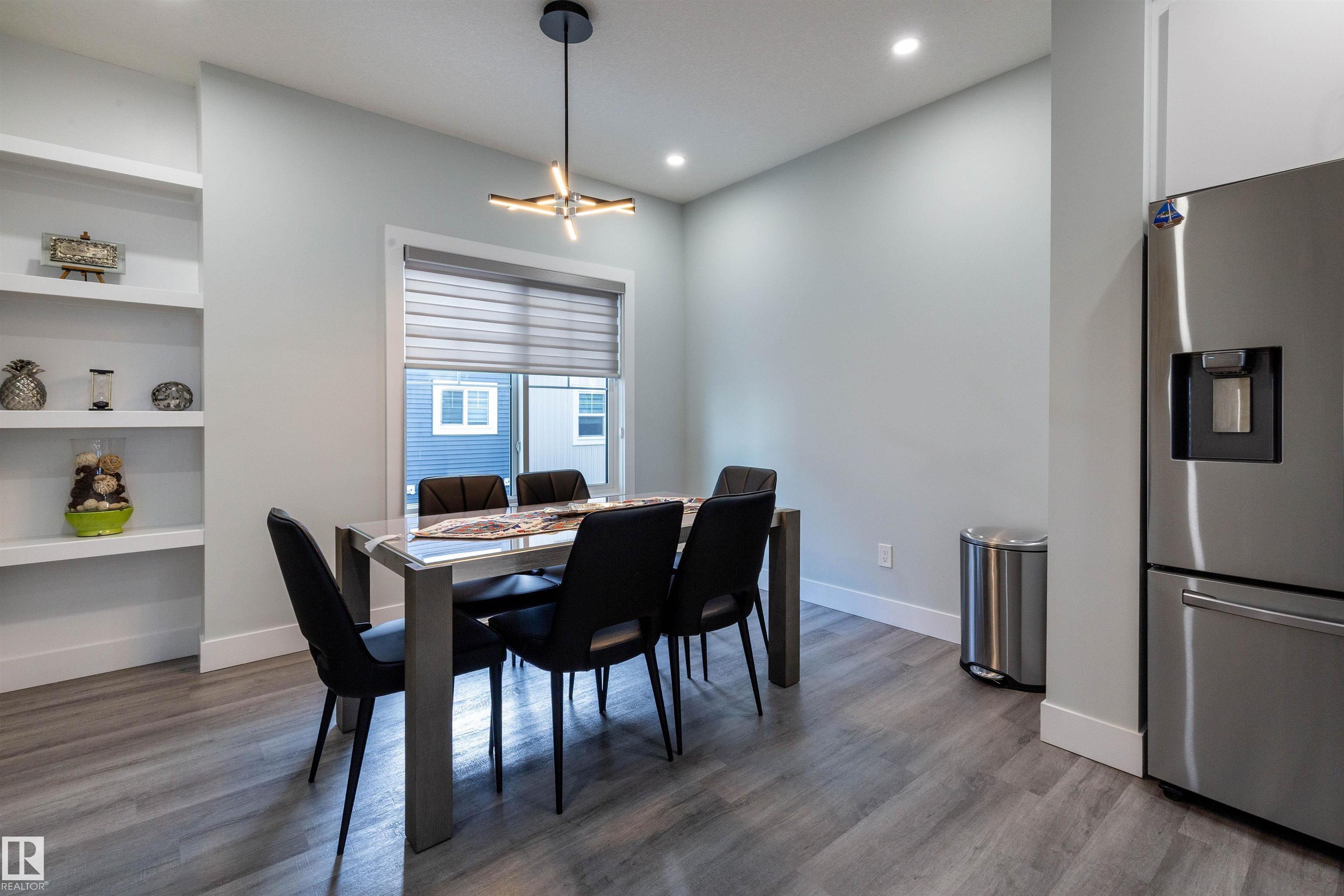 METICULOUSLY MAINTAINED AND BARELY LIVED! Just under 1700sq ft of spacious and open floor plan living with UPGRADES GALORE in the sought after complex of Edgemont Townhomes. Good size kitchen with extended kitchen cabinets, quartz counters, tile backsplash, soft close doors/drawers, large centre island and all upgraded SS appliances. Large LR area with a linear electric fireplace which changes colours w/upgraded mantle which leads to a oversized deck. Upstairs you will find a good size bonus room along with 2 primary bedrooms with ensuites and walk-in closets w/all MDF shelving. Upper main area has 9ft ceilings, 8ft doors, laundry room w/built-in cabinets, LVP and a 2pce powder room. Large entry/mudroom area along with a good size den and oversized patio area. Upgraded railings w/wrought iron spindles, light fixtures, hardware, high efficiency furnace and HWT and triple pane windows. Unit faces SW and overlooking tress. Close to shops, restaurants and quick access to Anthony Henday. Unit is super clean!