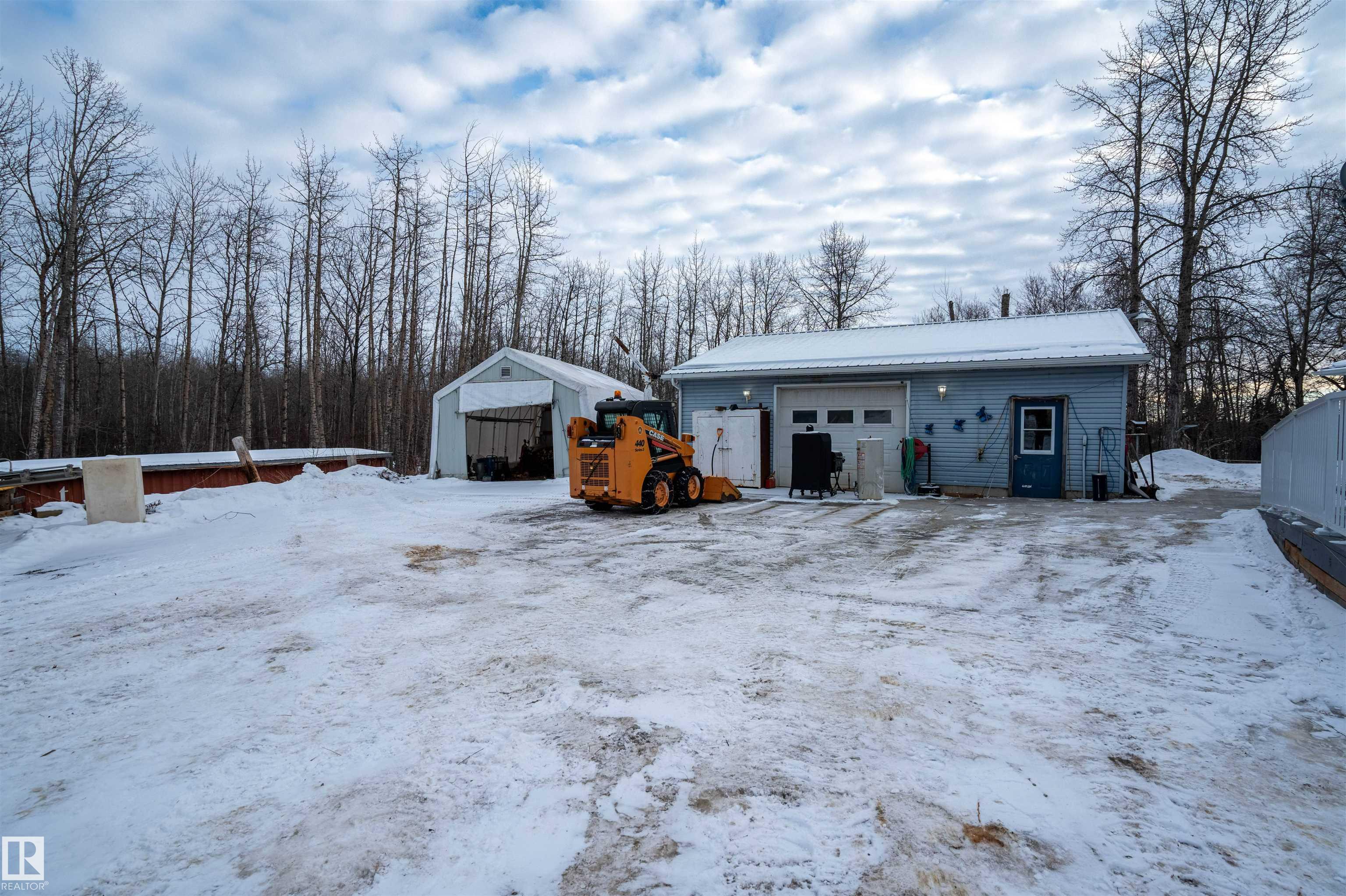 Welcome to your country paradise! Located in scenic Parkland County, this charming 2-bedroom home sits on 4 fully fenced acres, to the east is a park/reserve, offering exceptional privacy and natural surroundings. The property features a peaceful 10-ft pond, spacious gazebo, and small greenhouse, creating the perfect setting to relax and enjoy outdoor living. Inside, the home offers a bright sunroom, cozy wood-burning fireplace, and air conditioning for year-round comfort. Recent updates include a new boiler for the in-floor heated double car garage, an approximately 7-year-old well, tin roof on both the home and garage, and an electric gate for added security. Additional storage is available with three tarp sheds. Garage includes a 3 piece bathroom. Conveniently located near Cougar Creek and Grouse Nest Golf Course, Alberta Beach, and Wabamun, and just 25 minutes from Stony Plain, this property blends peaceful country living with easy access to nearby amenities.