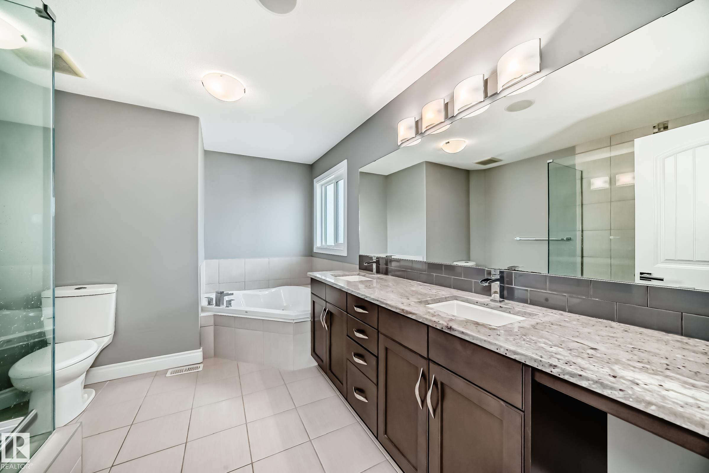 A lavish home steeped in quiet luxury! Award-winning design in the desirable comm. of Laurel! Approx. 2300 sq.ft. above grade + fully fin. bsmt, this stunning home offers the best in style & comfort. Open flr plan c/w ceramic & gleaming hardwood, 9’ ceilings, 8’ drs, flex/dining rm w/French drs, great rm w/gas FP, & gourmet kitchen w/exotic white granite, lrg island & eating bar. Upper flr boasts 3 spacious bdrms + vaulted bonus rm. Primary suite offers WIC & lux 5-pce ensuite. Granite in all baths + exquisite lighting pkg. Upgrades incl: central A/C, heated garage, 2-stage variable speed furnace, Water softner, declorinator, tankles hot water & built-in speakers. Lower lvl fully fin. w/rec rm, full bath/ensuite & 2 bdrms. Outdoor living c/w sun deck, fenced & landscaped yard, playset, gazebo & shed. Steps to comm. lake, walking/biking paths, transit, w/excellent access to Henday & Whitemud. Stop Waiting – Start Living!