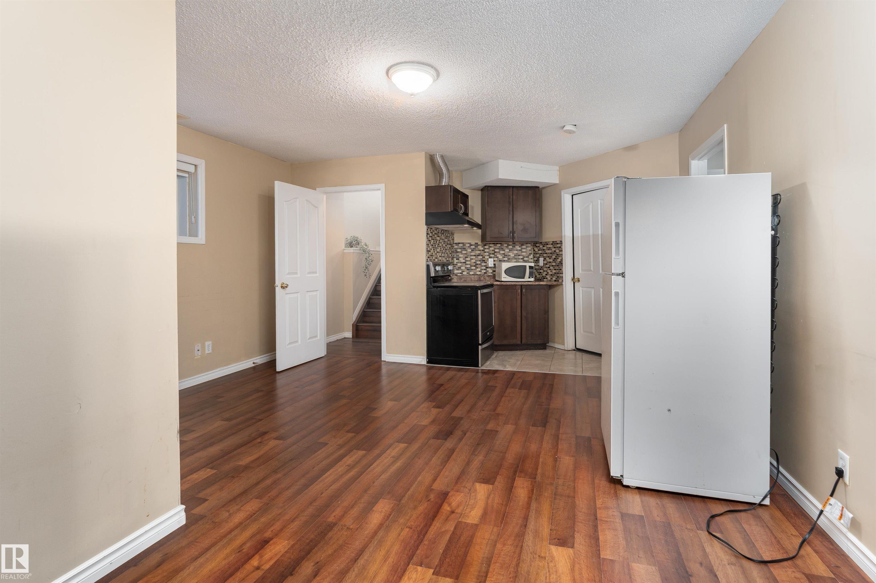 Well-maintained bi-level home featuring a fully developed basement with second kitchen—ideal for added flexibility. Offering 5 bedrooms and 3 full bathrooms, this home boasts a bright and airy main floor with vaulted ceilings throughout. The kitchen is equipped with granite countertops, white cabinetry, stainless steel appliances, and a skylight that fills the space with natural light. The open-concept living and dining areas are highlighted by a cozy gas fireplace and expansive windows. The spacious primary bedroom includes a walk-in closet and a 4pc ensuite. Numerous upgrades have been completed, including the roof, hot water tank, furnace, laminate flooring, and window coverings. The basement features 2 additional bedrooms, a second kitchen, and a functional laundry room with storage, washer, dryer, and utility sink. Outside, enjoy a fully landscaped backyard with a large deck, storage shed and garden space. Complete with a double attached heated garage.