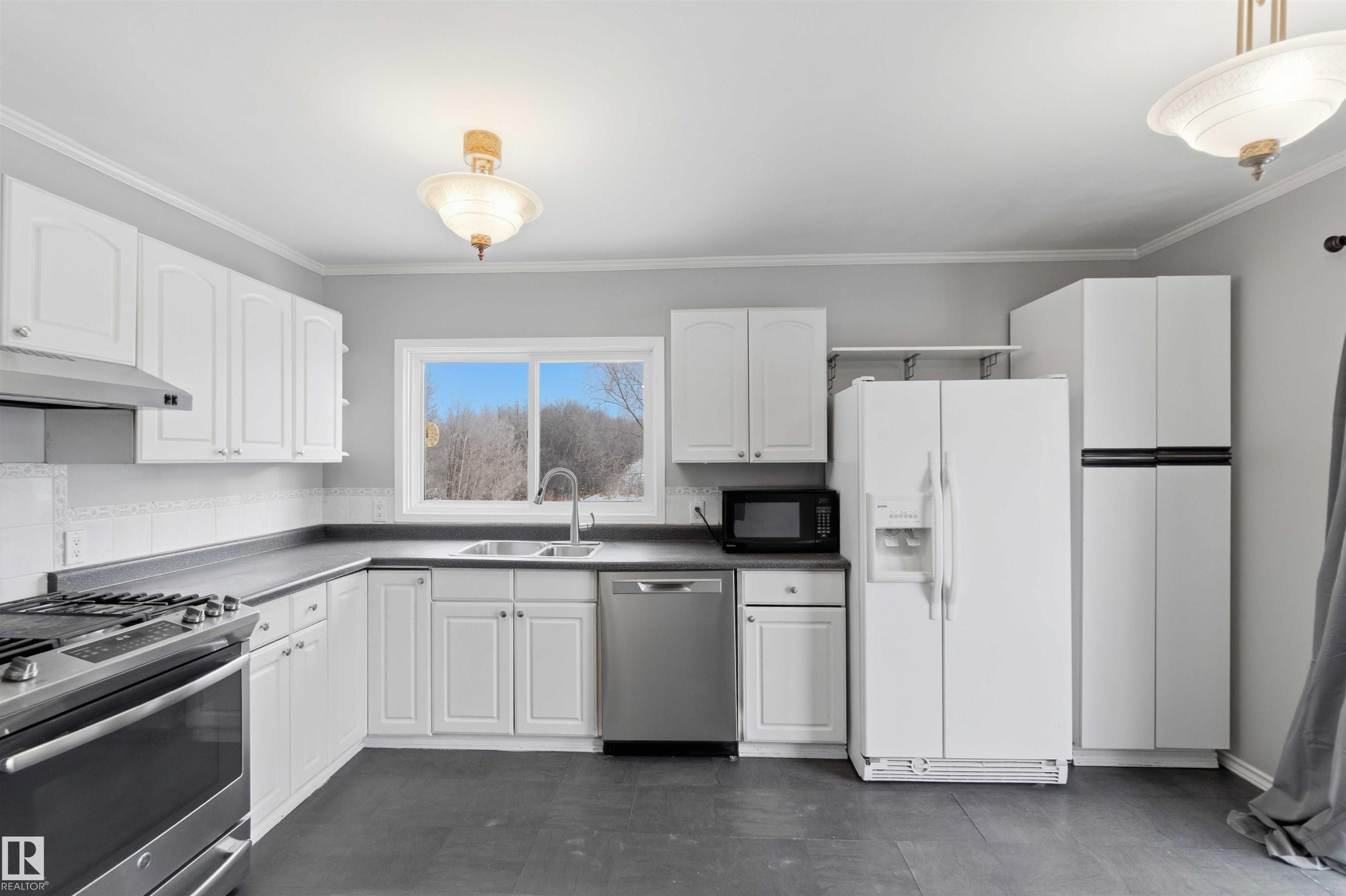 Experience peaceful country living with this cozy and secluded 2+1 bedroom bungalow, perfectly set among mature trees and open farmland, prime location OUT OF SUBDIVISION. Located just 10 minutes from Sherwood Park and City of Edmonton, minutes to the Anthony Henday, this home offers the ideal balance of privacy and convenience. The home features numerous updates, including hardwood flooring, a new roof and furnace, septic pumps (2011), and a fully renovated basement (2012). The bright, inviting kitchen is filled with natural light from large windows and provides direct access to both side and back decks with beautiful yard views. Outside, enjoy a tranquil oasis complete with a pond, raised fire pit, large shed, chicken coop, and double detached garage along with parking pad on the side. This serene retreat is ready to welcome you home.