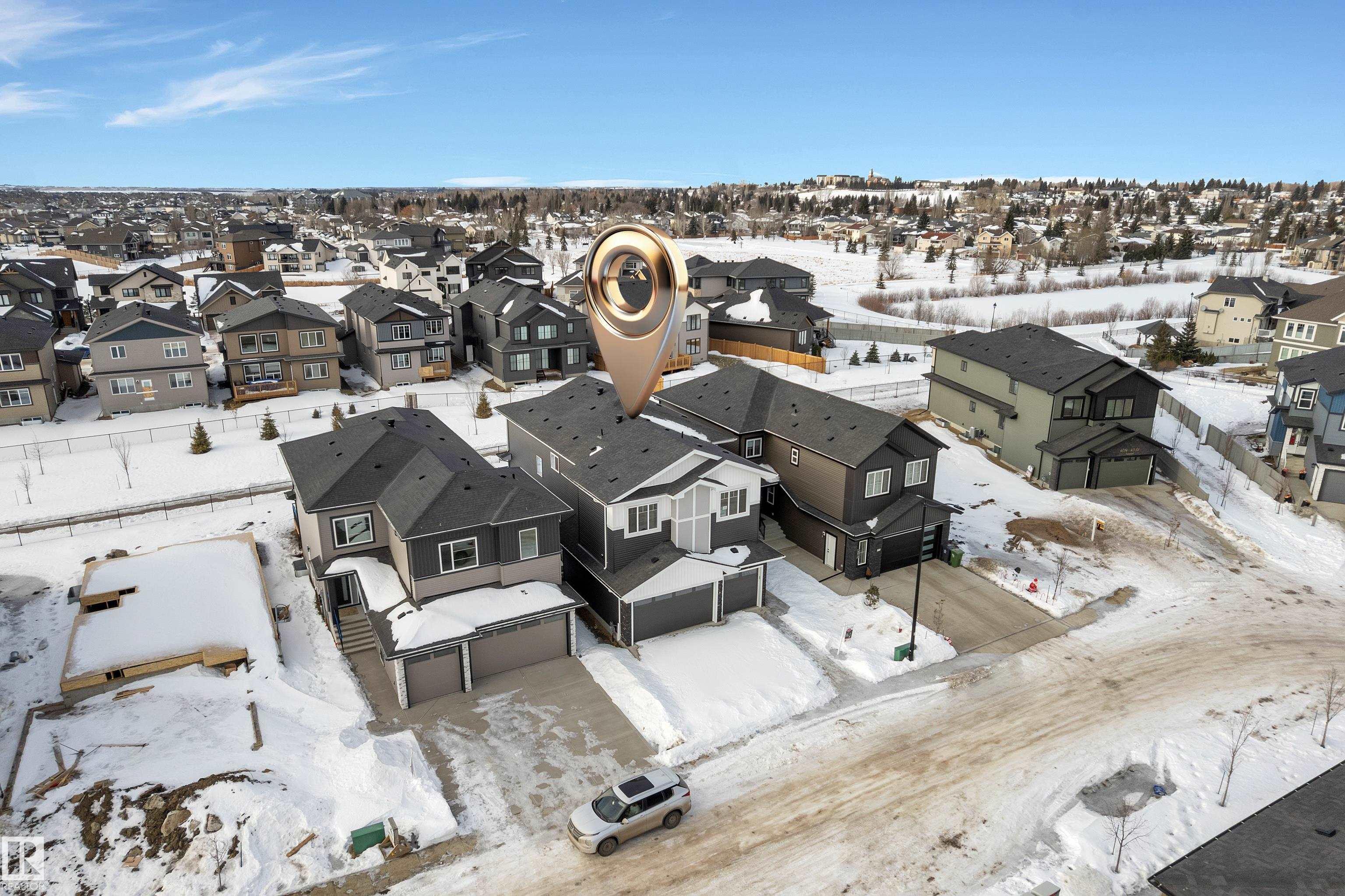 TRIPLE GARAGE || 2 LIVING AREAS || This meticulously designed home showcases custom features and thoughtful details throughout. Offering 5 spacious bedrooms and 4 full bathrooms, including a convenient main-floor bedroom with a full bath. open-to-above living areas are flooded with natural light and enhanced by elegant feature walls and two cozy fireplaces, creating stunning yet inviting spaces.The chef-inspired main kitchen, complemented by a fully equipped spice kitchen, is perfect for entertaining and everyday living. Upstairs, each bedroom enjoys its own private ensuite, along with a large bonus room that adds flexibility for family needs. A triple attached garage, full appliance package, and a carefully planned layout reflect attention to every detail. Ideally located close to schools, parks, and all amenities, this exceptional home truly checks every box.