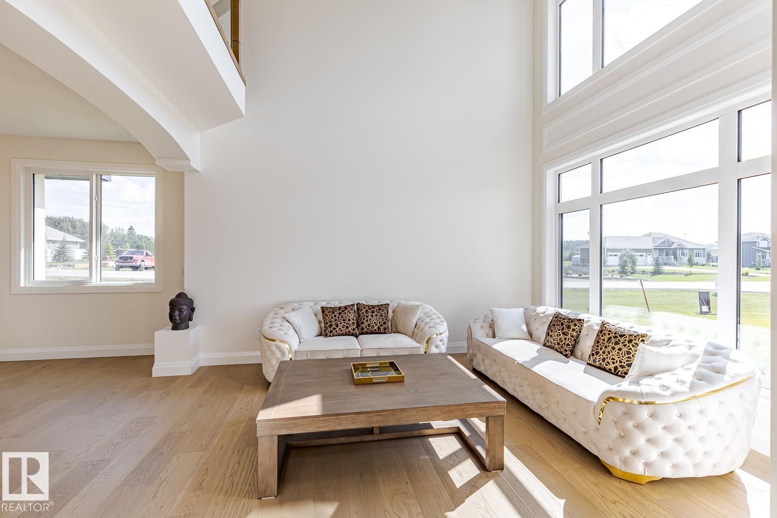 Welcome to Spring Meadow Estates! This exceptional luxury estate offers over 5,000 sq ft of refined living space of thoughtful design & premium finishes! The home features 3,574 sq ft A.G.+ a 1,605 sq ft basement w/SEPARATE ENTRANCE! Offering 6 bedrooms, main-floor flex office & 4.5 baths. The chef’s kitchen is a true showpiece, complete with a spice kitchen. The 2nd level features 4 bedrooms, 3 full baths & laundry room! A standout feature is the approx. 1,400 sq ft attached 4-car garage for vehicles, hobby toys, workshop space & storage. Offering a full-length deck & covered terraces elevating everyday living. Set on a spacious one-acre lot w/ city water & sewer, this estate delivers privacy & convenience—just 7 minutes on fully paved roads to West Edmonton. Built by ASR Projects Inc, this masterpiece showcases a stunning open-concept floor plan, soaring ceilings & top-tier craftsmanship. Home is still under construction. Pictures are from show home. Measurements are calculated following RMS guidelines.