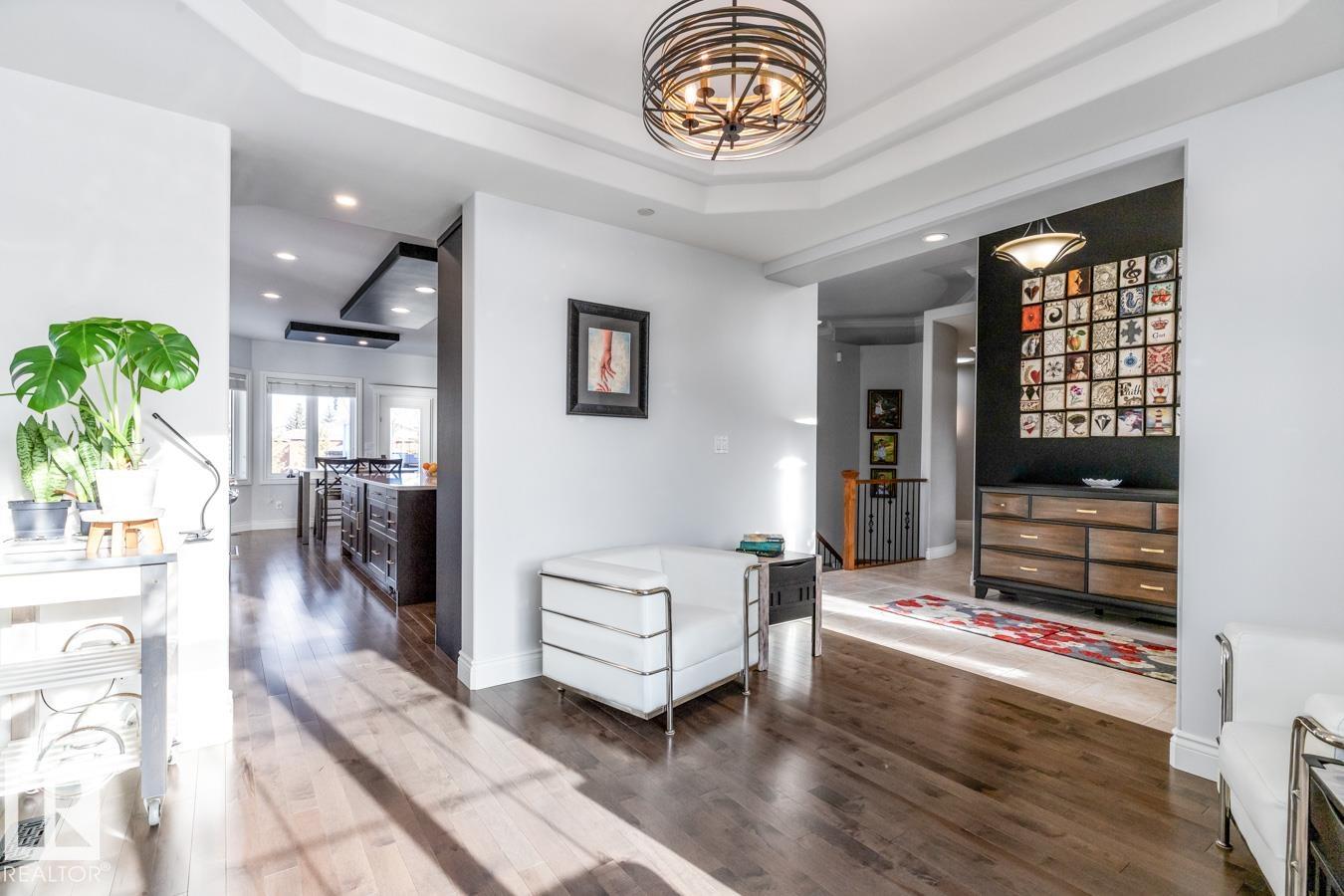 This elegant WALKOUT BUNGALOW is a true showstopper! Beautifully upgraded & ideally located next to a quiet park, this executive home offers 5 bedrooms, 3 baths, a 30x34.5 heated tandem garage, & RV parking. A grand, light-filled entrance with soaring ceilings welcomes you inside. The impressive chef’s kitchen features abundant cabinetry, coffee station, 6-burner dual-fuel range, hot & cold filtered tap with reverse osmosis, & a quartz island overlooking the dining area & living room with cozy fireplace. The king-sized primary suite includes a walk-in closet, ensuite, & private patio access. A flex space, 2nd bdrm, 4pc bath, & laundry complete the main level. The fully finished walkout basement is ideal for entertaining with rec room, wood-burning fireplace, wet bar, & access to the 36x22 stamped concrete patio. 3 additional large bedrooms all with walk-in closets, 3pc bath, & den complete the home. Enjoy the private, beautifully landscaped yard with bubbling fountain & maintenance free deck.