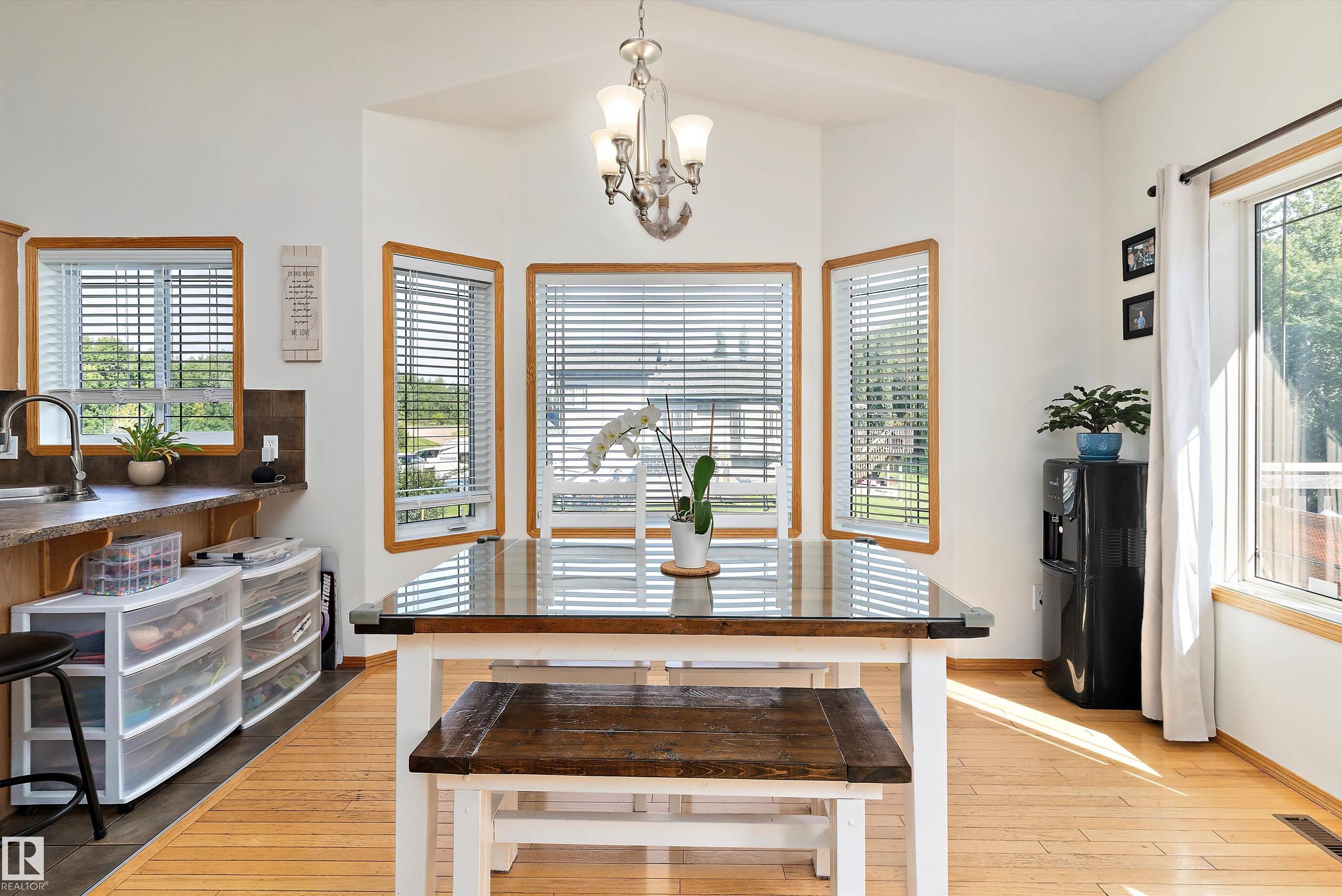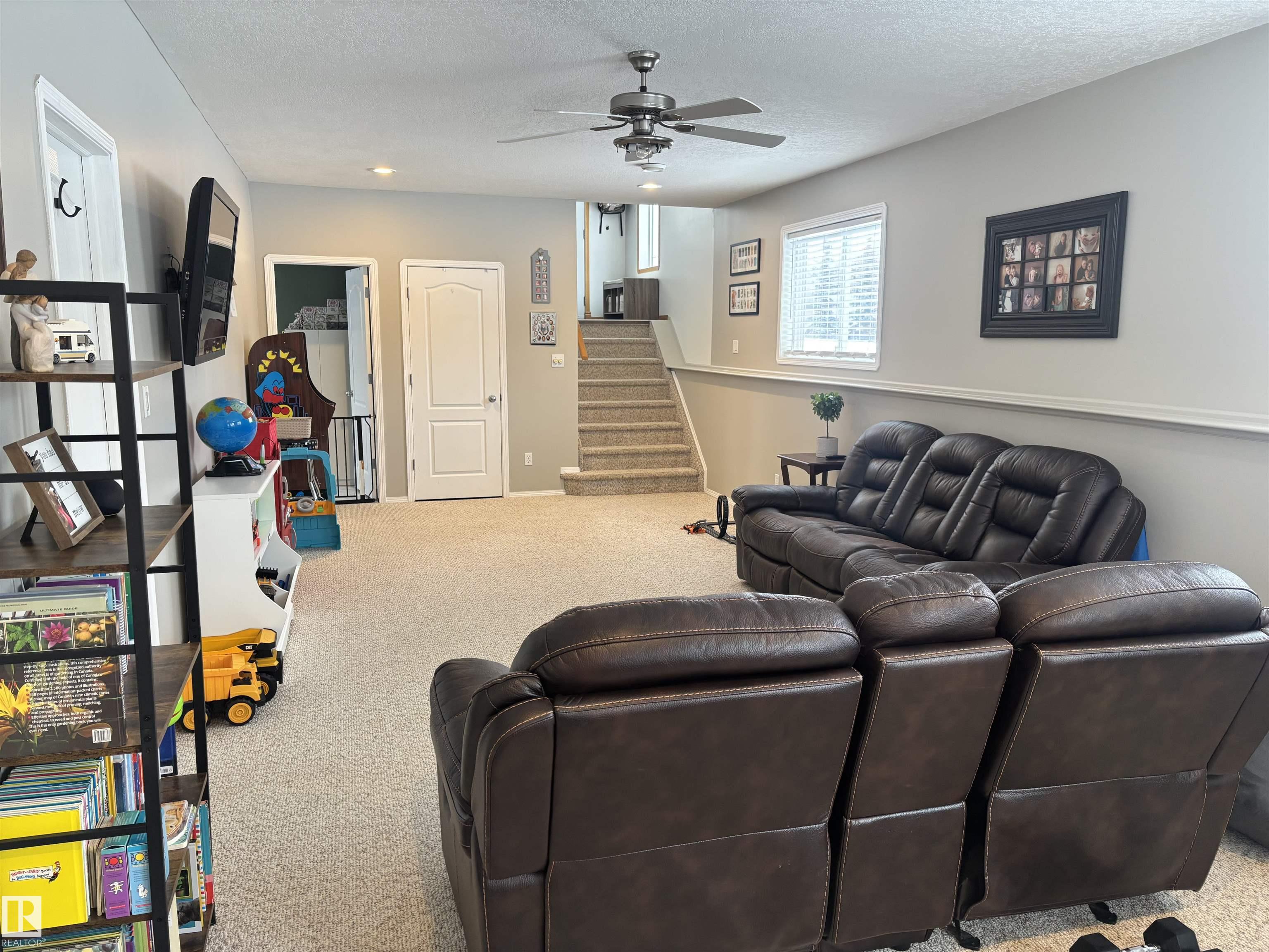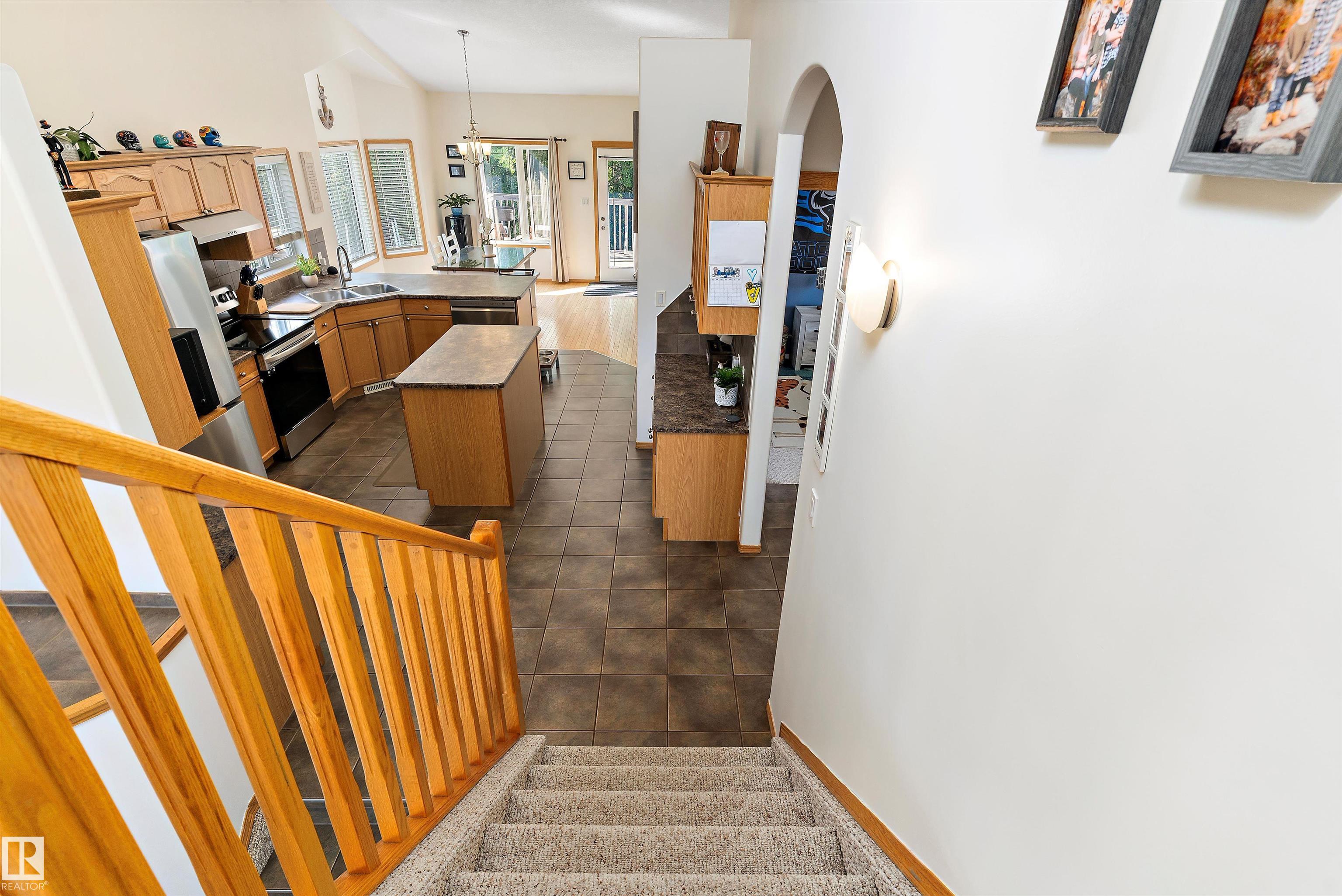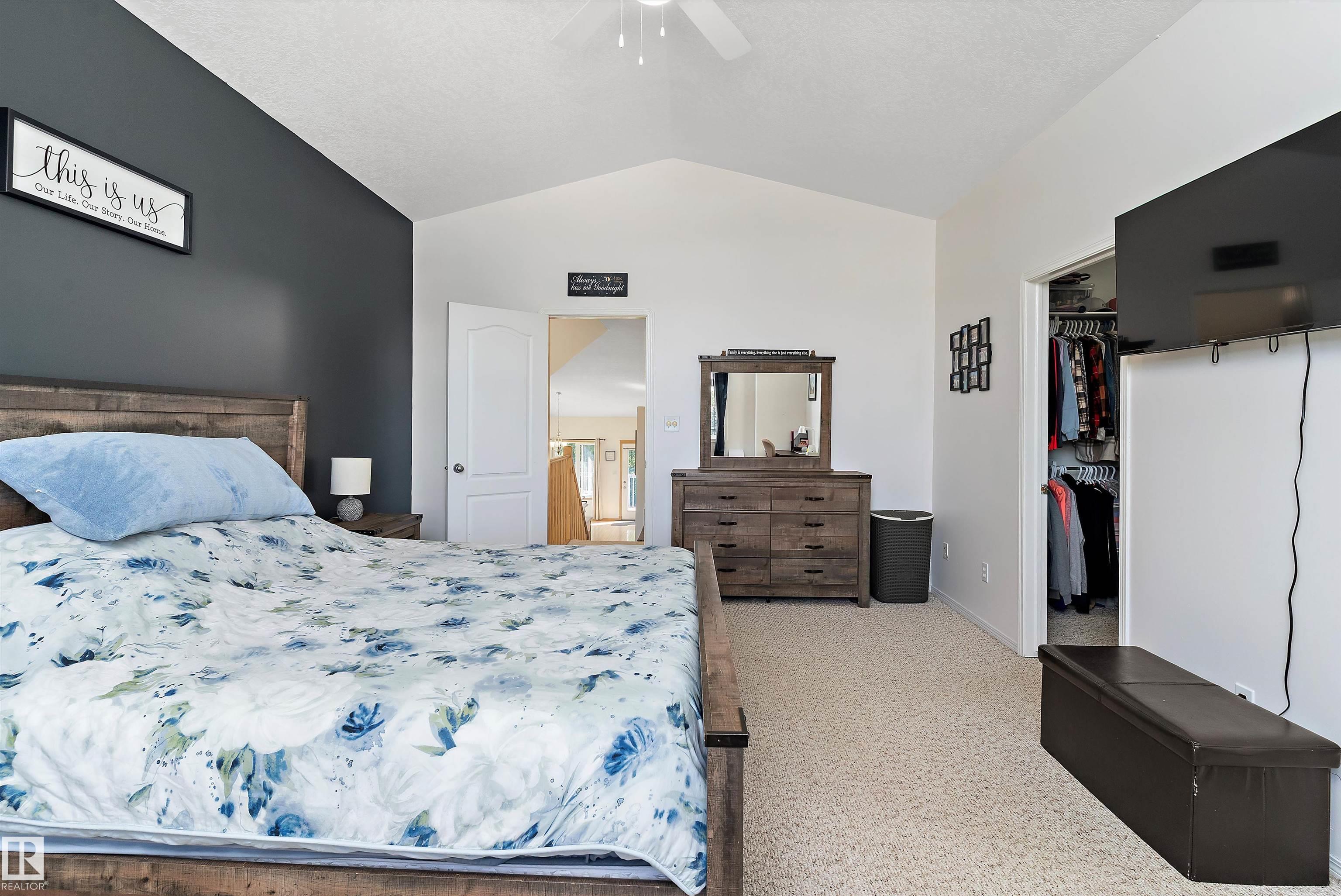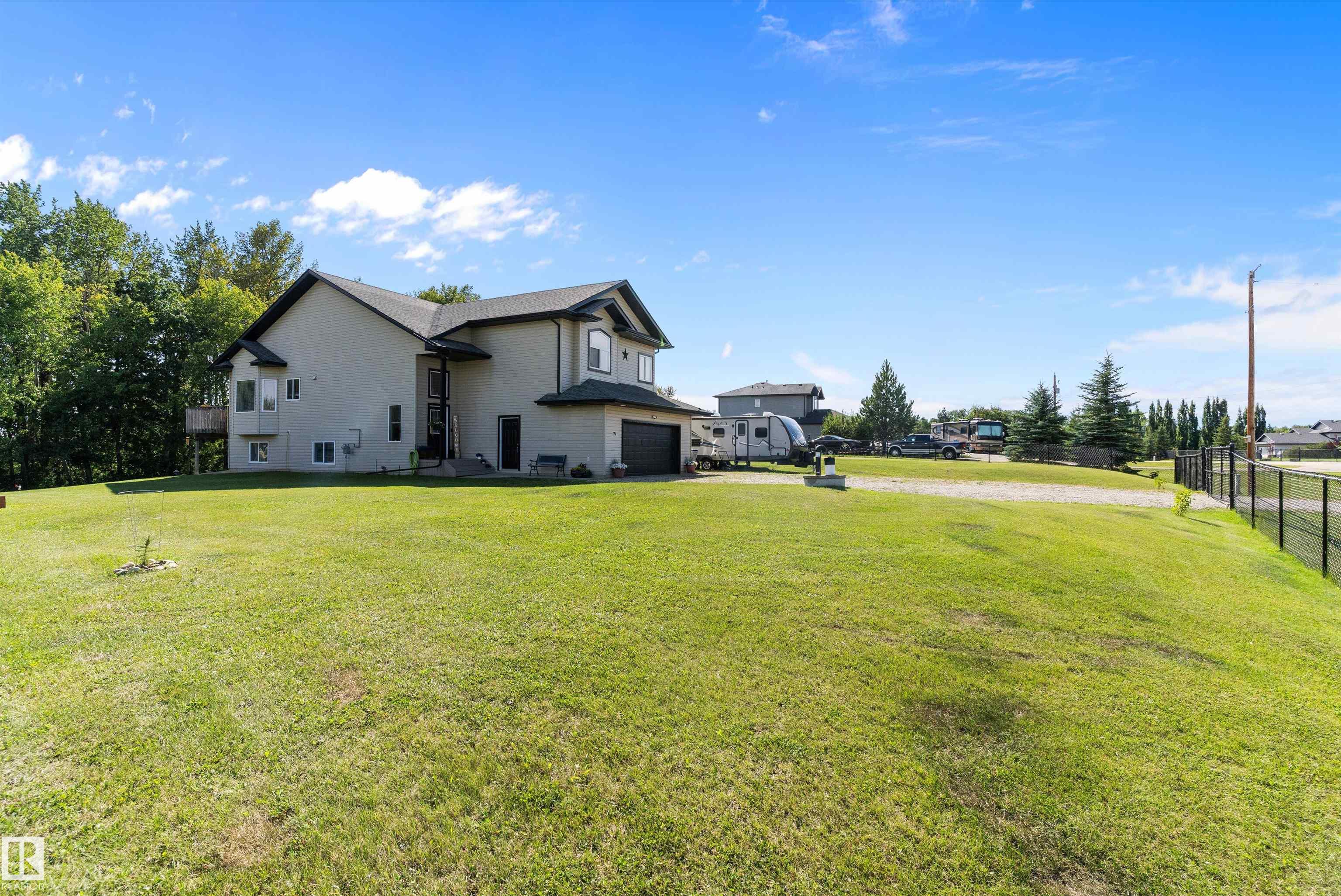 10/10 fenced acreage! Here is your chance to move into Willow Peak Park in the village of Spring Lake. This walk out Bi-level offers 3 bedrooms and 2 bathrooms. Main floor offers open concept with abundance of light. Beautiful oak kitchen with lots of storage, island, peninsula and walk in pantry and new appliances. Cozy living room with gas fireplace and vaulted ceiling. The main floor offers 2 bedrooms and a 4 piece bathroom. Just a few steps up will lead you to the large primary bedroom with a huge walk in closet and 4 piece bath with corner tub. The basement has large family room and laundry room. Additional basement space for a bedroom and bathroom. Two tiered deck allows for great entertaining in this private yard. Lots to explore on this beautiful property,walk down to the trees for a separate secluded fire pit area.Double attached garage with ample parking for vehicles and RV'S. Upgrades include new hot water tank (2023) Garage door(2024) and fence(2024) close to Blueberry school and Stony Plain