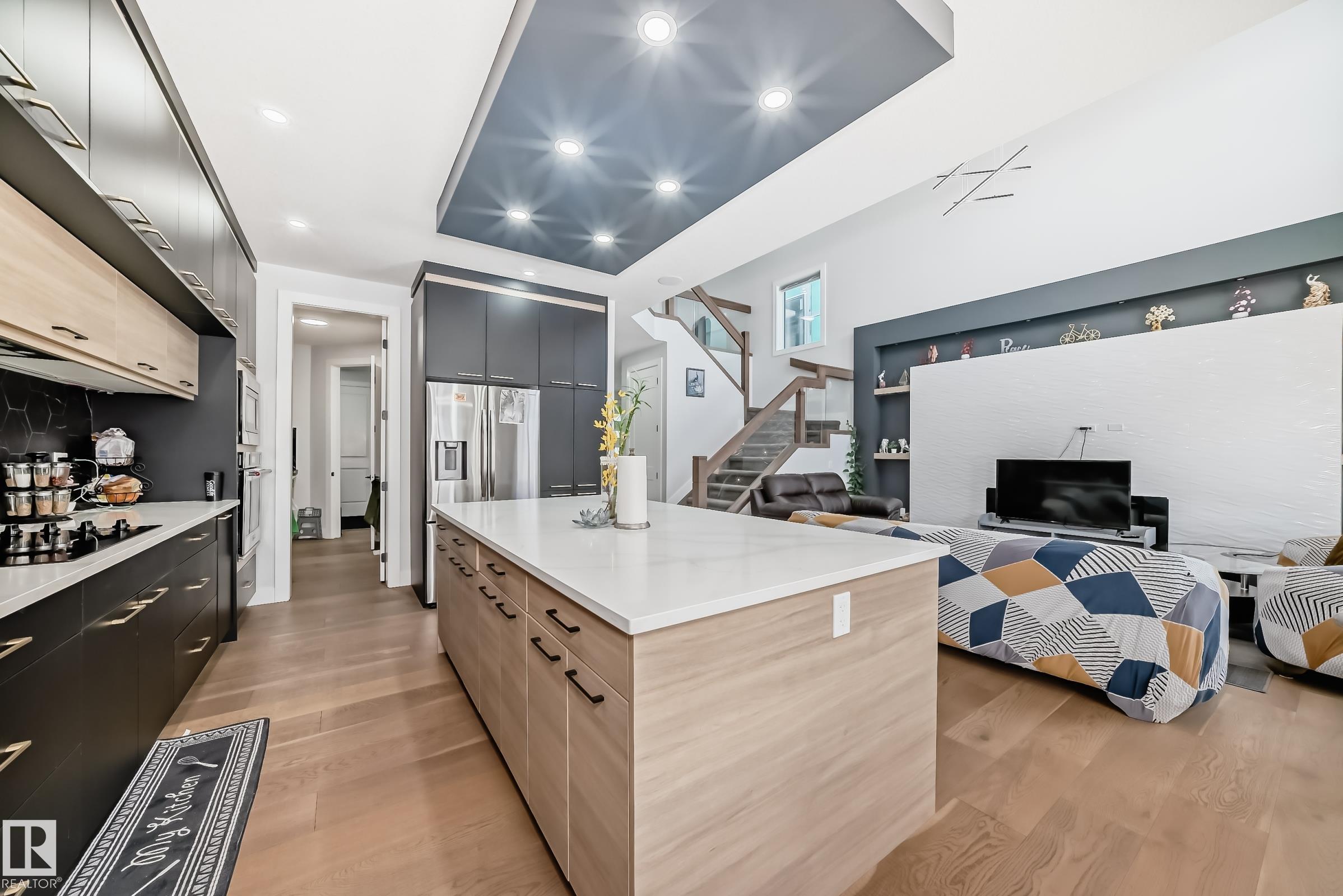 Welcome to Schonsee, one of North Edmonton’s fastest-growing communities. This stunning custom-built two-storey home on regular lot offers 4 bedrooms and 4 full bathrooms with exceptional craftsmanship throughout. The main floor features elegant 24” x 24” ceramic tile, 8ft doors on both floors, a spacious den or bedroom, and a full 4-piece bath. The open-to-above family room is highlighted by a custom stone-surround fireplace, creating a bright and inviting space. The chef’s kitchen boasts a large island and is complemented by a private butler’s kitchen. Custom railings and in-stair lighting lead to the upper level with plush carpet, a generous bonus room, and a luxurious owner’s suite featuring a spa-inspired 5-piece ensuite with soaker tub, glass shower, dual sinks, and a large walk-in closet. Two additional primary-style bedrooms each offer private 4-piece ensuites and walk-in closets. An upstairs laundry with sink adds convenience. The basement has a separate entrance and awaits your finishing touch.