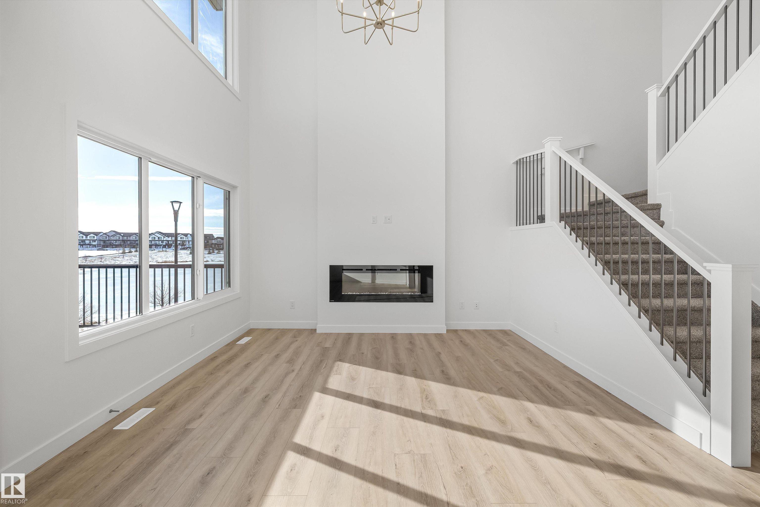 Built by Sterling Homes, this stunning front-attached home in The Uplands at Riverview brings a rare blend of elegance, space, and exceptional design. From the moment you step inside, soaring triple pane windows and 9’ ceilings set a bright, uplifting tone. A welcoming front sitting room leads to a main-floor bedroom and full bath—ideal for guests or flexible living. The kitchen is beautifully finished with quartz countertops, a large island, ceiling-height cabinetry with crown moulding, a chimney hood fan, built-in microwave, and a walk-through pantry connecting to the mudroom for effortless convenience. The great room is truly impressive with a 17-ft ceiling and an electric fireplace, creating a dramatic yet inviting gathering space overlooking the backyard. Upstairs, this home offers the rare luxury of two private bedroom suites—each with a walk-in shower, double sinks, and thoughtfully designed storage. A bright bonus room, full bath, upper-floor laundry, and an additional bedroom complete the level.