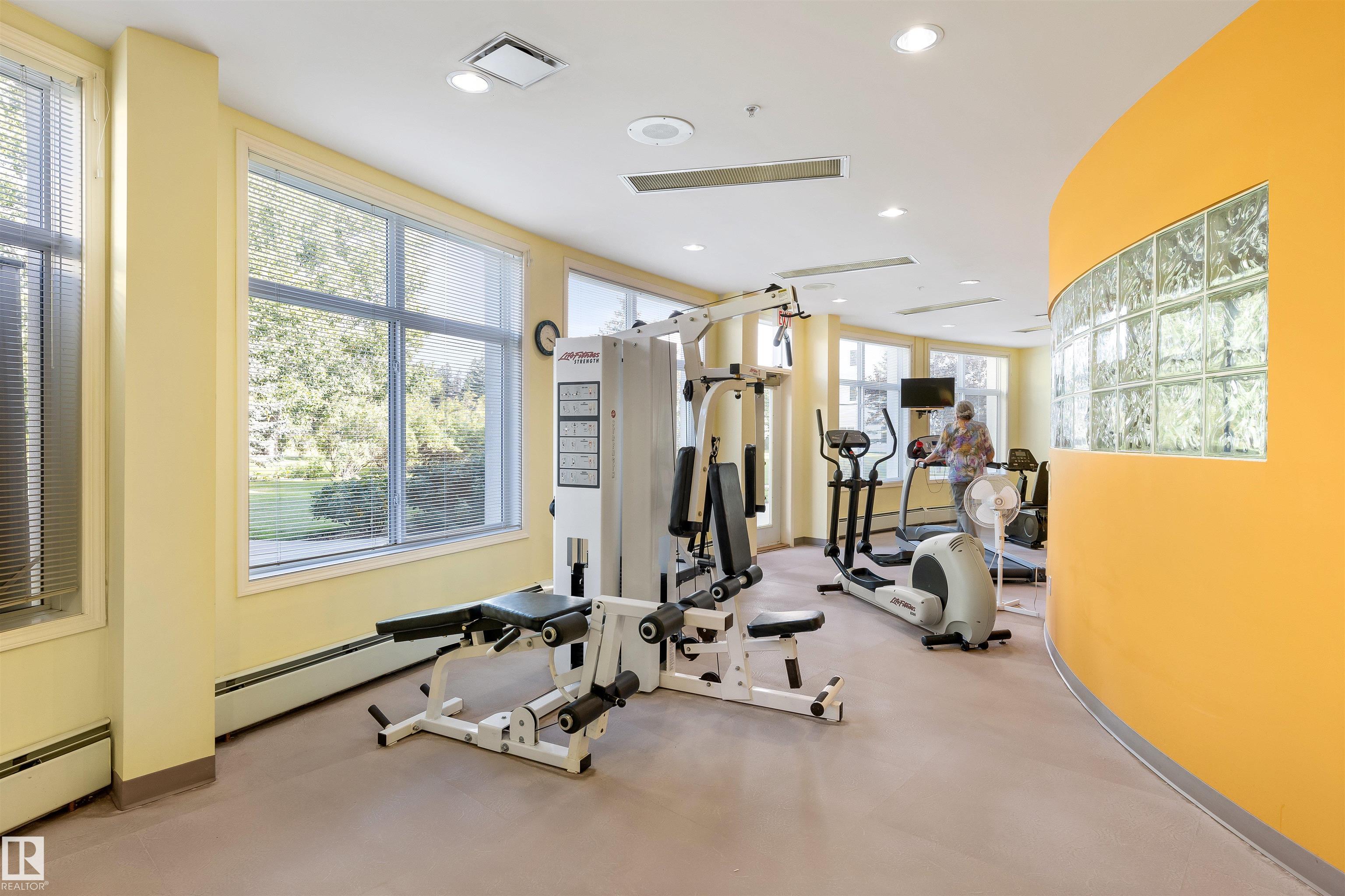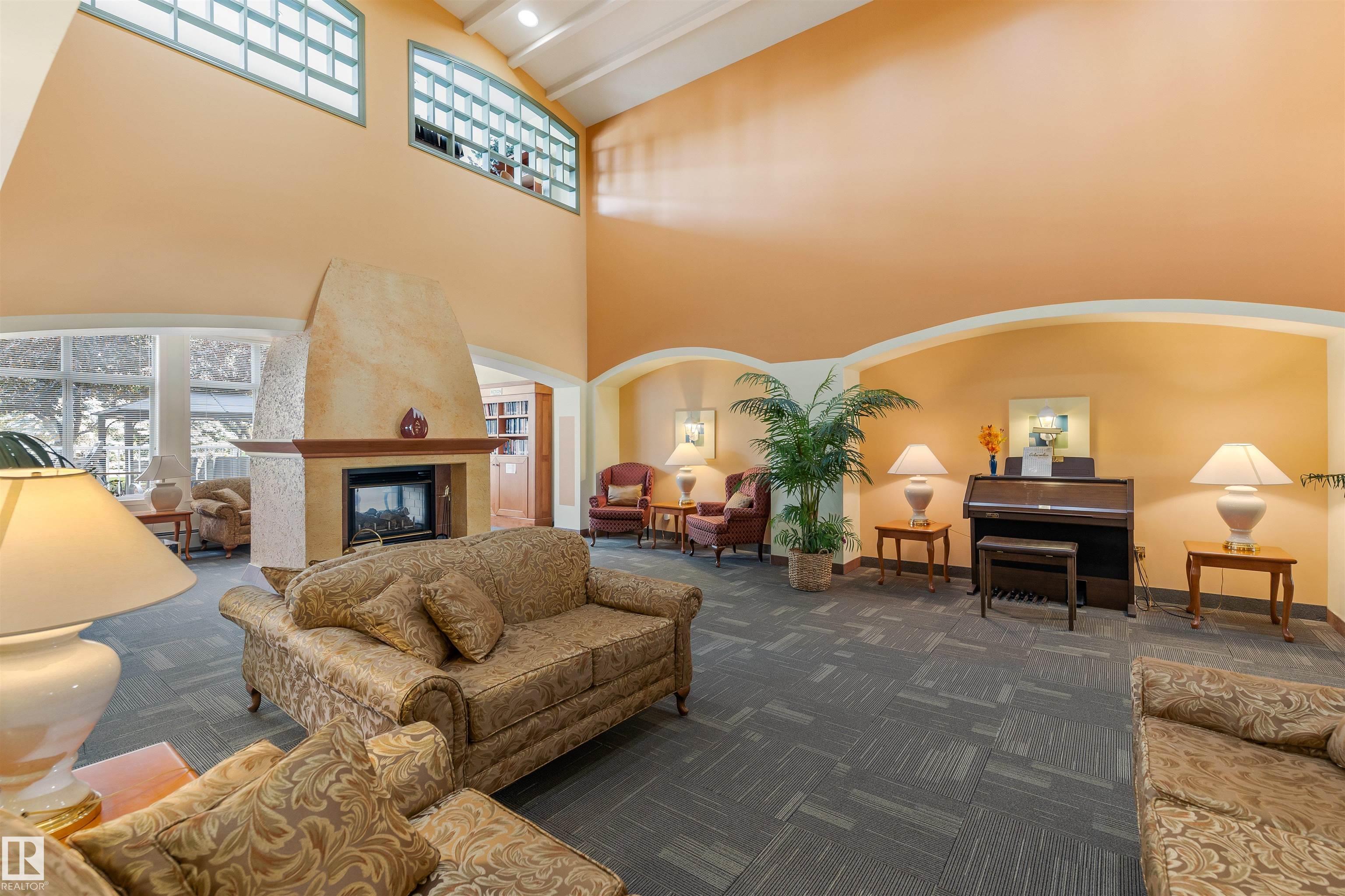 Discover this beautiful TOP FLOOR suite in the amazing development of Mission Hill Village. A 55+ complex w/ privacy, companionship & excellent services! This meticulously maintained, corner unit, offers a spacious kitchen w/ white cabinets & s/s appliances. Newer vinyl flooring spreads throughout the unit & there is also fresh neutral paint. Move in ready w/ quick possession available.There is a small dining area between the kitchen & the living room. The living room has sliding doors onto a large patio that is half covered. There is an A/C unit in the living room for added summer comfort- this unit also has a heating feature to help keep the area extra toasty while watching TV. The bedroom that can easily accomm. a king size bed suite & a huge closet/IN SUITE LAUNDRY. The 4pce bath has a bidet style toilet. Enjoy gorgeous views overlooking St. Albert & a green space! This complex has lunch & dinner served 5 days a week, guest suite, library, social room, hair salon, craft room, theatre room & more!