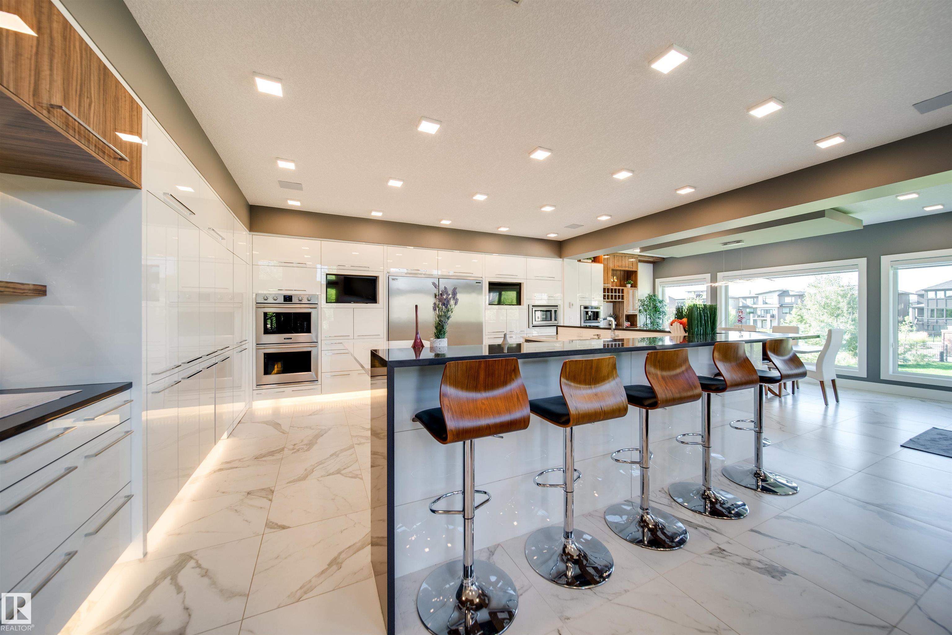 Award-winning show home by Vicky’s Homes (best build under $2m) ready for the buyer that has a budget for the best! TRIPLE CAR GARAGE with room for 6 via lifts, 4 beds total + main floor den/bed, 5 baths, fully finished & backing pond/greenspace with a large SW yard! This home is loaded and a must see, located in the community of Keswick which is nestled between parks, ponds, trails & the river. The expansive main floor brings in plenty of natural light with the 2 storey vault but adds warmth with the heated floor tiles. The massive kitchen is an entertainers dream featuring built in appliances, lots of cabinetry & a special U shaped island where everyone will gather. Steps away is a large deck with built in bbq & custom built automated pergola. Upstairs the 3 beds all have their own bath with the primary having a balcony, large closet and ensuite with steam shower & multiple vanities. The basement is finished with a wet bar, rec room & 4th bed - Automation/blinds/control4 throughout + und. sprinklers!