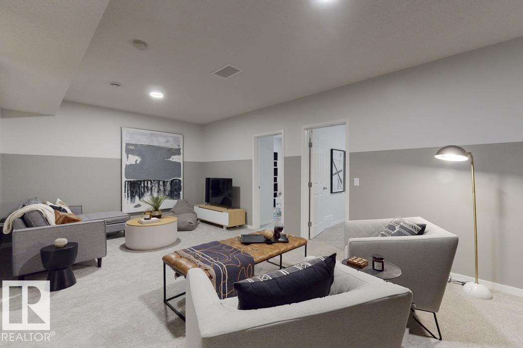 Own a former Sterling Homes SHOW HOME! This impressive 2,128 sq ft home in The Uplands at Riverview is loaded with upgrades and thoughtful design. The main floor features 9’ ceilings, luxury vinyl plank flooring, a versatile flex room, and a bright open-concept living space with large windows and sliding doors overlooking a playground. The kitchen offers quartz countertops, an island with seating, walk-through pantry, stainless chimney hood fan, and stylish cabinetry. Upstairs, the spacious primary suite includes a 5-piece ensuite with soaker tub, glass shower, and walk-in closet, plus three additional bedrooms, a bonus room, laundry, and full bath. The fully finished basement adds a large family room, two bedrooms, and a 3-piece bath. Extras include air conditioning, built-in speakers, window coverings, a landscaped yard with deck, side entrance, and an oversized double garage with extra width and length, hot and cold taps, and floor drain.