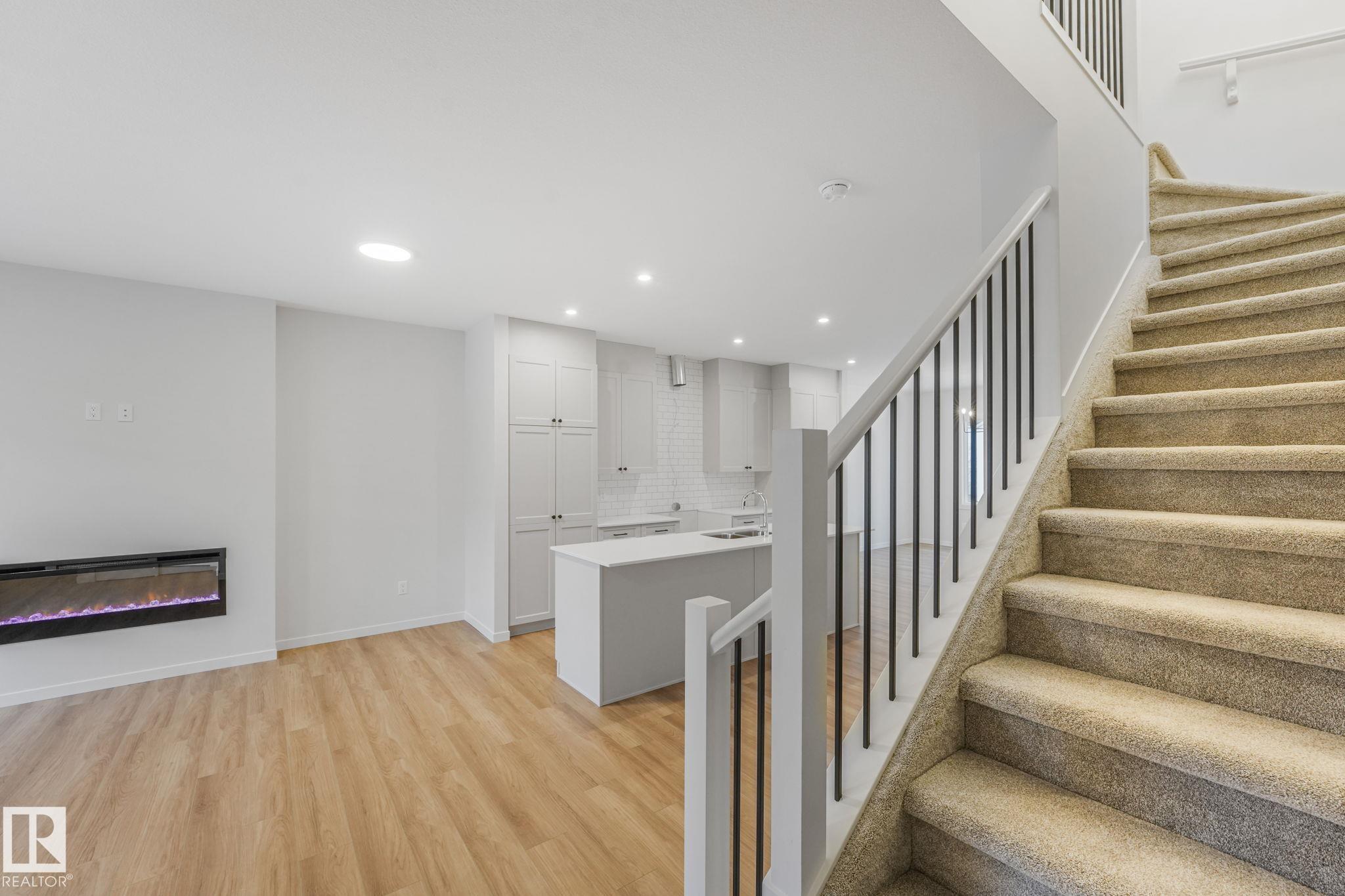 Offering 1,671 sq. ft. of thoughtfully designed living space, this home features 9-foot ceilings and a bright open-concept main floor. The modern kitchen showcases quartz countertops, a tiled backsplash, and a spacious island overlooking the living and dining areas, complete with an electric fireplace—perfect for everyday living and entertaining. Upstairs, you’ll find a spacious primary suite with a walk-in closet and private ensuite, along with two additional bedrooms, a full bathroom, a versatile loft space, and convenient upper-floor laundry. The basement includes a separate side entrance and offers excellent future development potential.