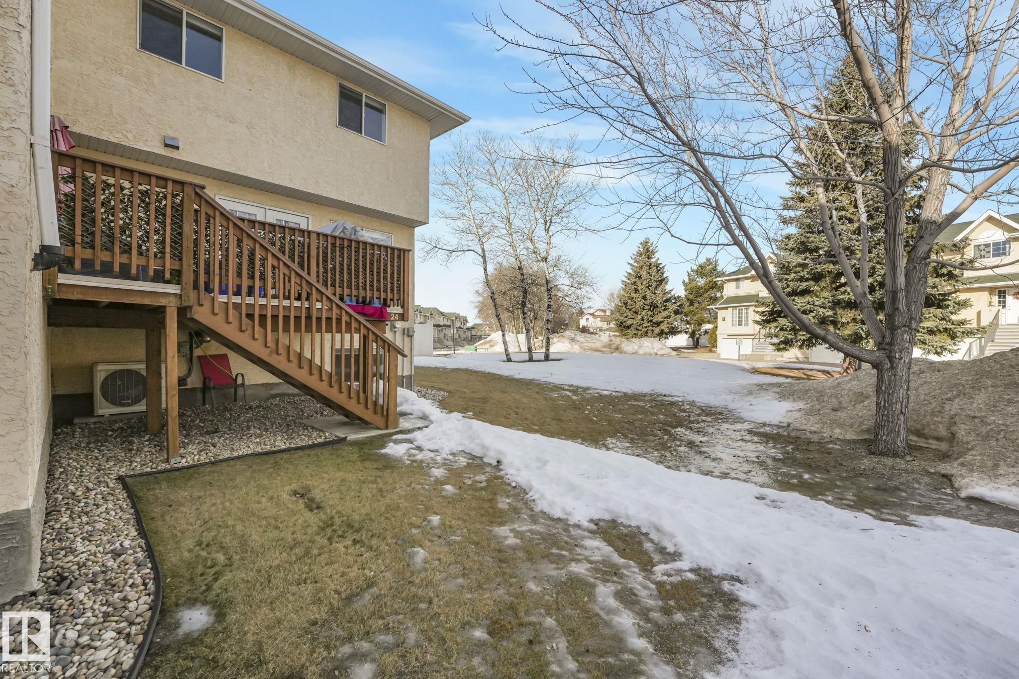 Renovated & unique 2 storey end-unit condo w dbl attached garage, central AC & lots of sunny windows. Offering 3 finished levels in a quiet cul-de-sac style, pet-friendly, adults only complex just steps to the river valley ravine & park system. The bright main floor offers a generous living room w corner FP, lg kit/DR area at the back of the home updated in 2022 featuring granite counters, gas stove, graphite finish blk SS appliances, subway tile & undermount lighting. Glass doors lead to a generous deck overlooking shared green space. Upstairs showcases a primary suite retreat w spa-like ensuite & lg closet, plus 2 additional beds, a beautifully renovated full bath w luxe shower & quartz counters (2022) & separate laundry/storage room. The finished basement adds a cozy rec room w 2nd FP, large bright window, 2 pc bath, storage & garage access. Other 2022 updates: flooring, baseboards, interior & closet doors, light fixtures, blinds,central vac, roll-away screen doors, washer/dryer + on demand HWT (2023)