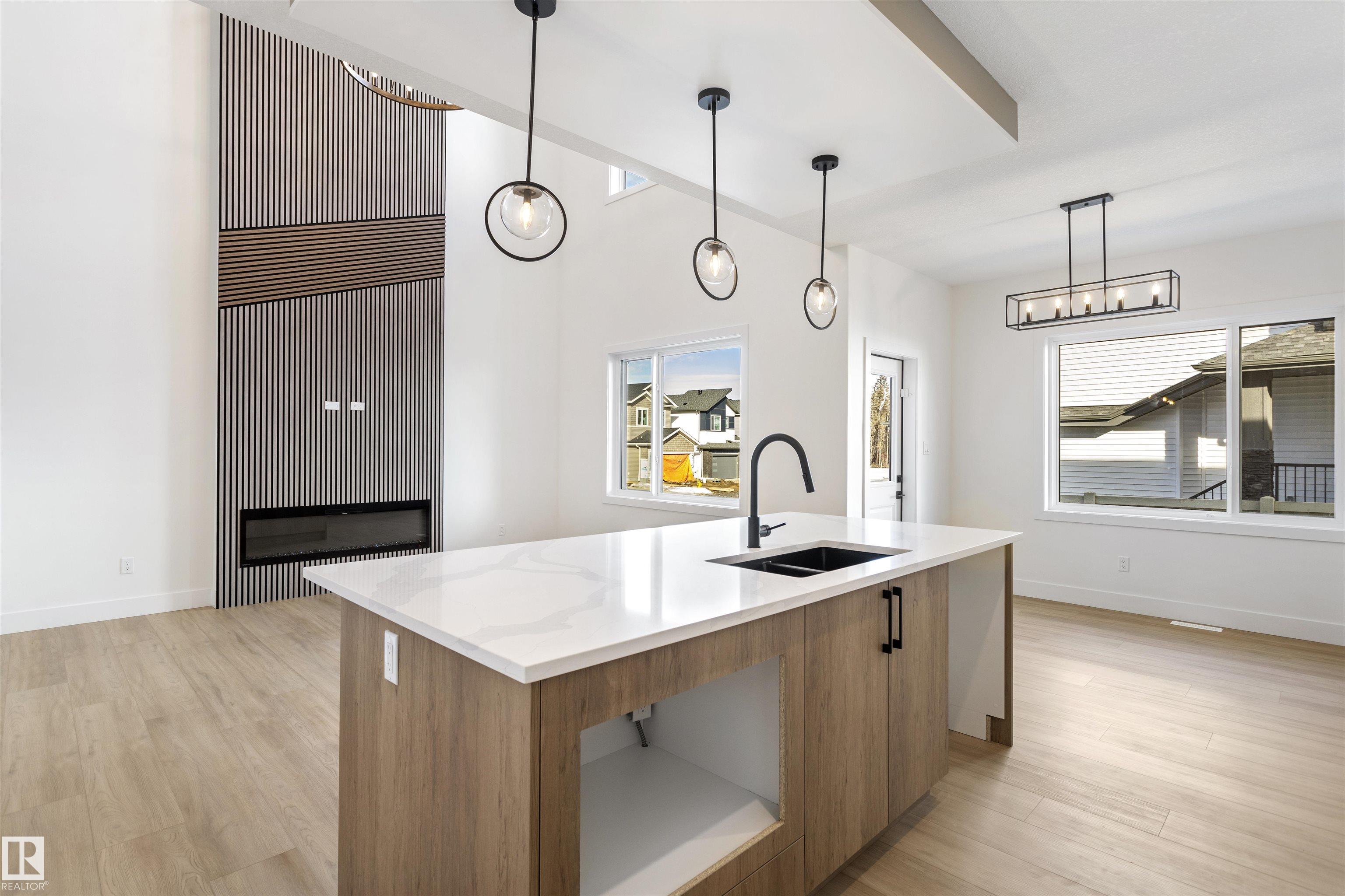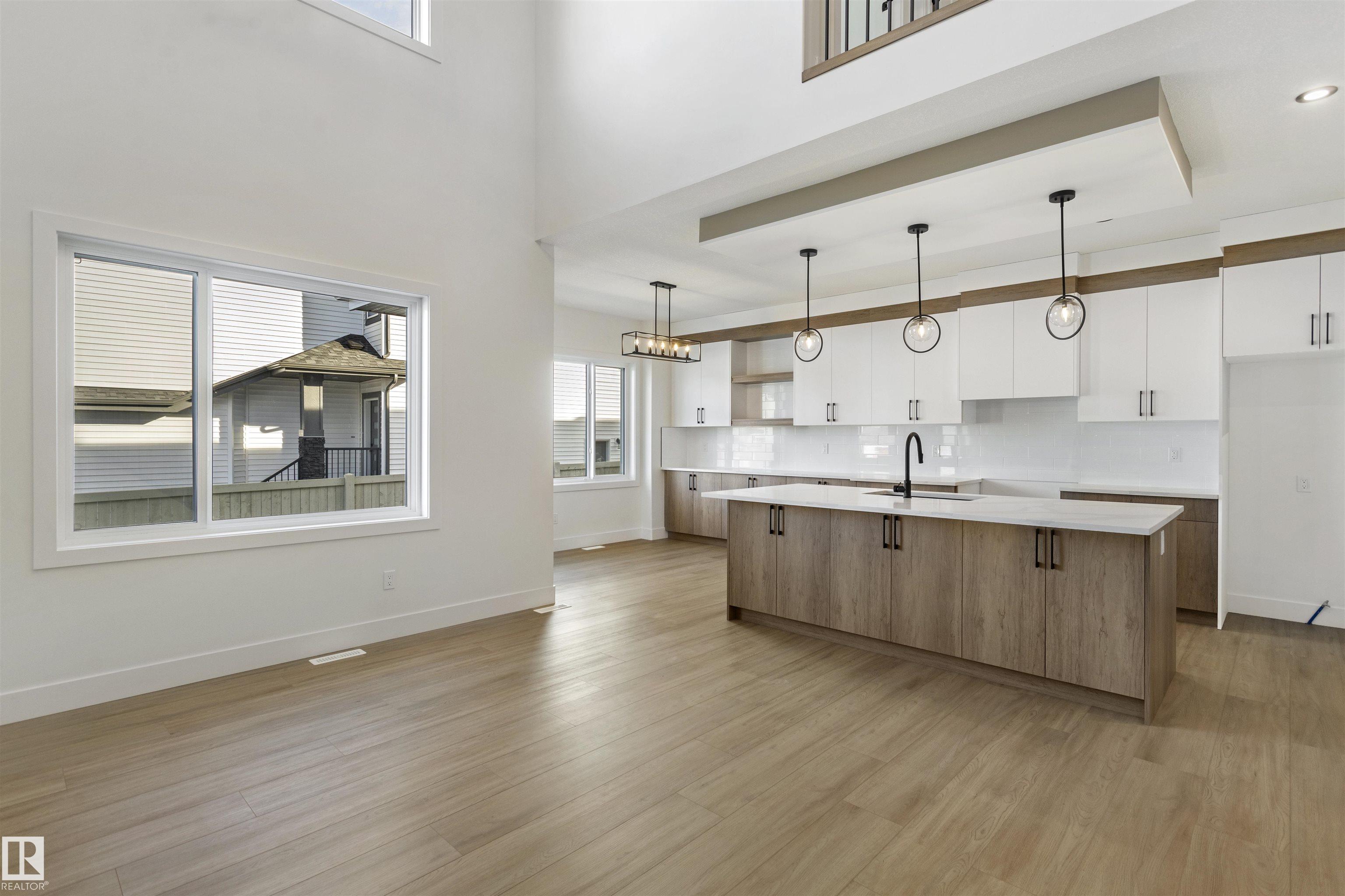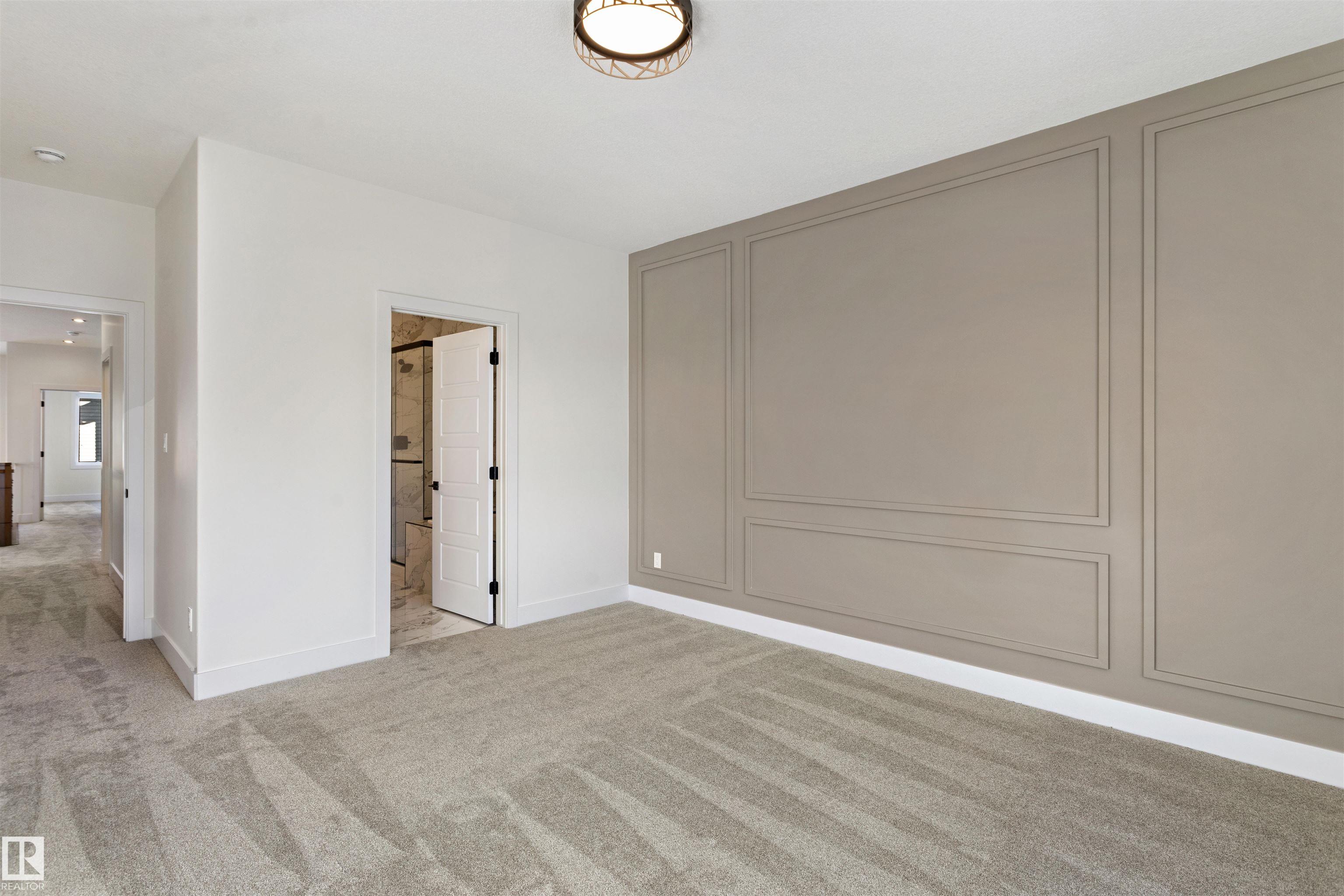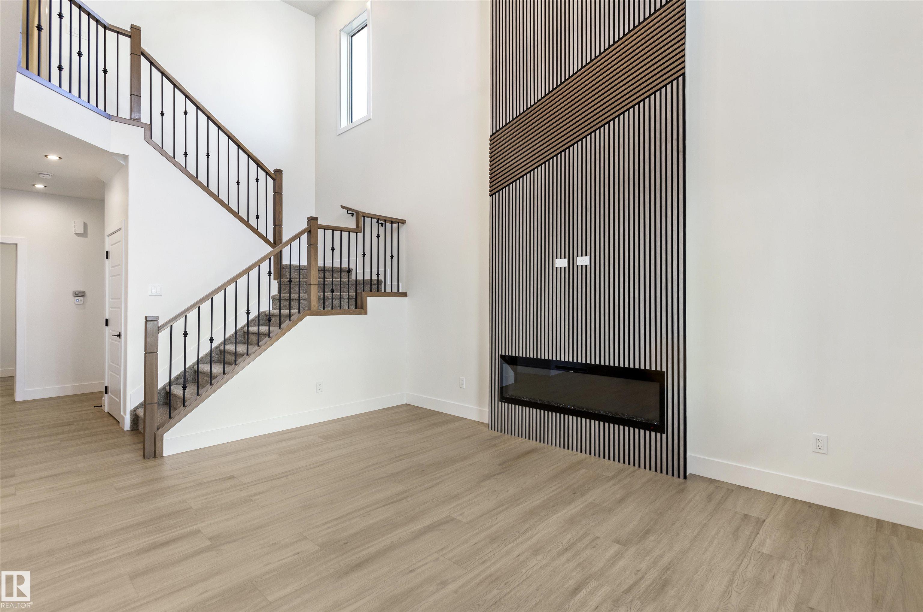 Welcome to this brand new home in the desirable McLaughlin community of Spruce Grove, perfectly situated on a prime corner lot near scenic walking trails and beautiful green spaces. Thoughtfully designed for modern family living, this home offers 4 bedrooms and 3 full bathrooms, including a convenient main-floor bedroom with a full bath featuring a standing shower—ideal for guests or multi-generational living. The open-to-below living room with a fireplace creates a bright and impressive focal point, while the upper level features three spacious bedrooms, a versatile bonus room, and the convenience of upstairs laundry. The extended kitchen with a walk-in pantry provides ample space for cooking and entertaining, and the double attached garage plus side entrance to the basement offer excellent functionality and future development potential. This stunning property combines style, space, and an unbeatable location.