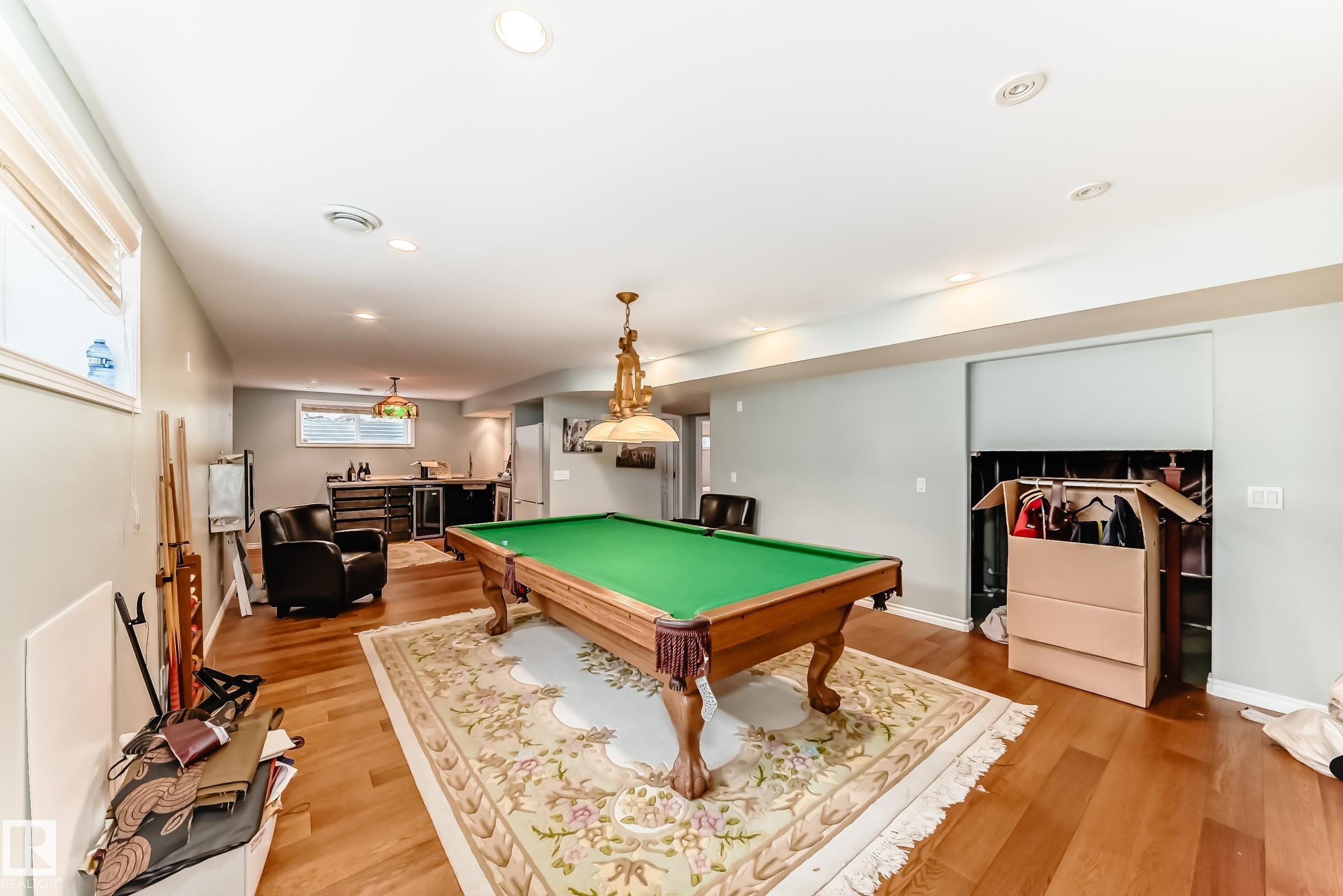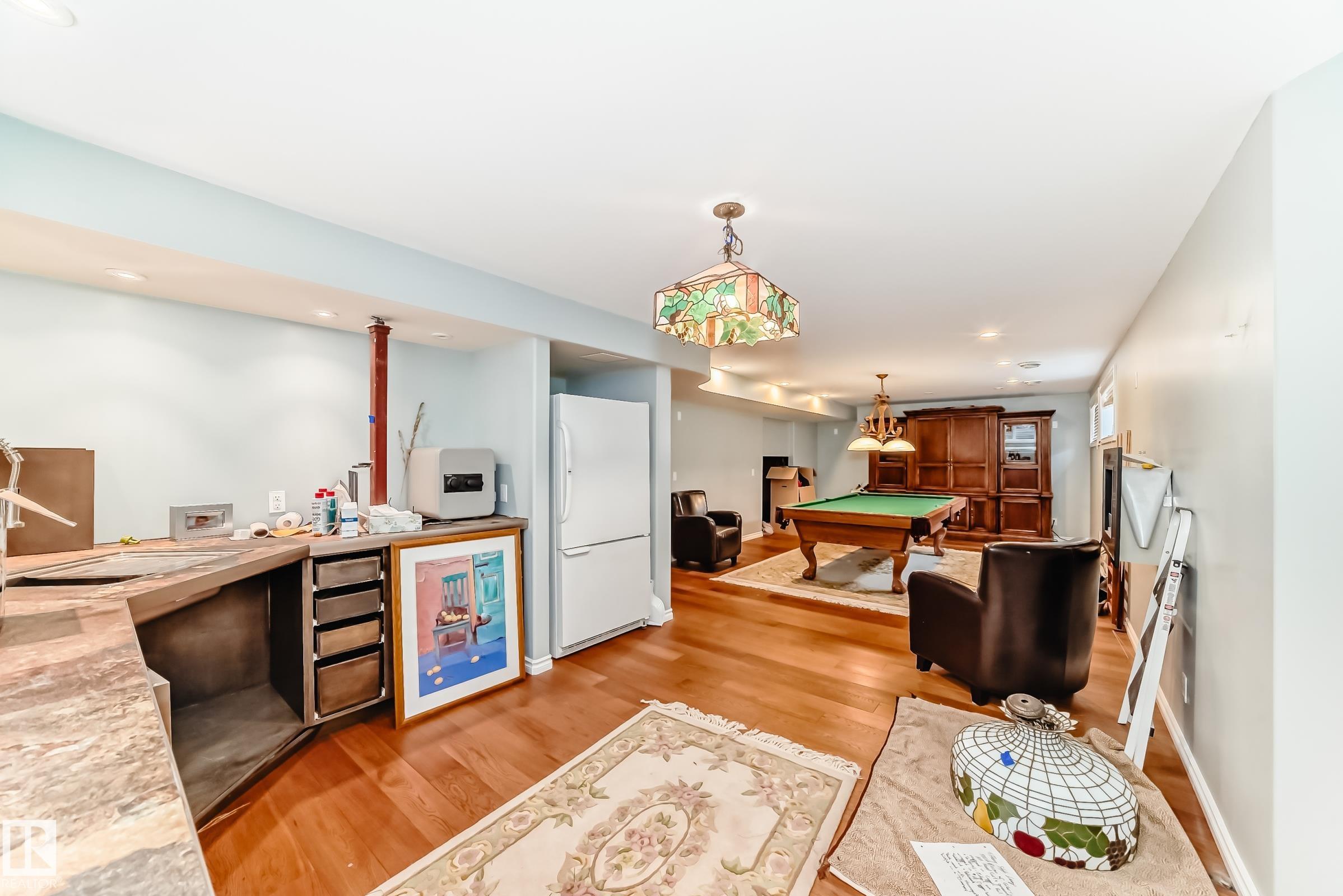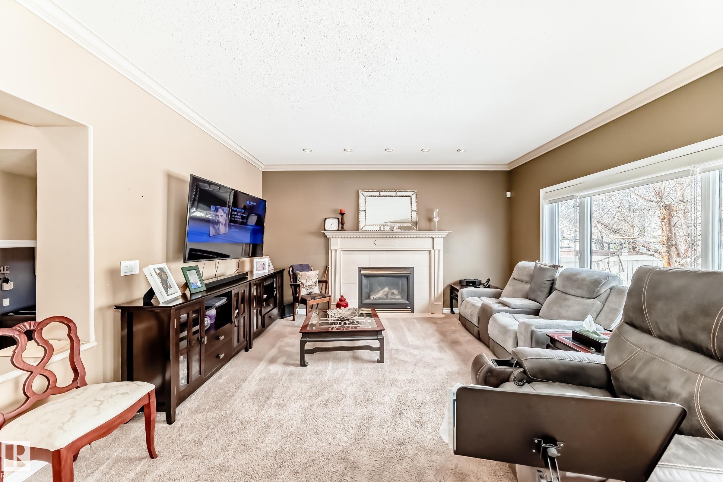 Meticulously maintained & located in a highly sought-after neighbourhood, this exceptional home offers quality craftsmanship & thoughtful upgrades throughout. Inside the custom maple kitchen features quartz countertops, a 10-ft eat-up island w/solid brass foot rail, ceiling-height cabinetry, corner pantry & SS appliances, central vac & a kick plate! Open concept living area features a cozy gas fireplace, plus a front office and formal dining room w/ crown molding throughout. Vaulted ceilings & reflective tint help keep the upper level cool, where you’ll find three bedrooms, bonus area, a 4-pc bath, and a spacious primary suite with walk-in closet and corner jetted tub. The fully finished, soundproof basement boasts heated bathroom floors, engineered hardwood, a bedroom, rec area, pool table space, wet bar & luxury shower. Enjoy the private yard and large Duradek deck with gas outlets & pilings for a future hot tub! HEATED & INSULATED garage complete the package.